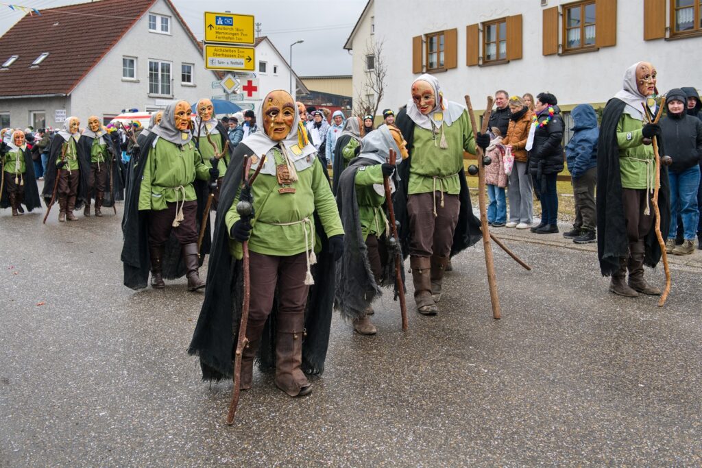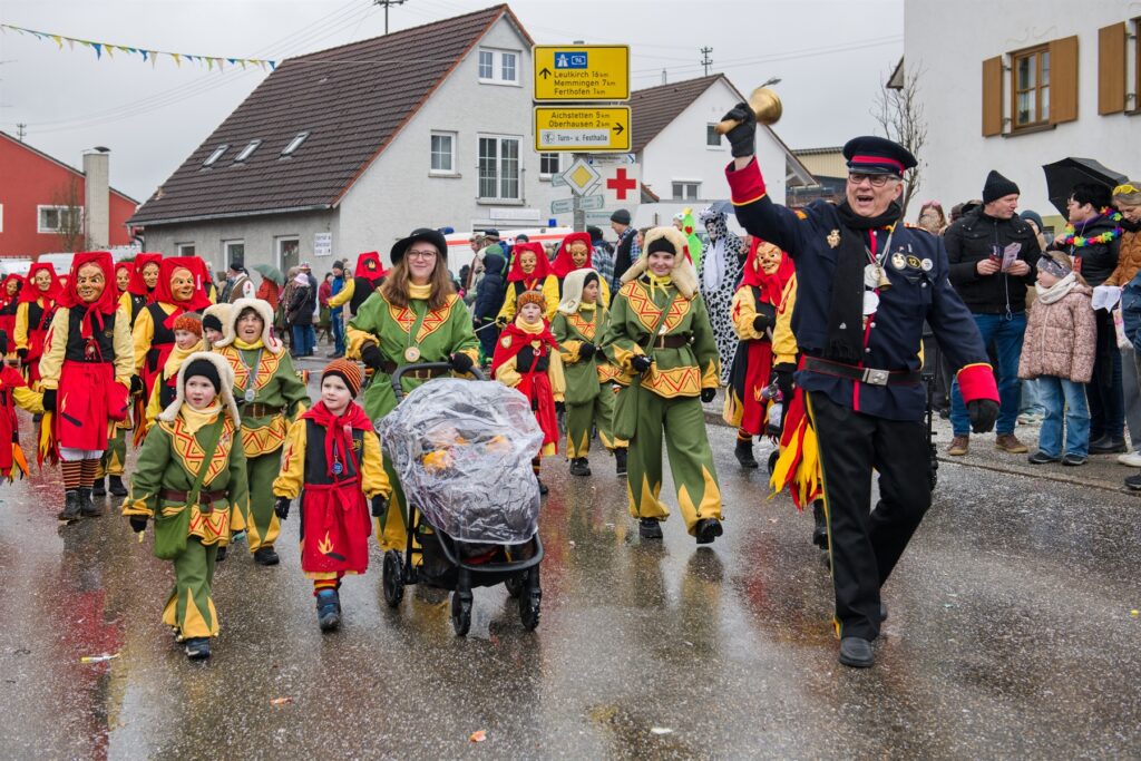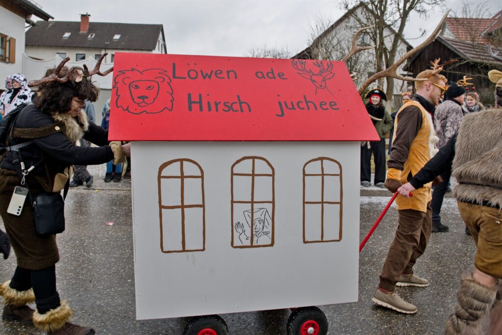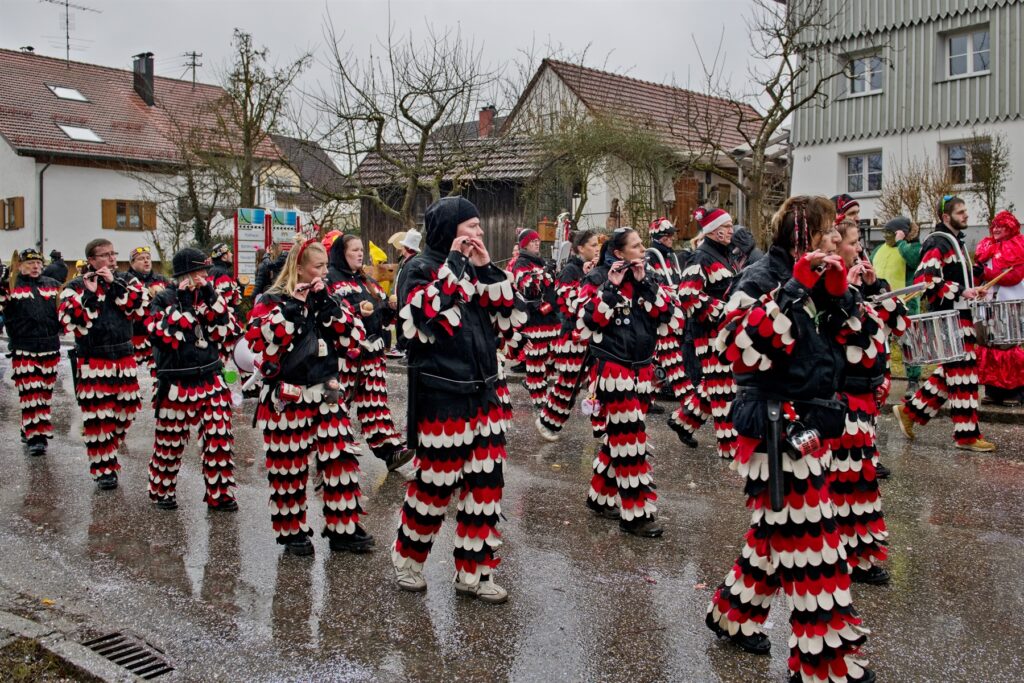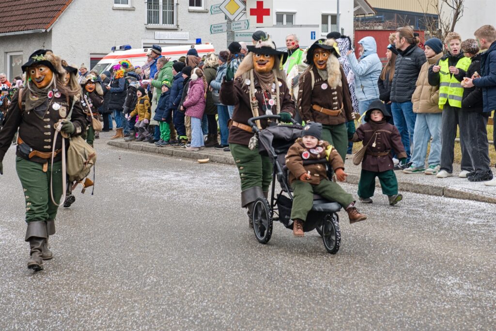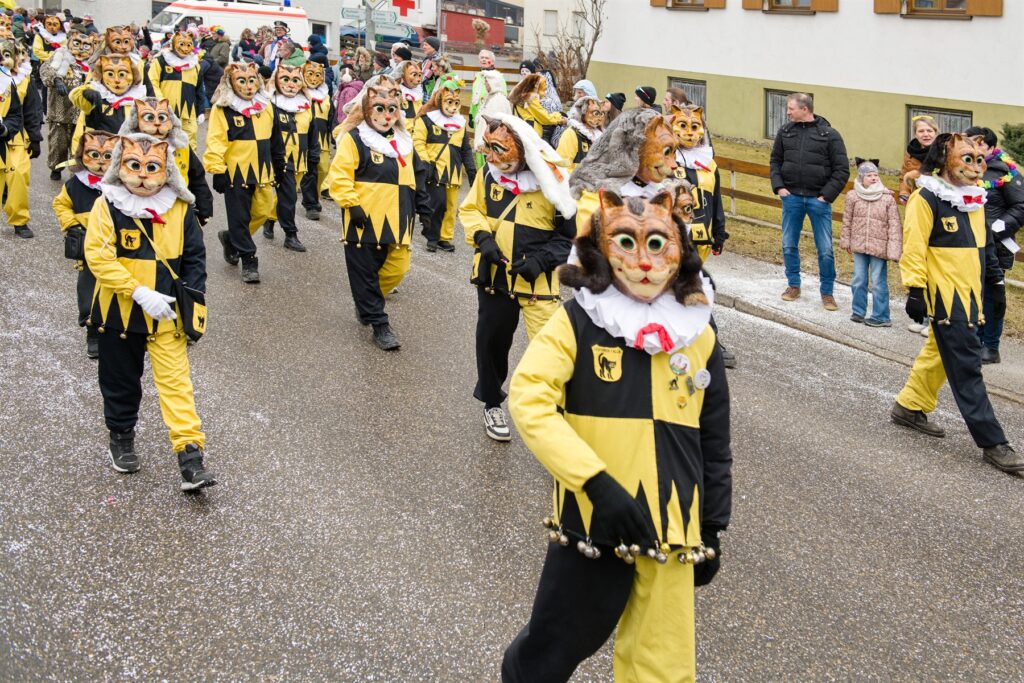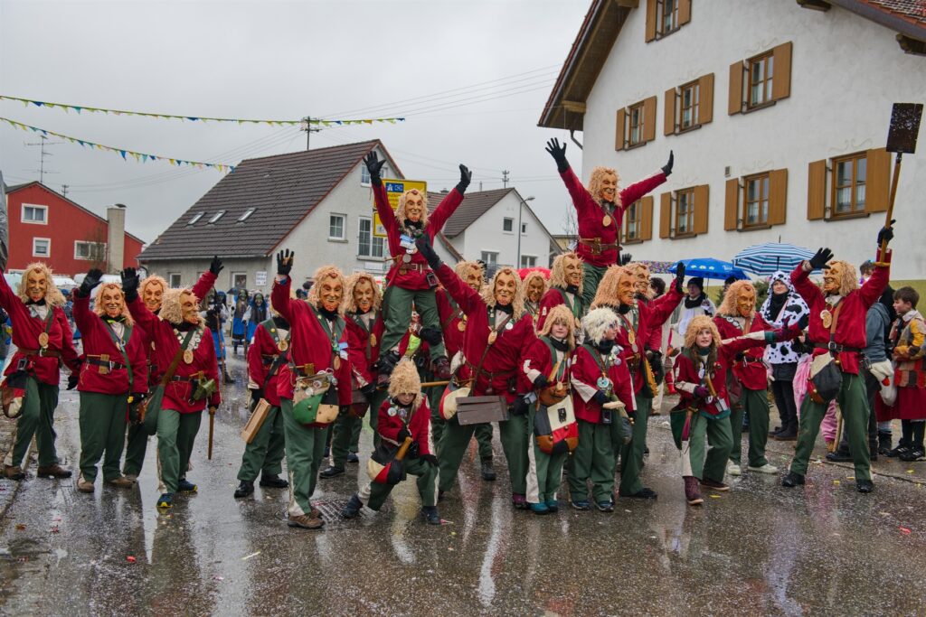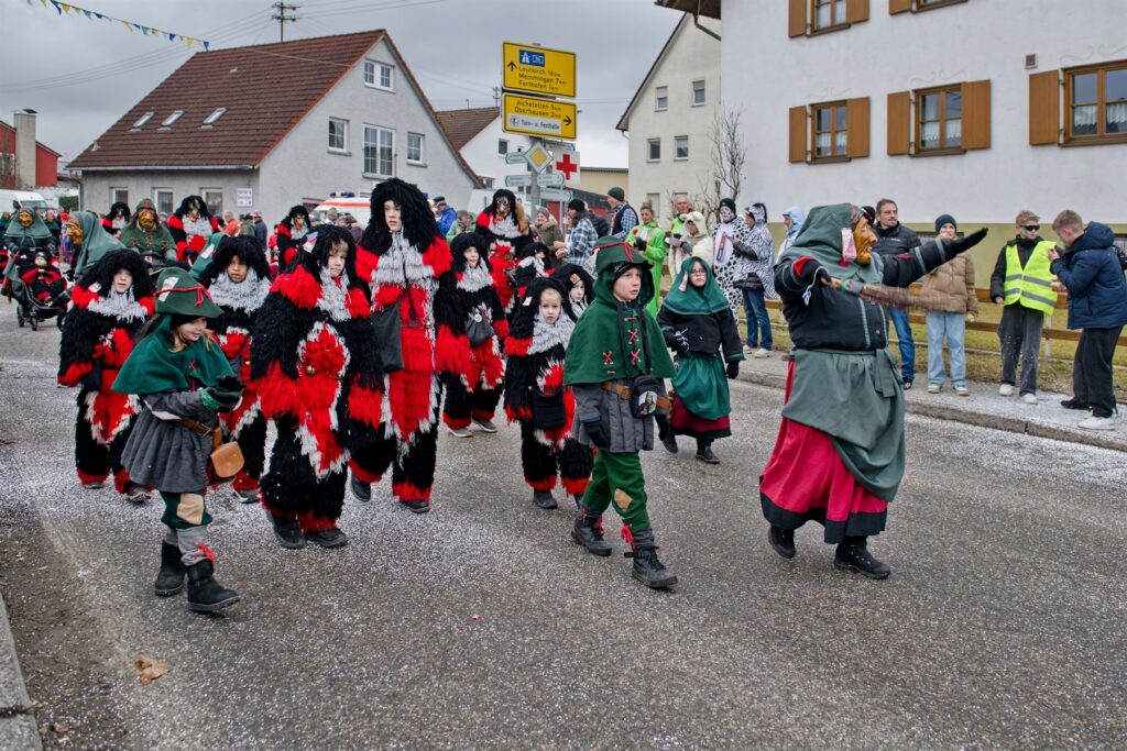 Aitrach – Getreu dem diesjährigen Motto der Aitracher Fasnet „Auf dem Bauernhof“ präsentierten sich am Samstag viele Fußgruppen der heimischen Narrenzunft beim traditionellen Narrensprung in der Illertalgemeinde. Mehr als 3000 Mitwirkende in 75 Gruppen sorgten für Hochstimmung beim zweistündigen Umzug. Hästräger von 35 Narrenzünften der alemannischen Fasnet, dem bayerischen Fasching, Prinzenpaare und Gardemädchen, Lumpenkapellen, Fanfarenzüge, Schalmeien und Blaskapellen begeisterten die zahlreichen Besucher.