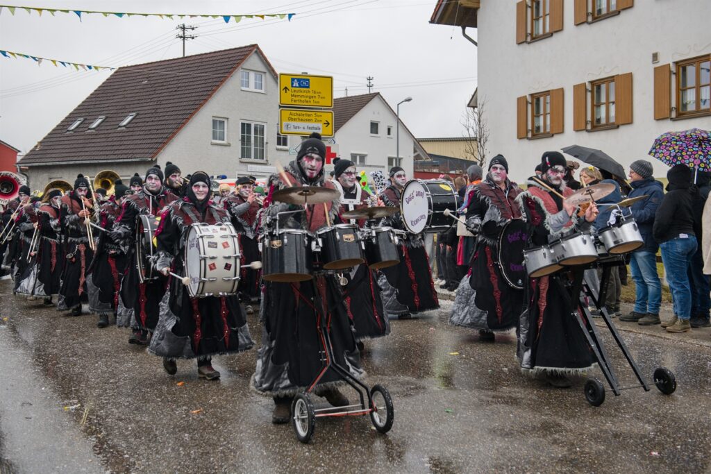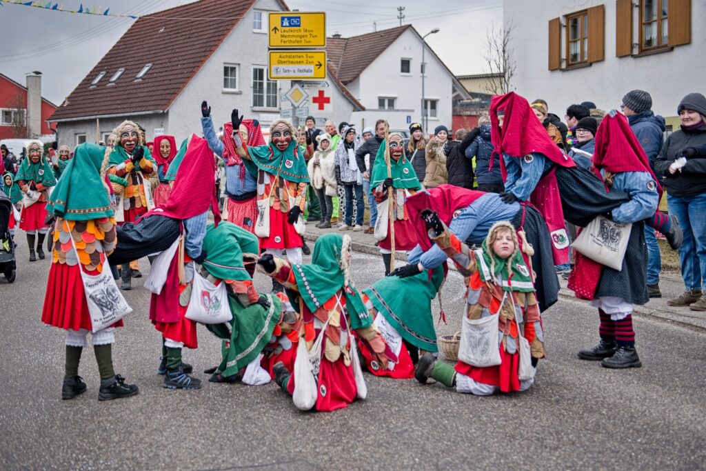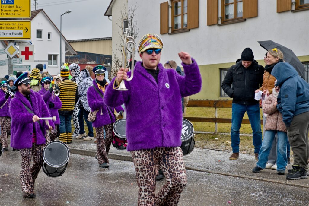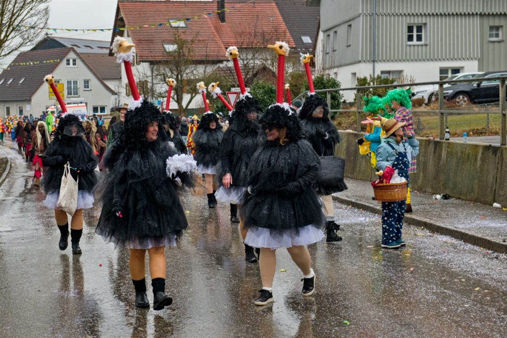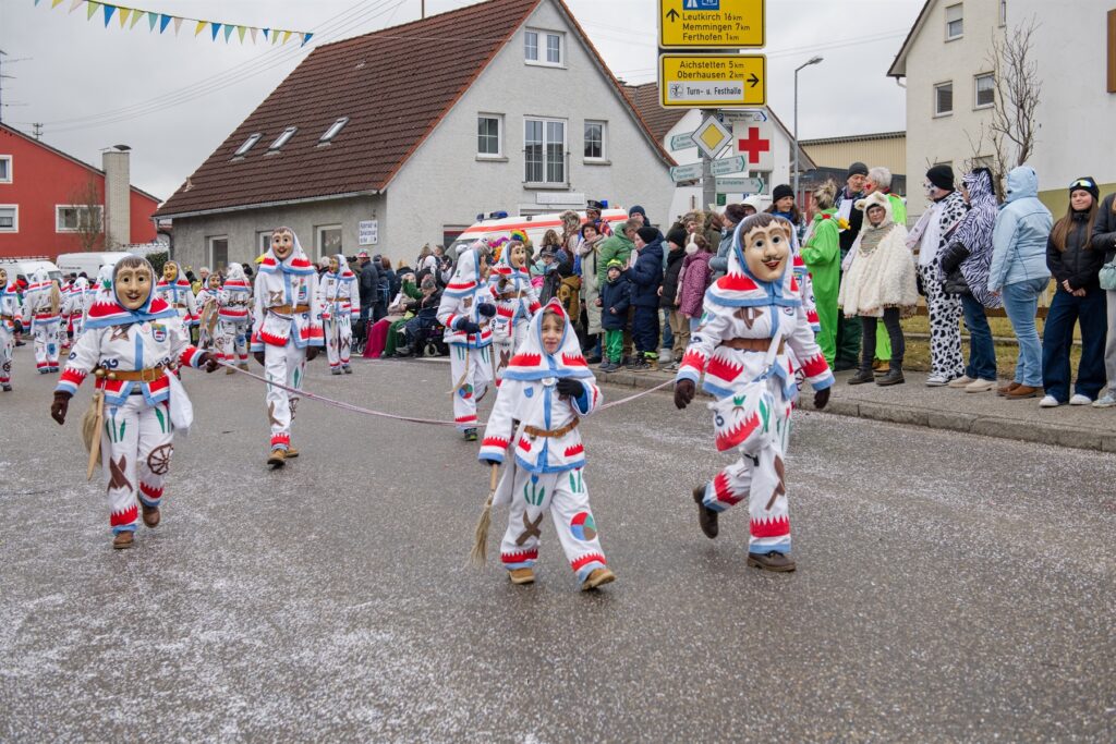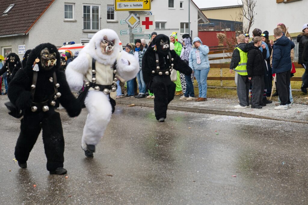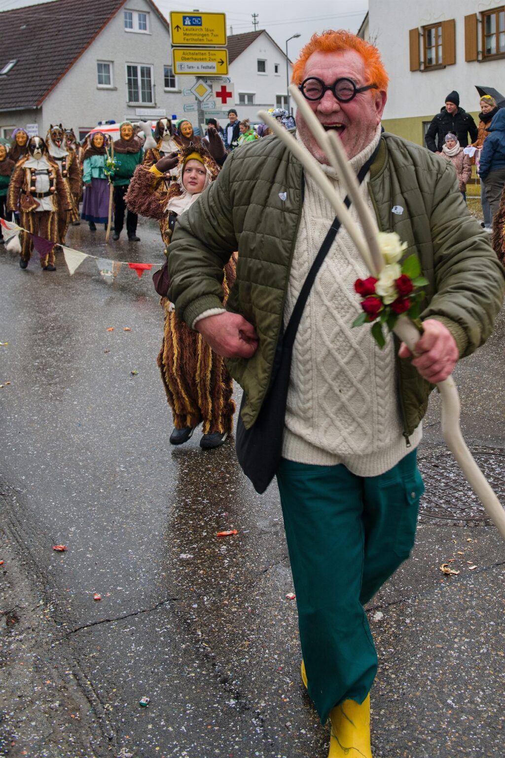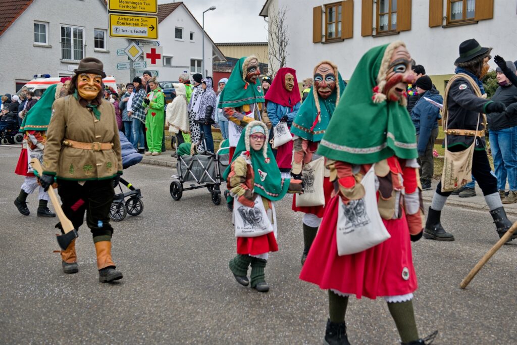 Aitrach – Getreu dem diesjährigen Motto der Aitracher Fasnet „Auf dem Bauernhof“ präsentierten sich am Samstag viele Fußgruppen der heimischen Narrenzunft beim traditionellen Narrensprung in der Illertalgemeinde. Mehr als 3000 Mitwirkende in 75 Gruppen sorgten für Hochstimmung beim zweistündigen Umzug. Hästräger von 35 Narrenzünften der alemannischen Fasnet, dem bayerischen Fasching, Prinzenpaare und Gardemädchen, Lumpenkapellen, Fanfarenzüge, Schalmeien und Blaskapellen begeisterten die zahlreichen Besucher.