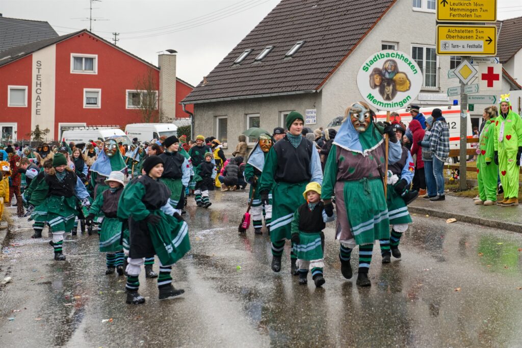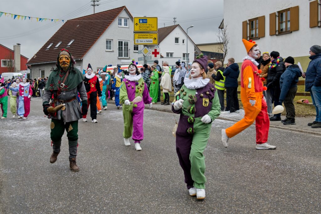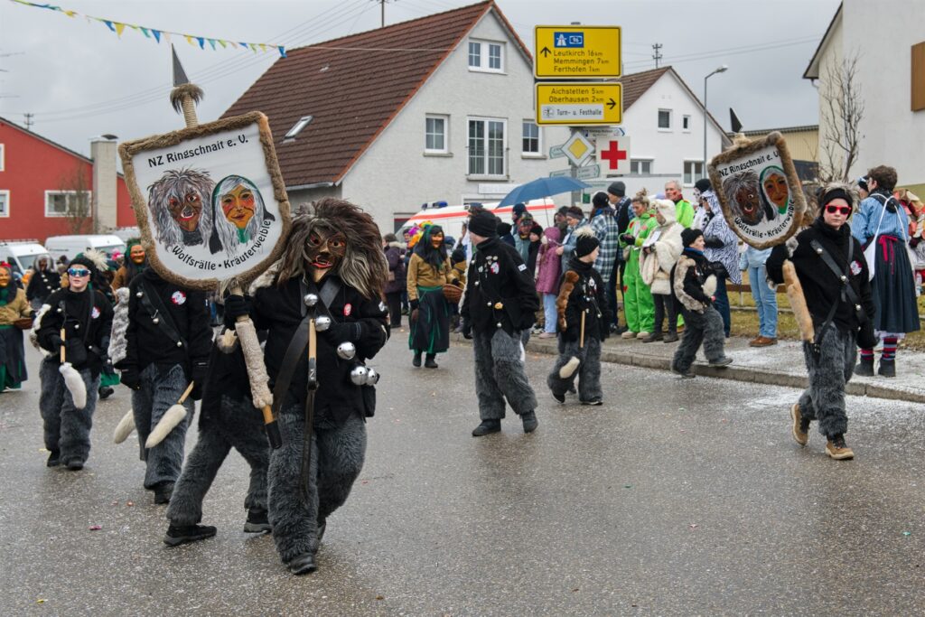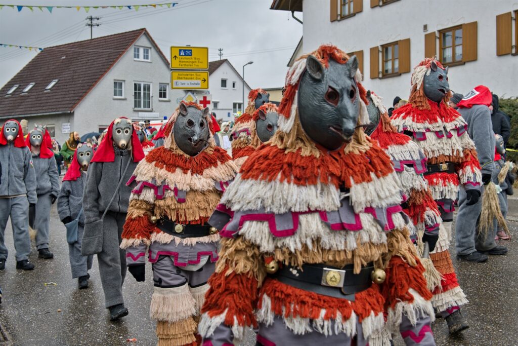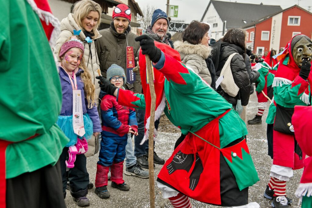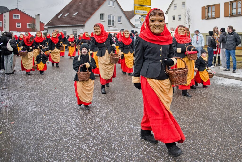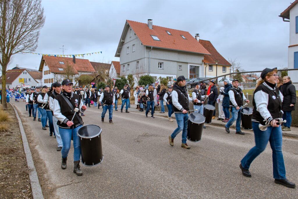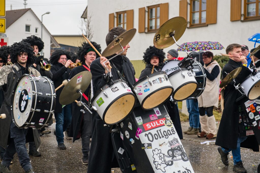 Aitrach – Getreu dem diesjährigen Motto der Aitracher Fasnet „Auf dem Bauernhof“ präsentierten sich am Samstag viele Fußgruppen der heimischen Narrenzunft beim traditionellen Narrensprung in der Illertalgemeinde. Mehr als 3000 Mitwirkende in 75 Gruppen sorgten für Hochstimmung beim zweistündigen Umzug. Hästräger von 35 Narrenzünften der alemannischen Fasnet, dem bayerischen Fasching, Prinzenpaare und Gardemädchen, Lumpenkapellen, Fanfarenzüge, Schalmeien und Blaskapellen begeisterten die zahlreichen Besucher.