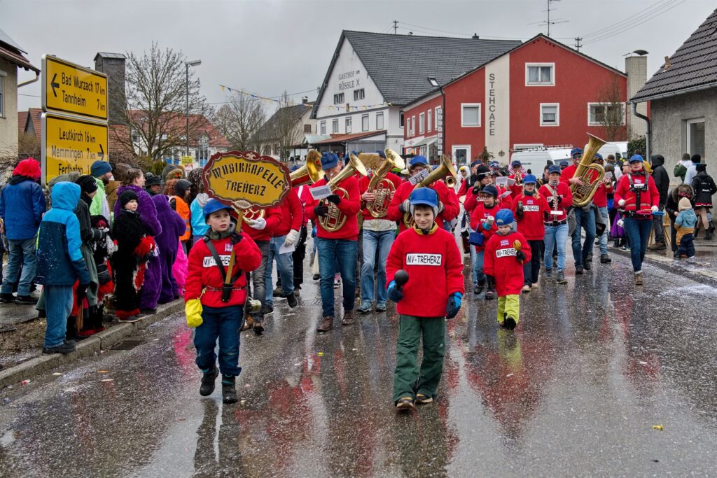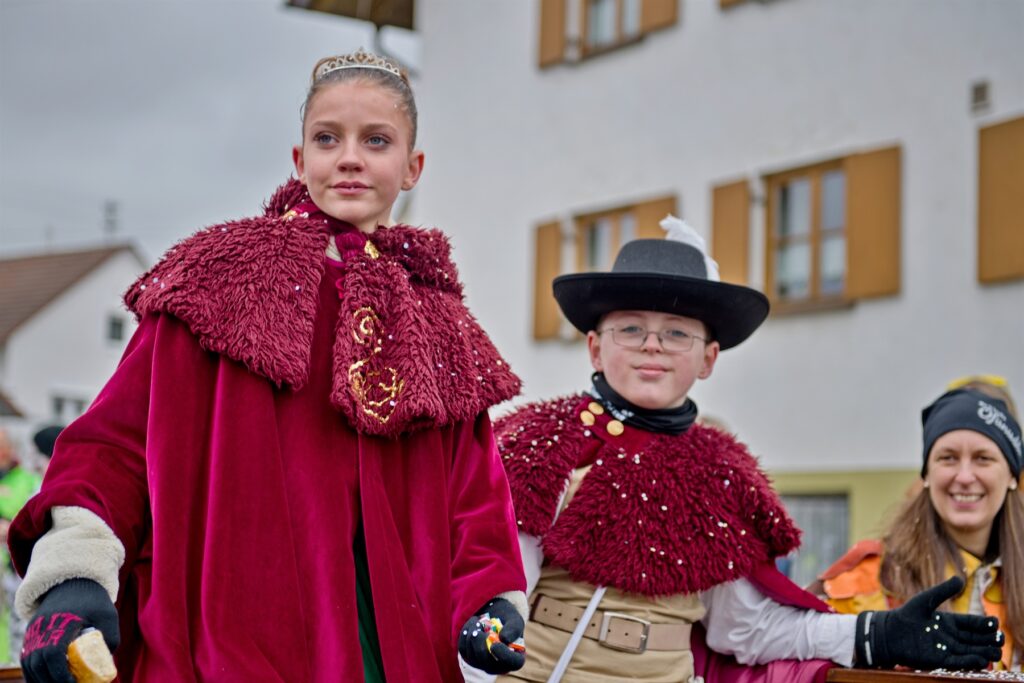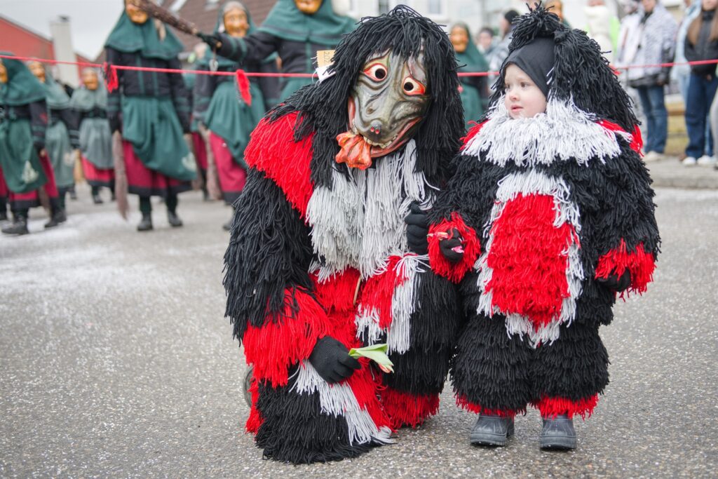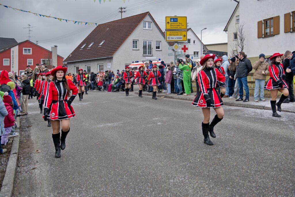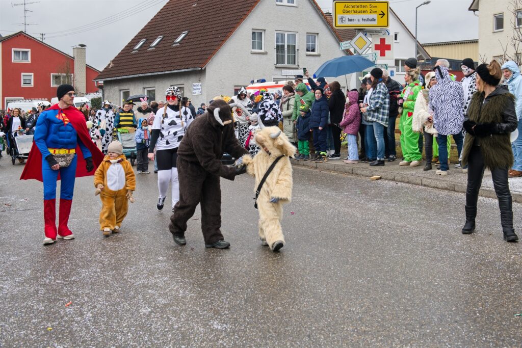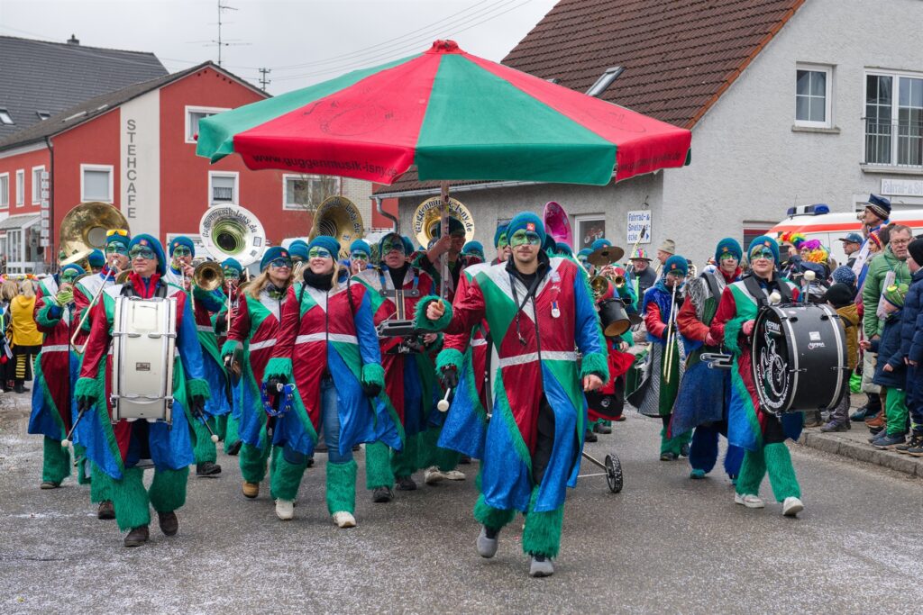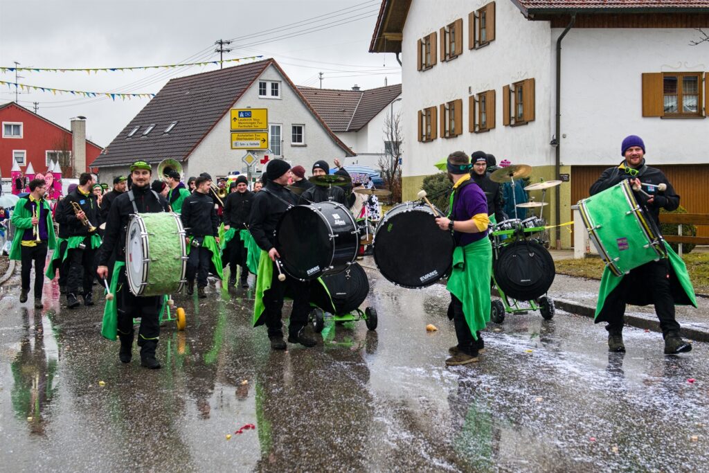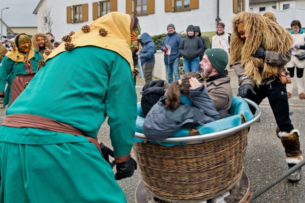 Aitrach – Getreu dem diesjährigen Motto der Aitracher Fasnet „Auf dem Bauernhof“ präsentierten sich am Samstag viele Fußgruppen der heimischen Narrenzunft beim traditionellen Narrensprung in der Illertalgemeinde. Mehr als 3000 Mitwirkende in 75 Gruppen sorgten für Hochstimmung beim zweistündigen Umzug. Hästräger von 35 Narrenzünften der alemannischen Fasnet, dem bayerischen Fasching, Prinzenpaare und Gardemädchen, Lumpenkapellen, Fanfarenzüge, Schalmeien und Blaskapellen begeisterten die zahlreichen Besucher.