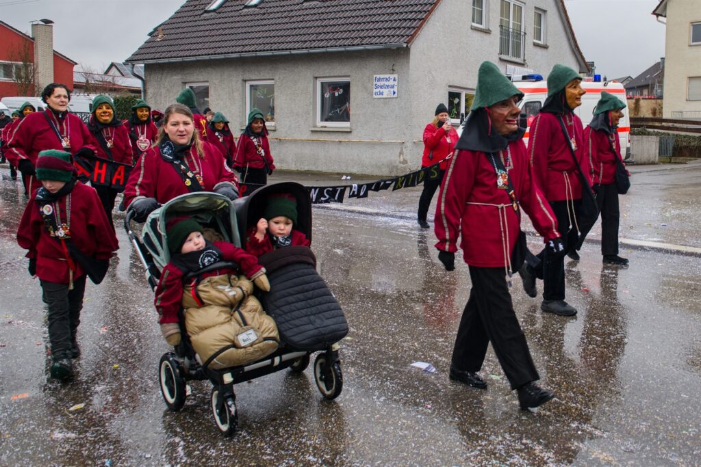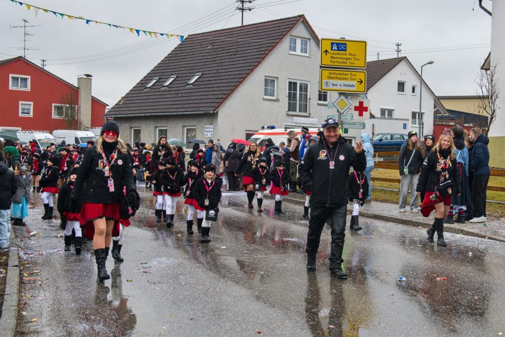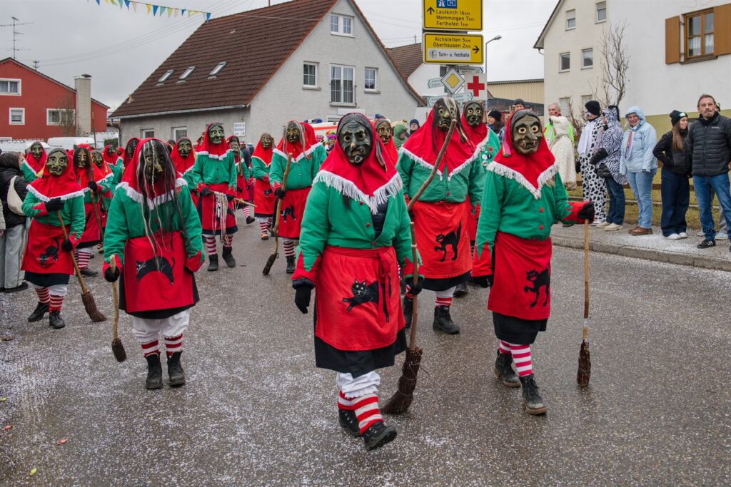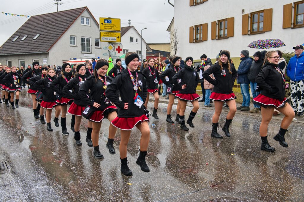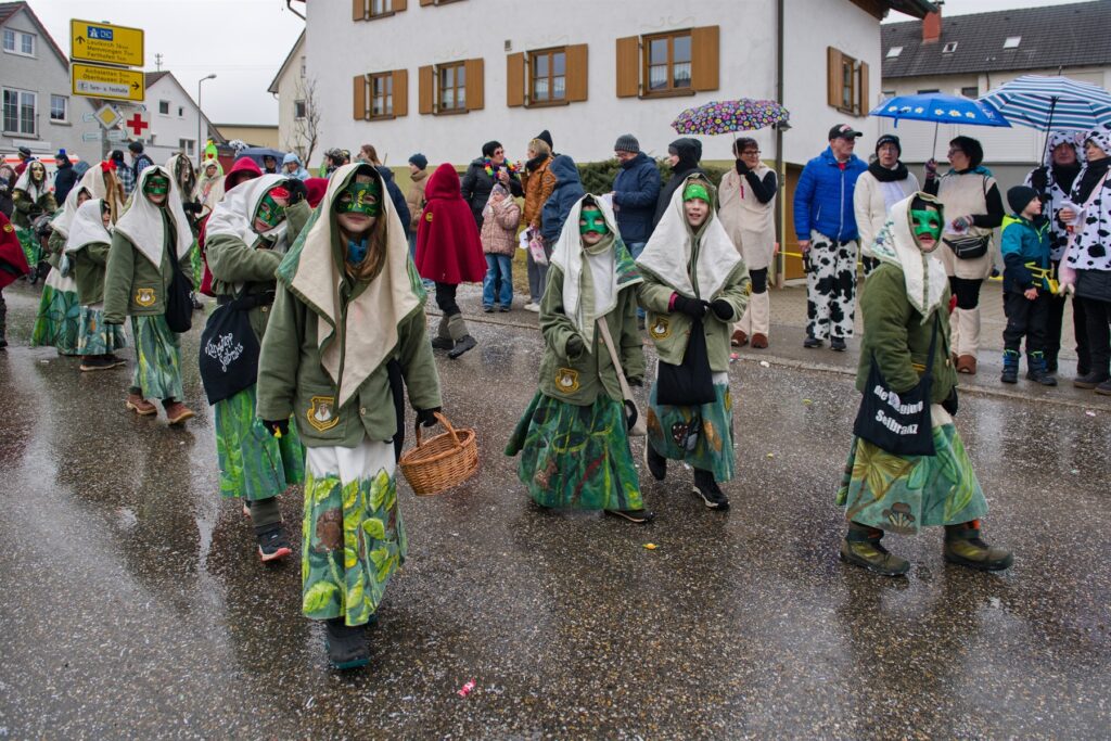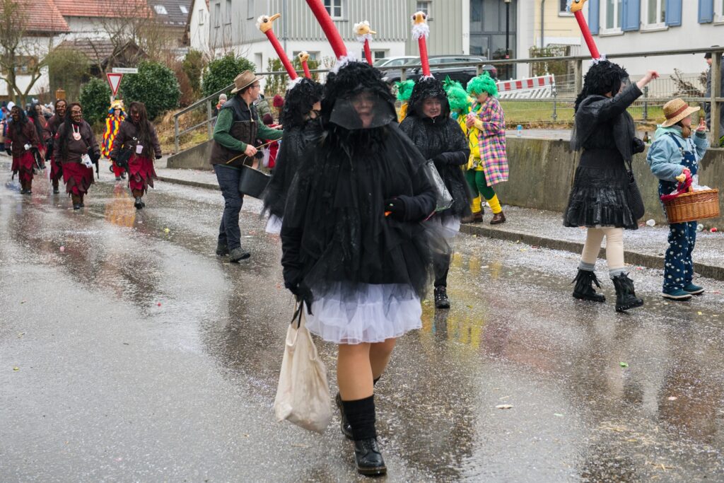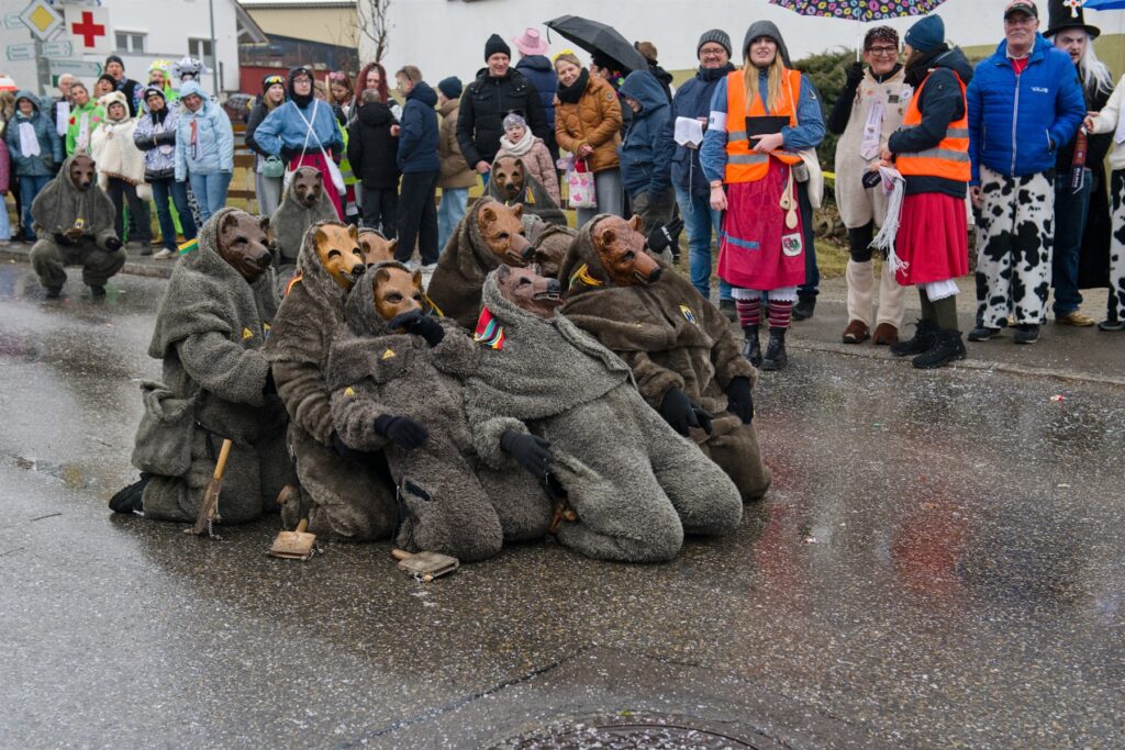Ein großes Kompliment gilt allen Maskenträgern und Gruppen für das disziplinierte Verhalten während des Umzuges bei solchen Witterungsverhältnissen – das gilt besonders für die Gardemädchen, die trotz leichter Bekleidung ihre Tänze zeigten, aber auch für die Hexen, die trotz Nässe und Kälte ihre Pyramiden bauten.