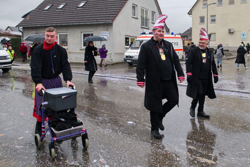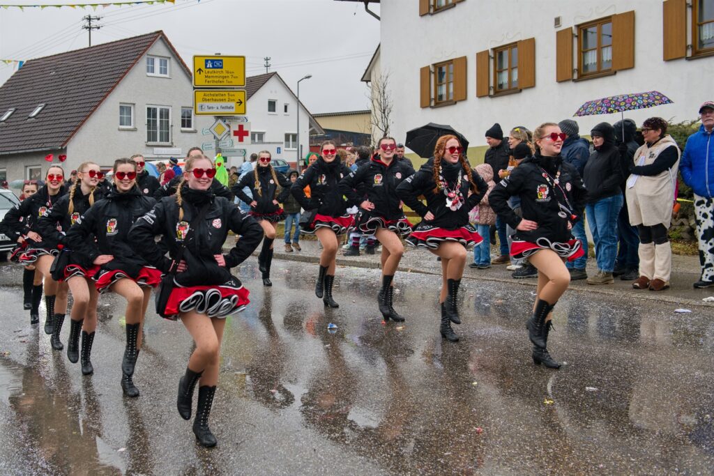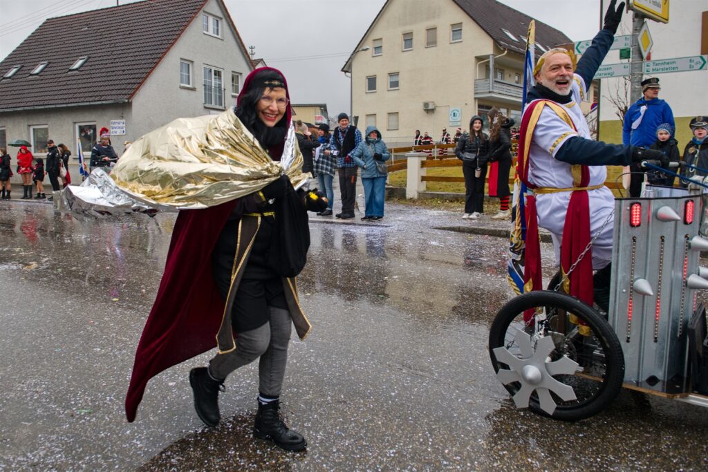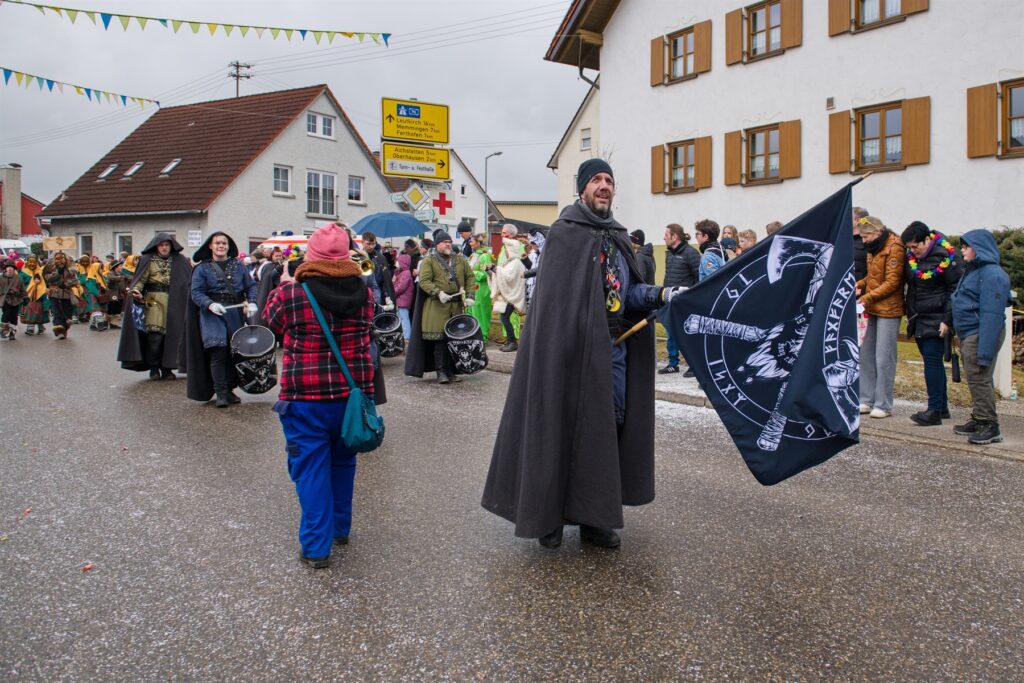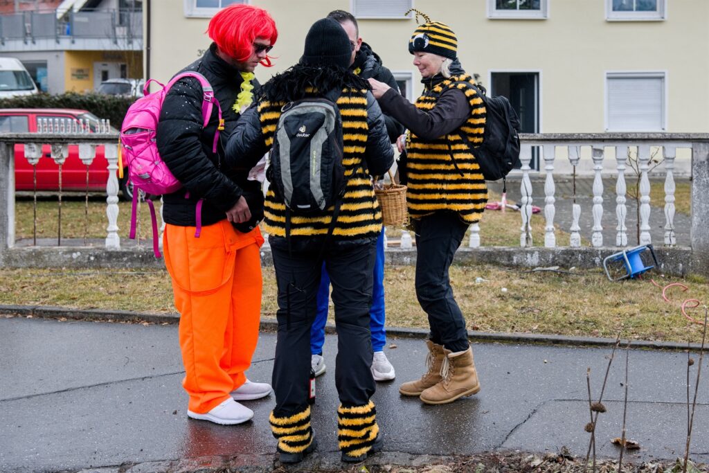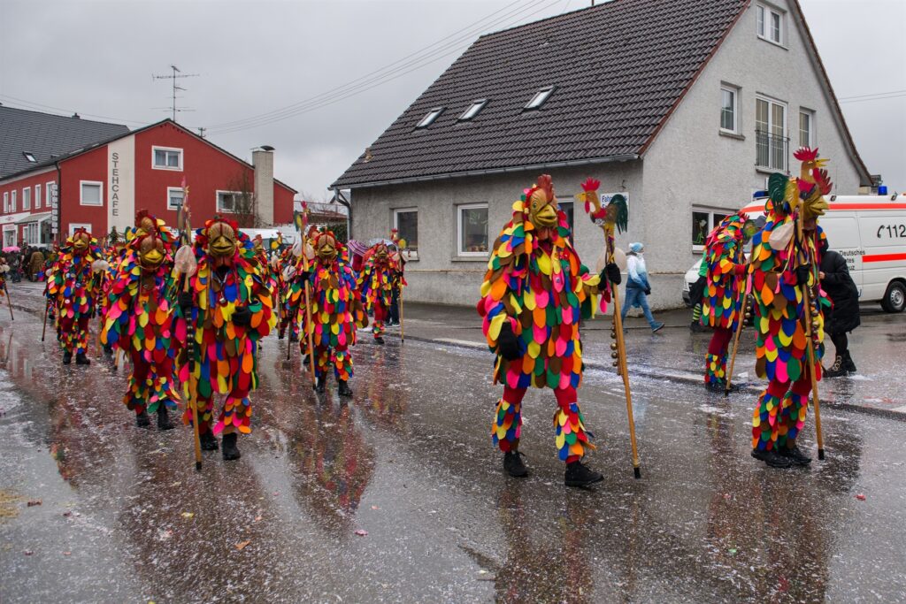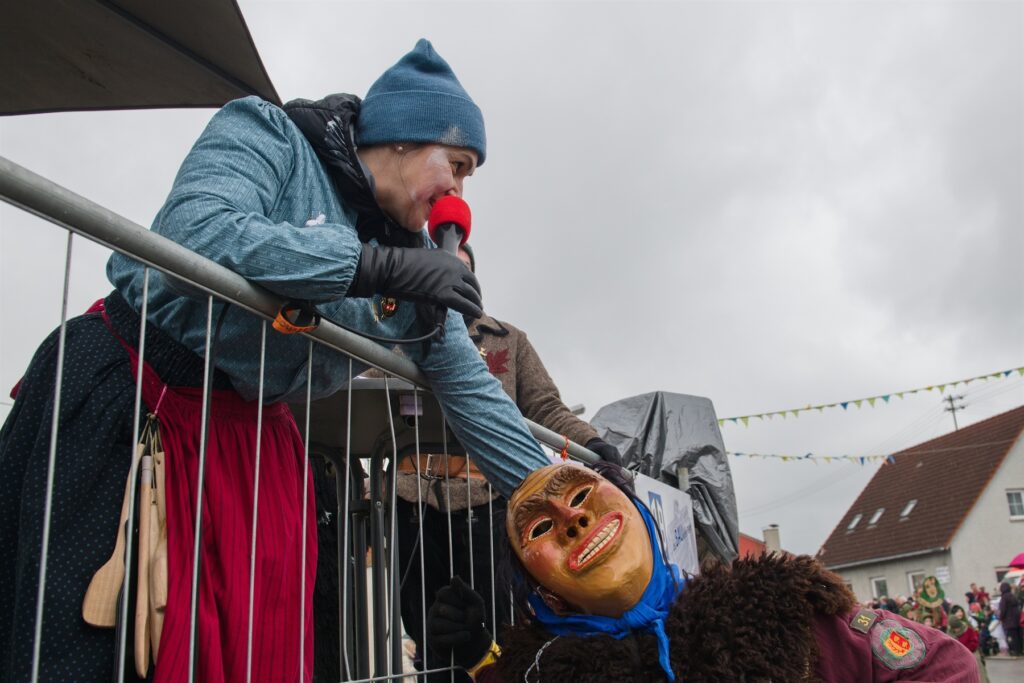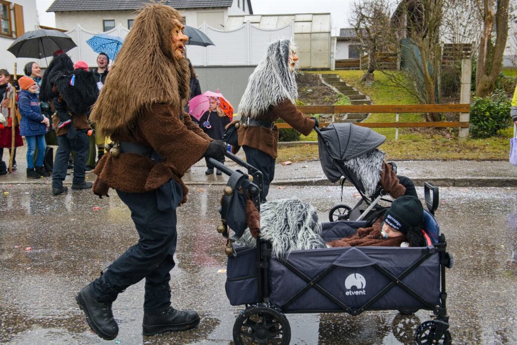 Ein großes Kompliment gilt allen Maskenträgern und Gruppen für das disziplinierte Verhalten während des Umzuges bei solchen Witterungsverhältnissen – das gilt besonders für die Gardemädchen, die trotz leichter Bekleidung ihre Tänze zeigten, aber auch für die Hexen, die trotz Nässe und Kälte ihre Pyramiden bauten.
