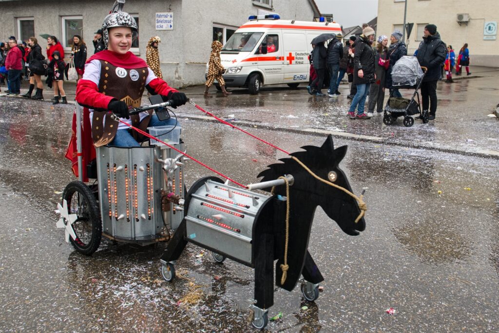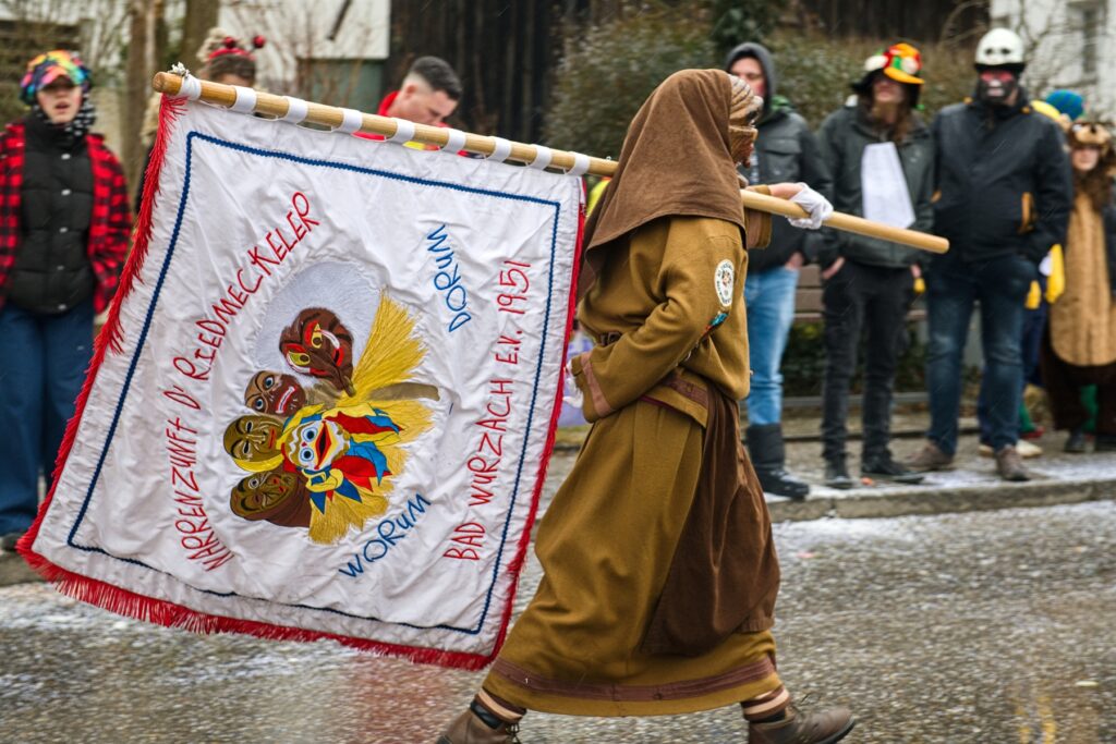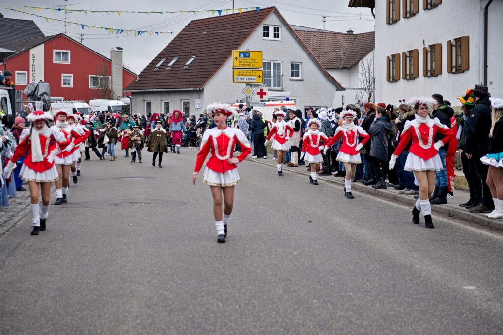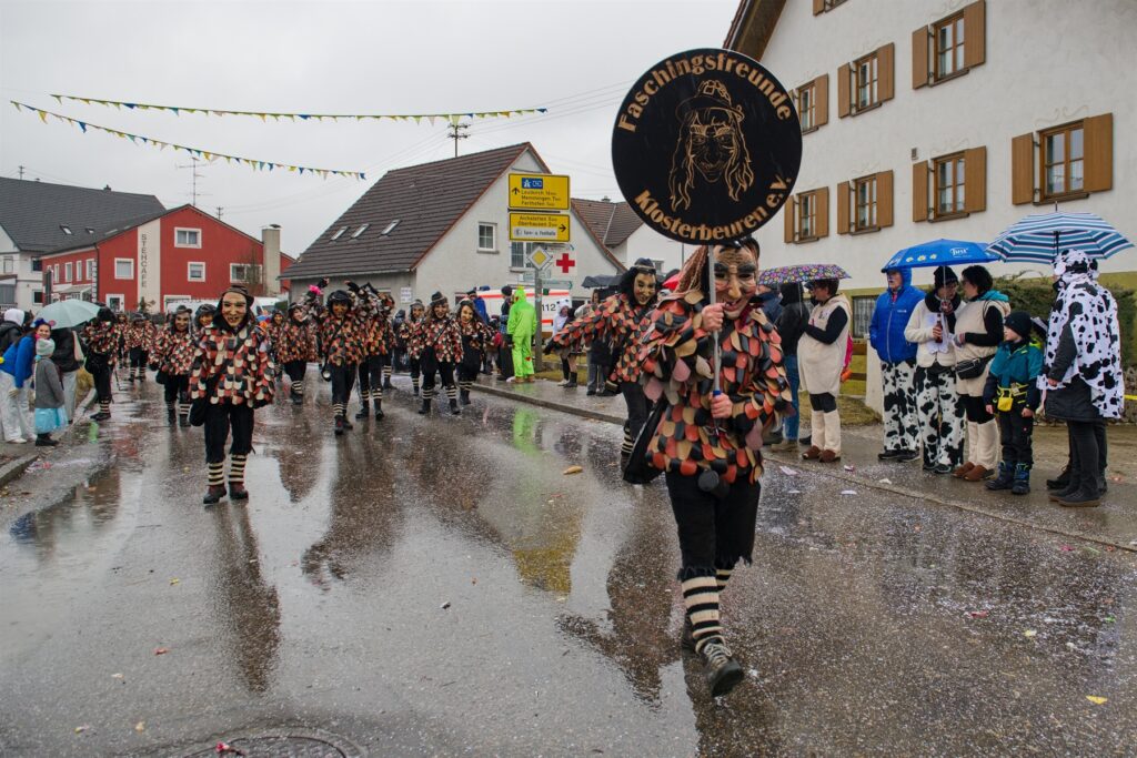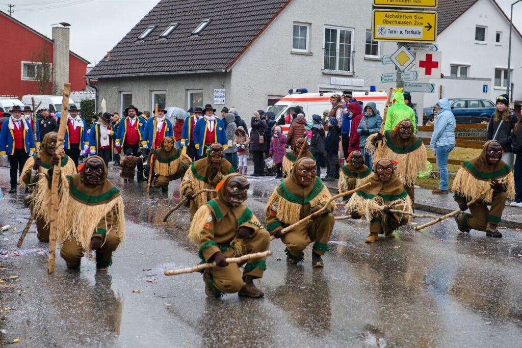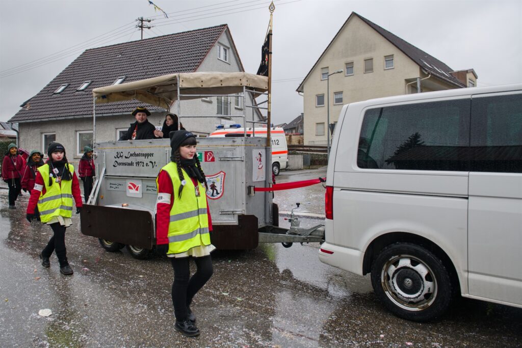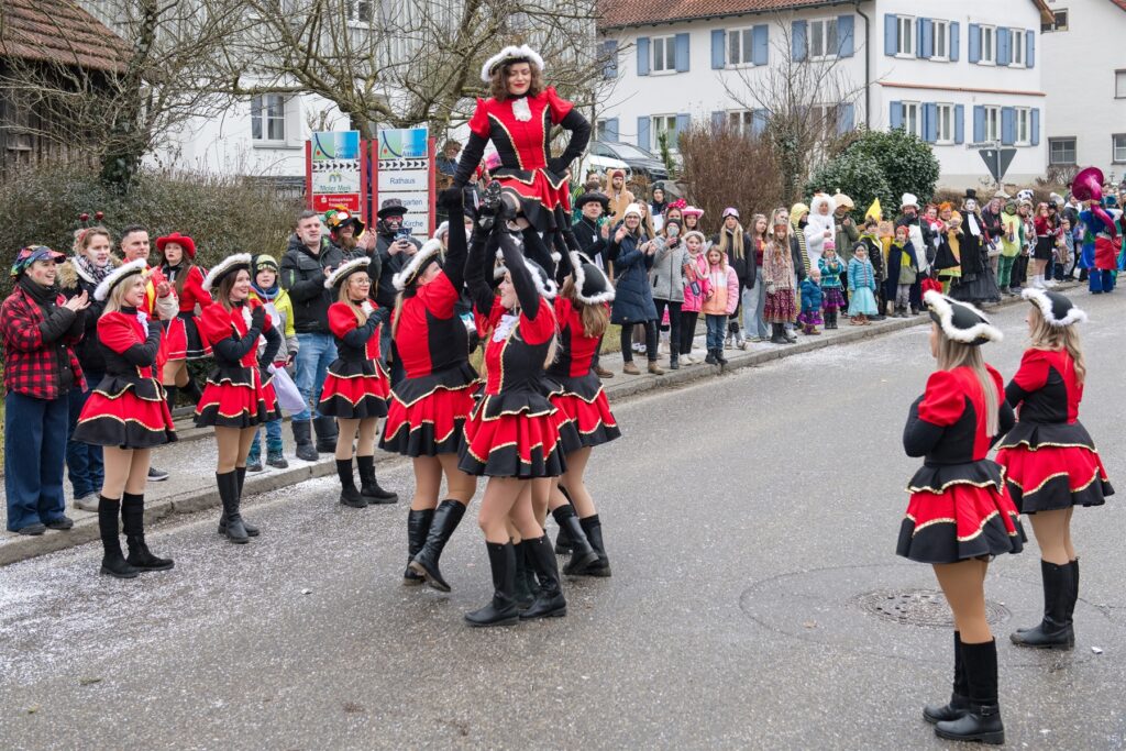 Ein großes Kompliment gilt allen Maskenträgern und Gruppen für das disziplinierte Verhalten während des Umzuges bei solchen Witterungsverhältnissen – das gilt besonders für die Gardemädchen, die trotz leichter Bekleidung ihre Tänze zeigten, aber auch für die Hexen, die trotz Nässe und Kälte ihre Pyramiden bauten.