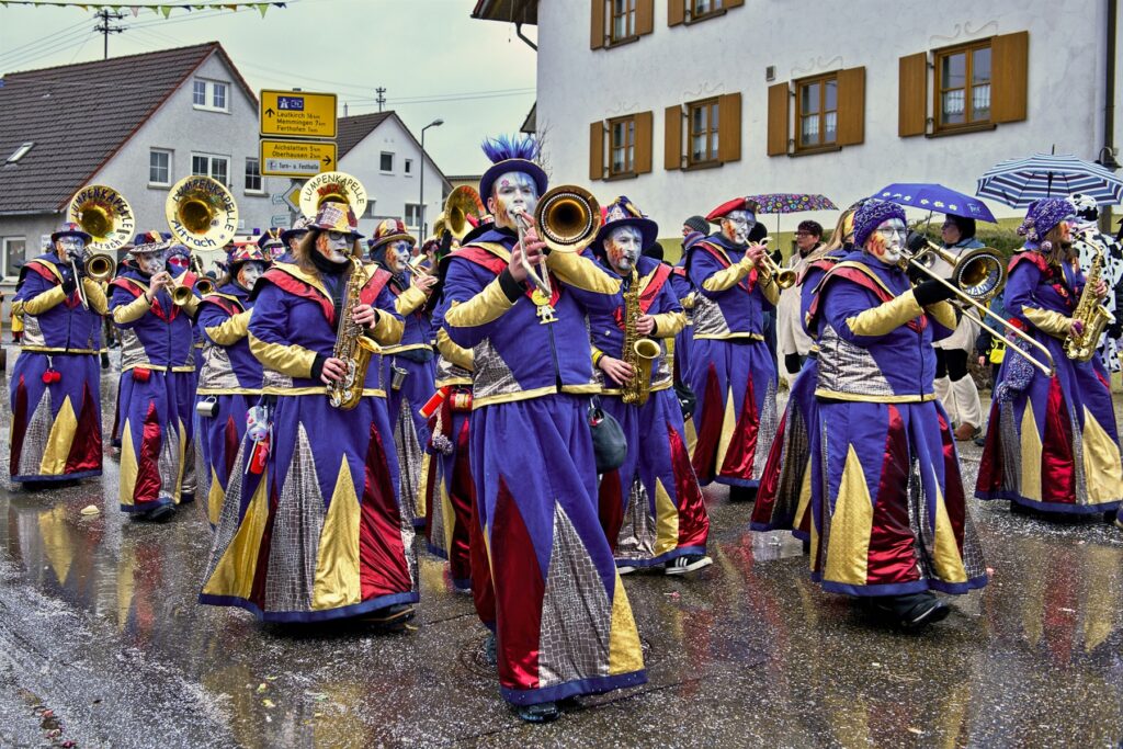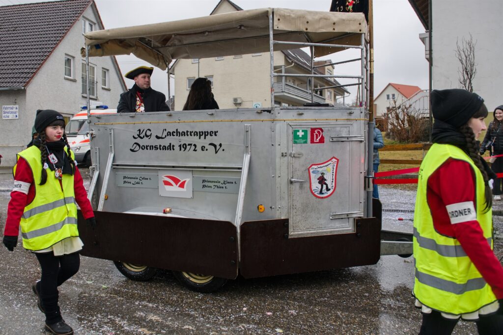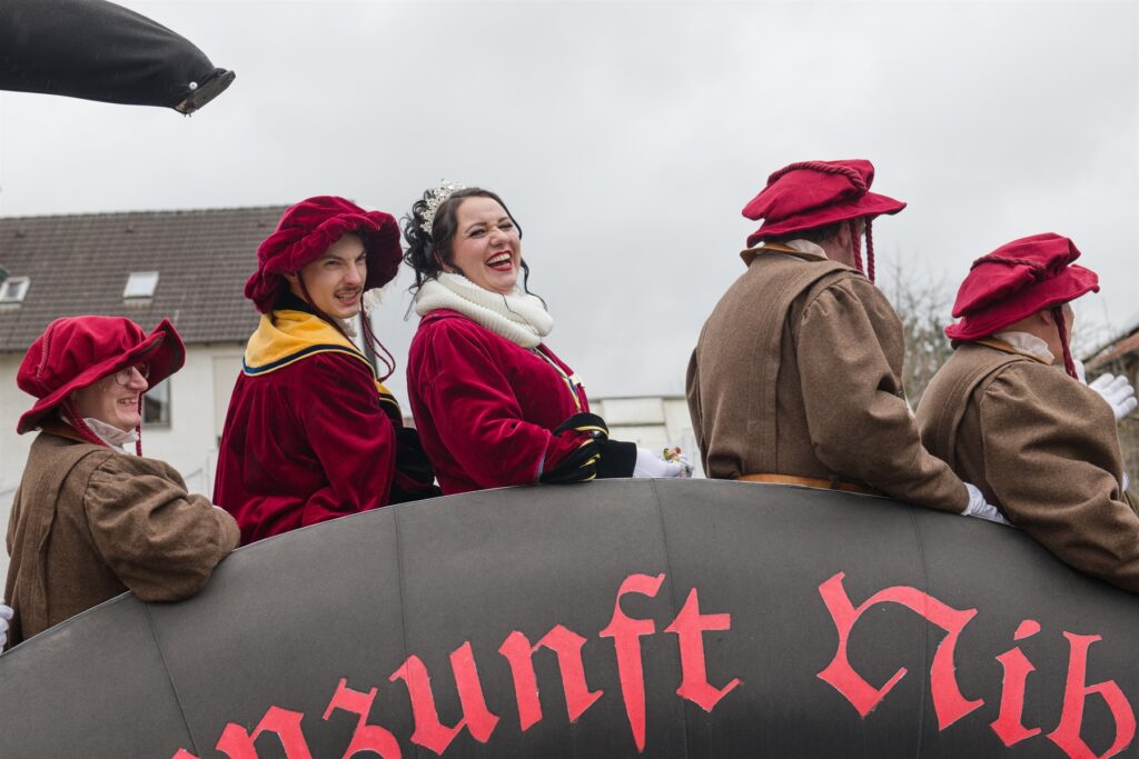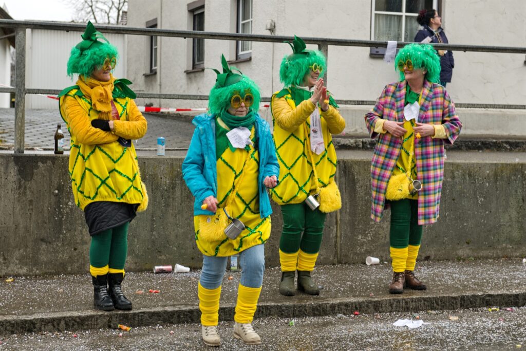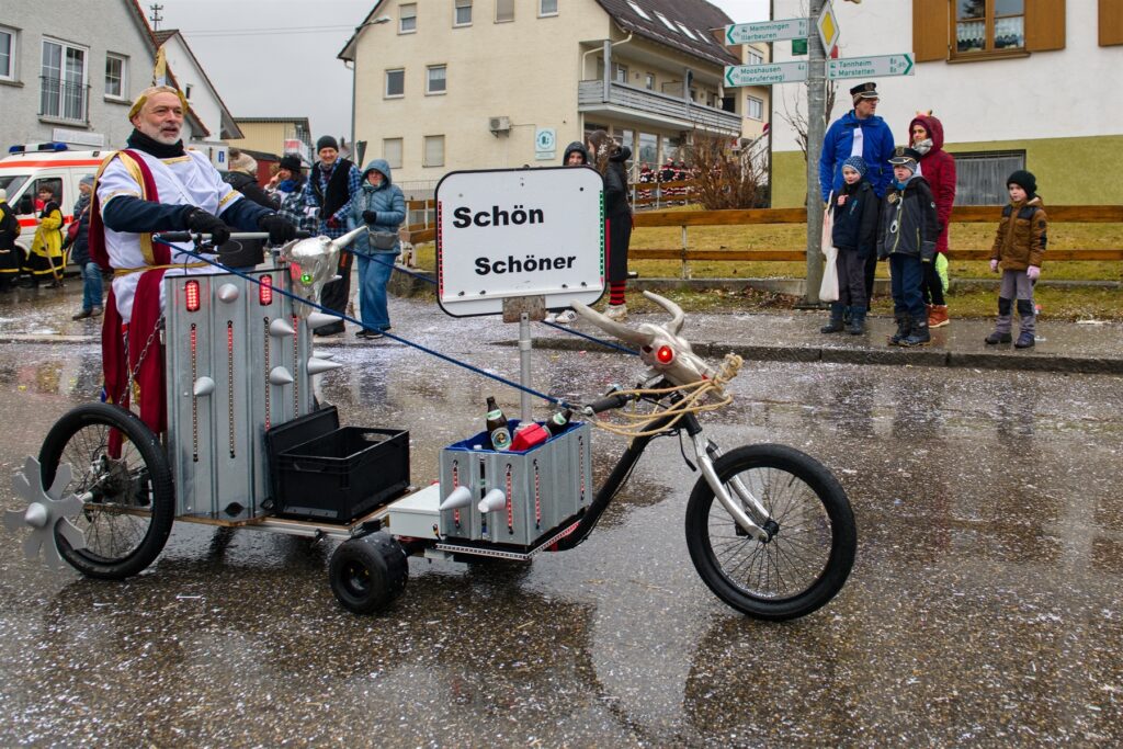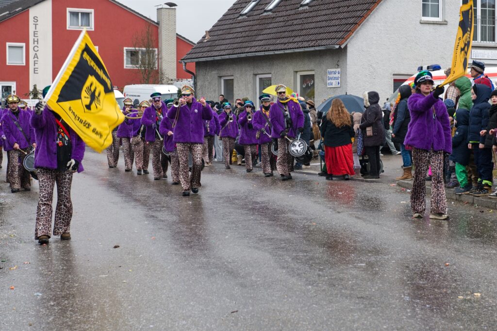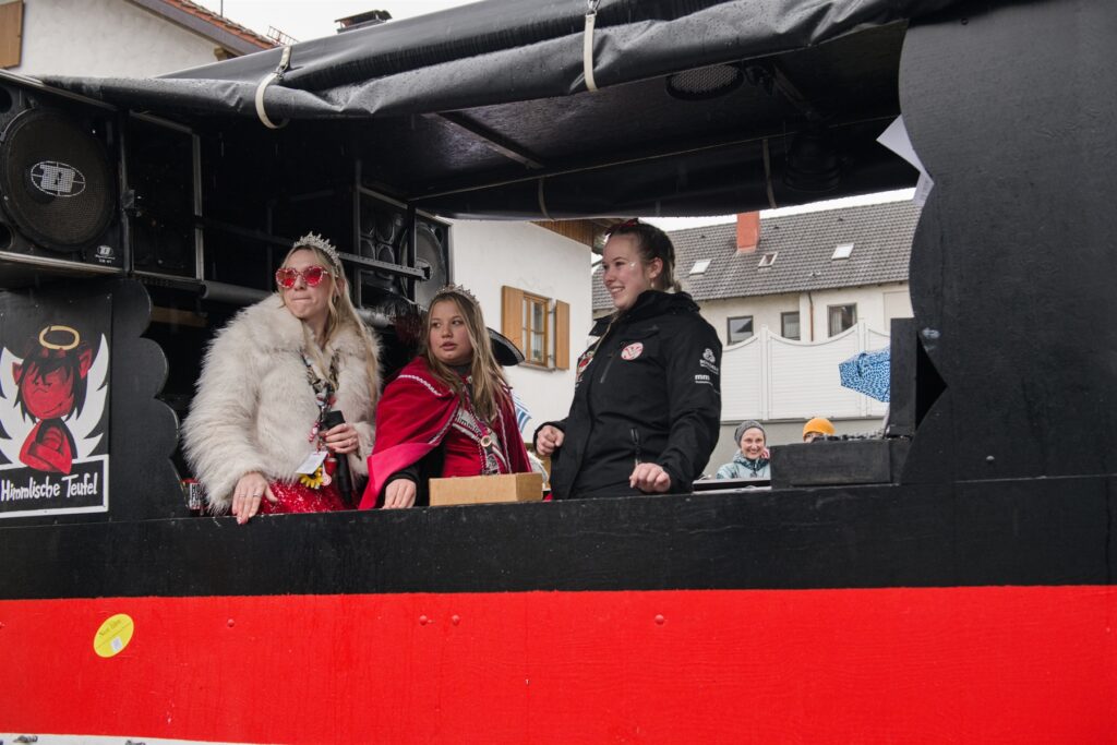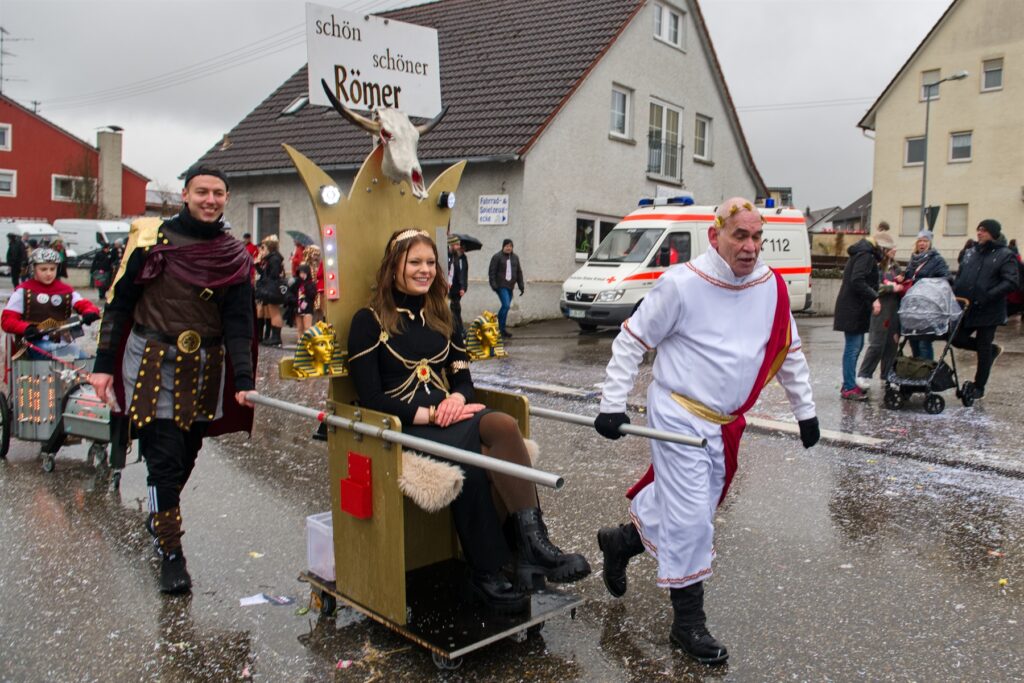 Ein großes Kompliment gilt allen Maskenträgern und Gruppen für das disziplinierte Verhalten während des Umzuges bei solchen Witterungsverhältnissen – das gilt besonders für die Gardemädchen, die trotz leichter Bekleidung ihre Tänze zeigten, aber auch für die Hexen, die trotz Nässe und Kälte ihre Pyramiden bauten.
