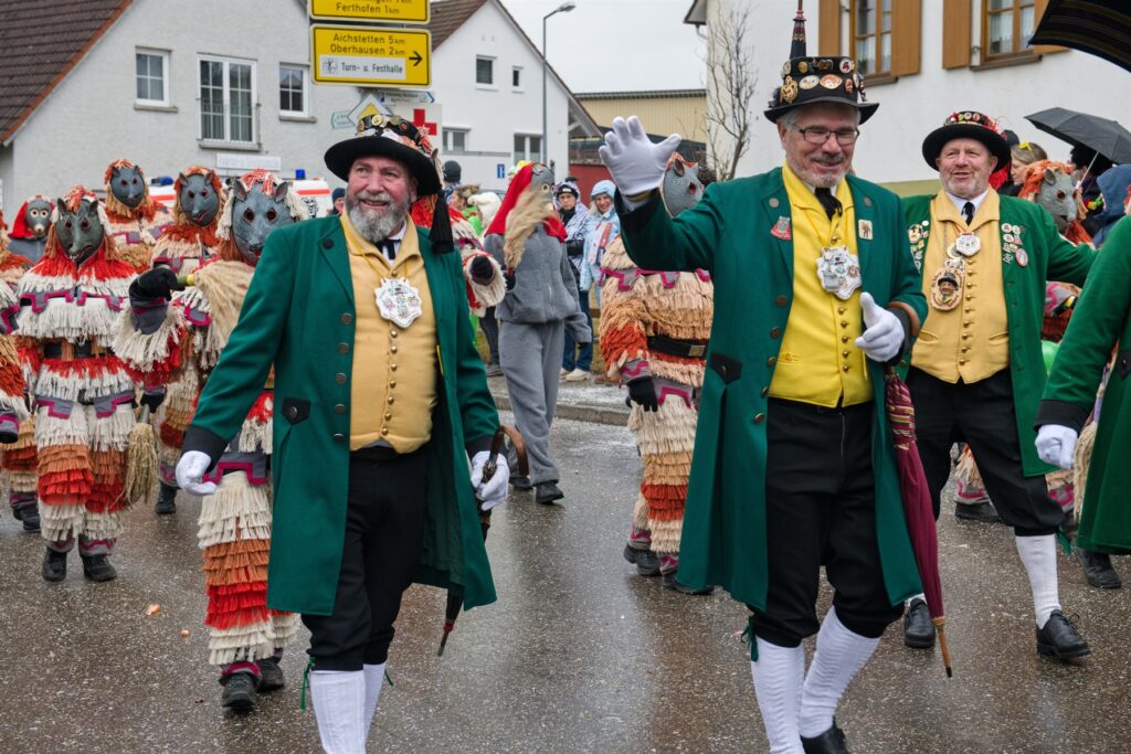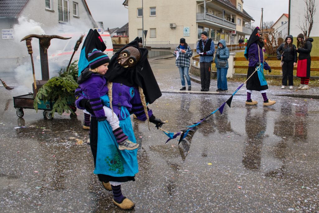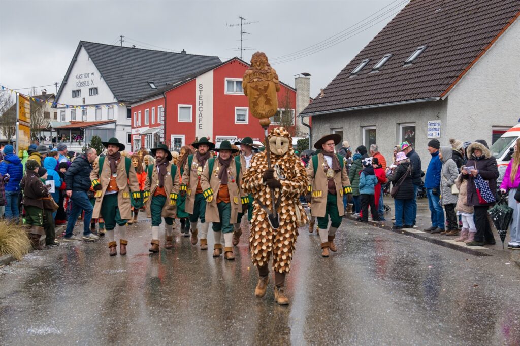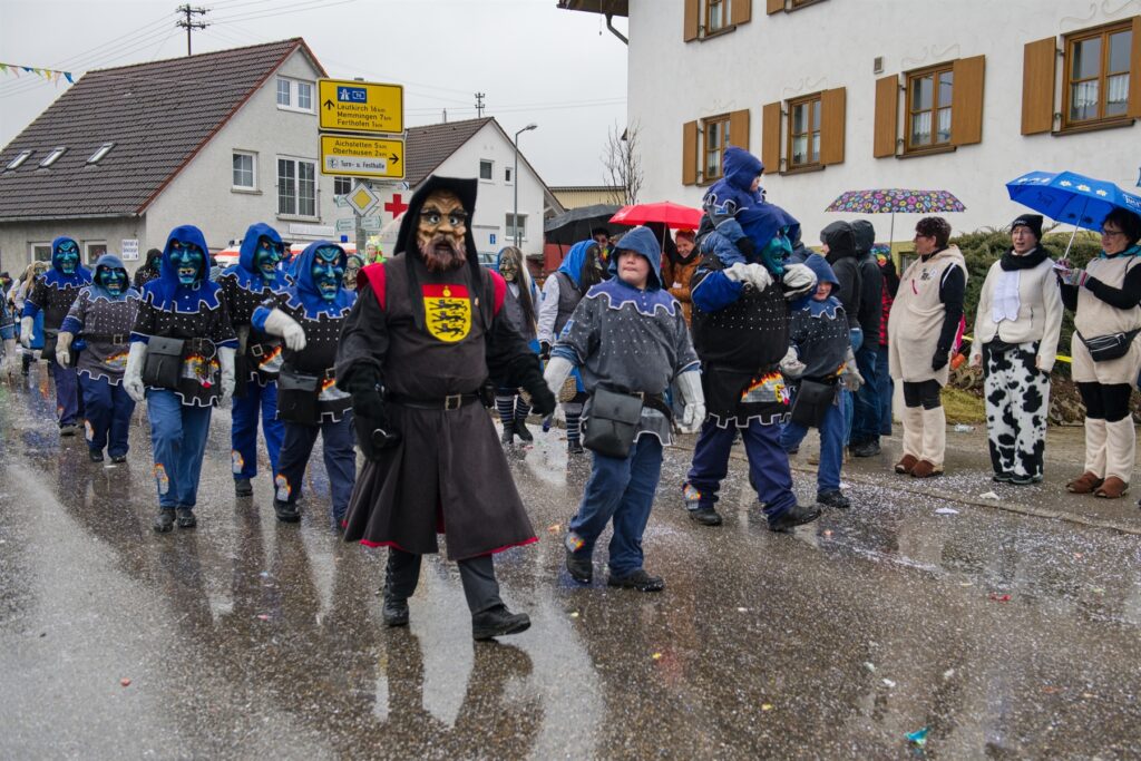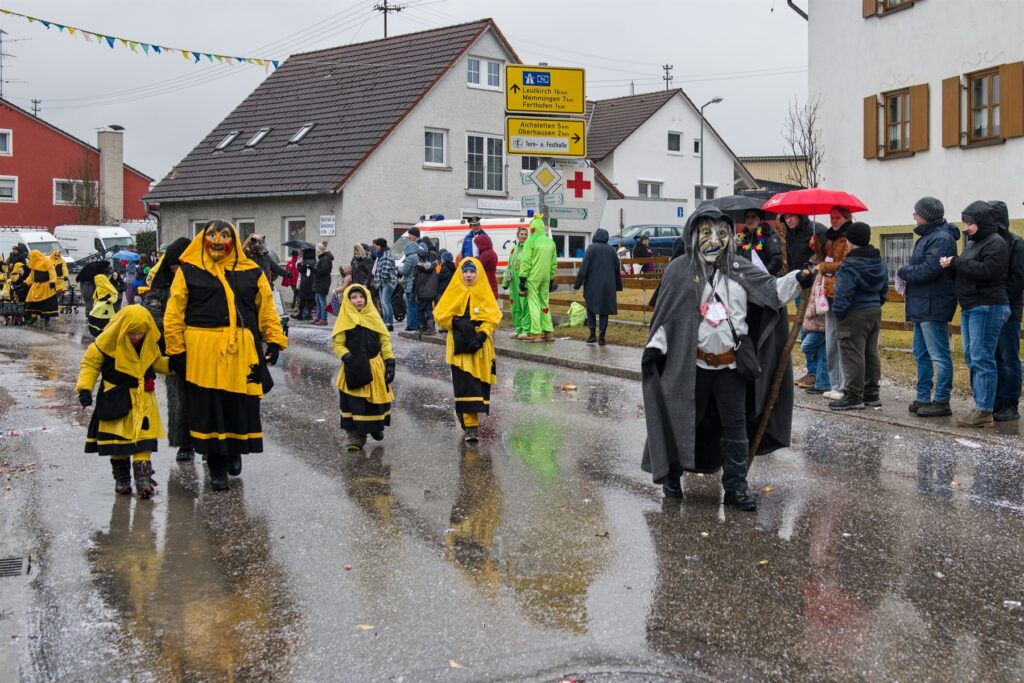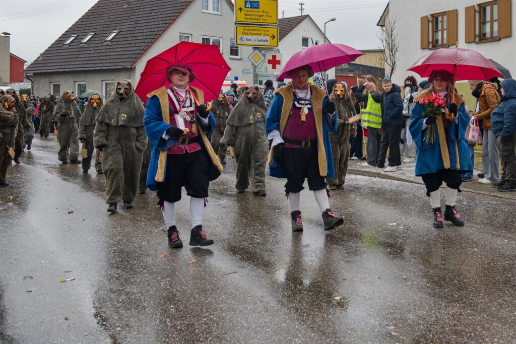 Zunftmeisterin Susa mit ihrem Tannheimer Kollegen Markus Arnold, Eva Lautenbacher am Rössle sowie Michael Weinmann, besser bekannt als der „Moser“ hielten die teils durchnässten Zuschauer bei bester Laune.