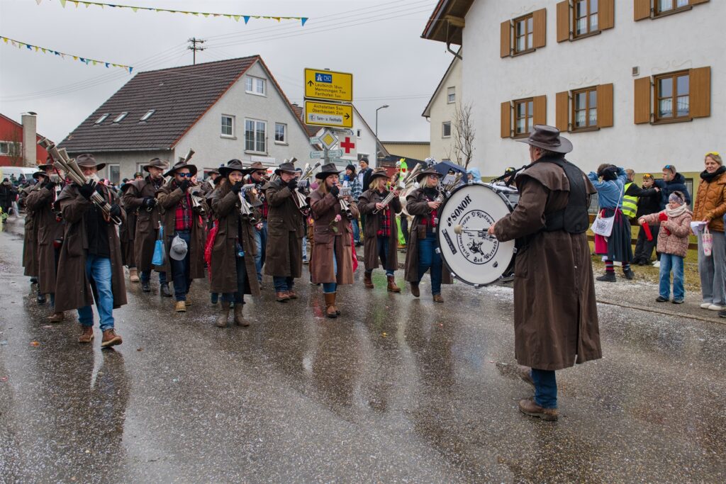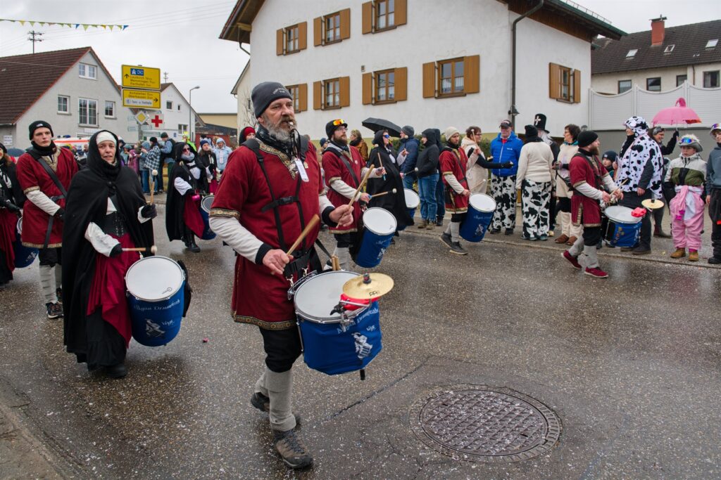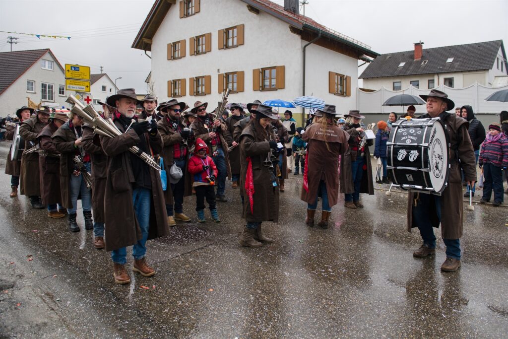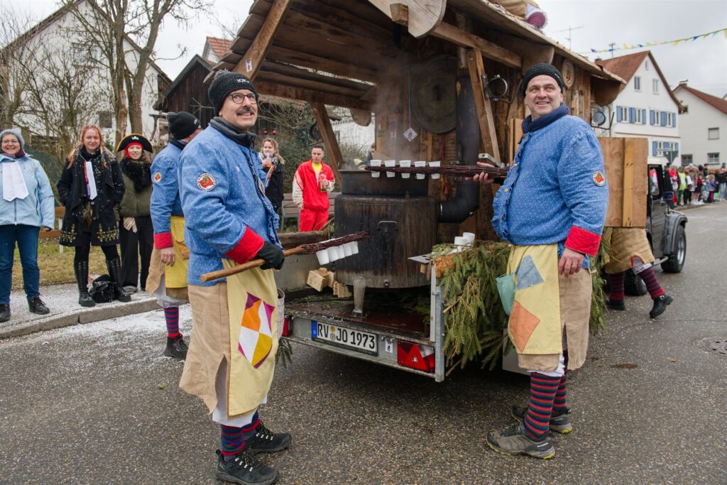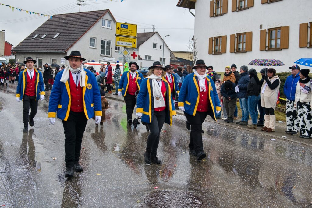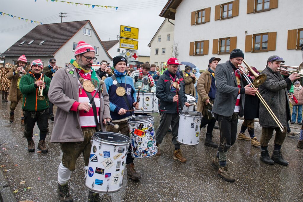 Zunftmeisterin Susa mit ihrem Tannheimer Kollegen Markus Arnold, Eva Lautenbacher am Rössle sowie Michael Weinmann, besser bekannt als der „Moser“ hielten die teils durchnässten Zuschauer bei bester Laune.