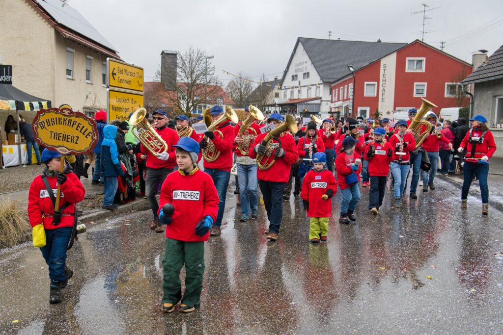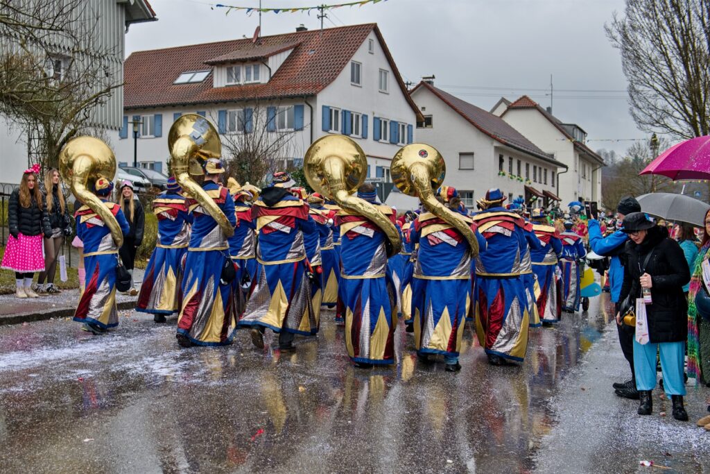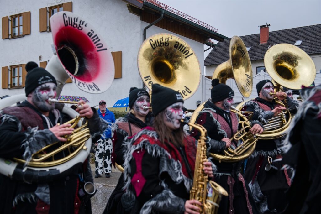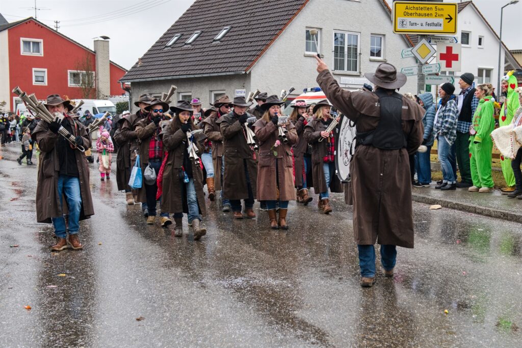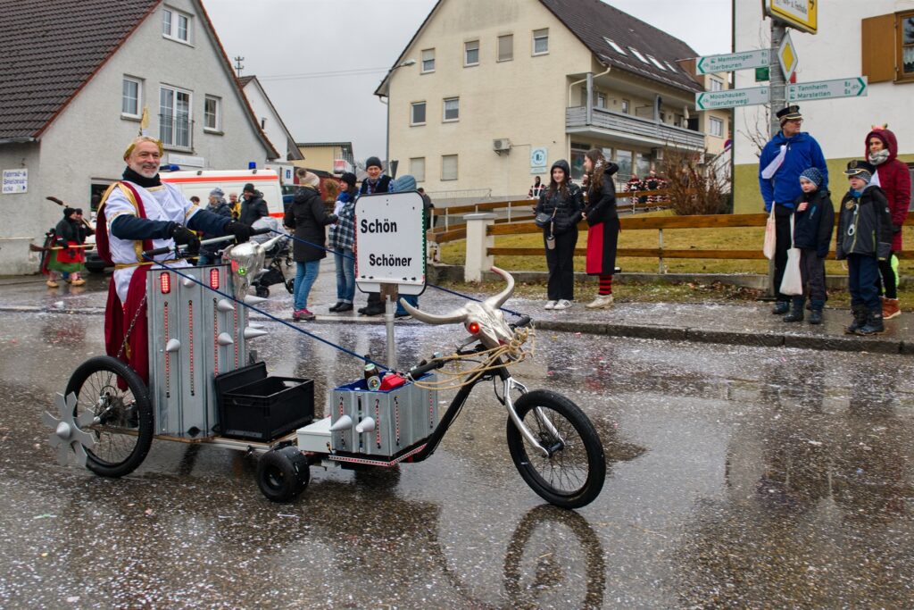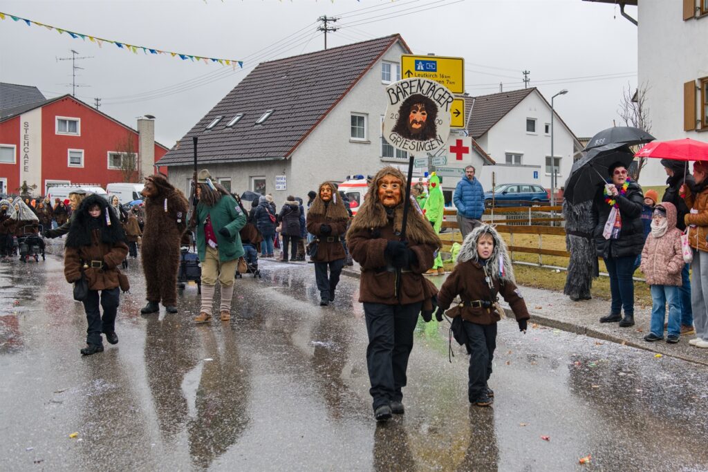 Zunftmeisterin Susa mit ihrem Tannheimer Kollegen Markus Arnold, Eva Lautenbacher am Rössle sowie Michael Weinmann, besser bekannt als der „Moser“ hielten die teils durchnässten Zuschauer bei bester Laune.