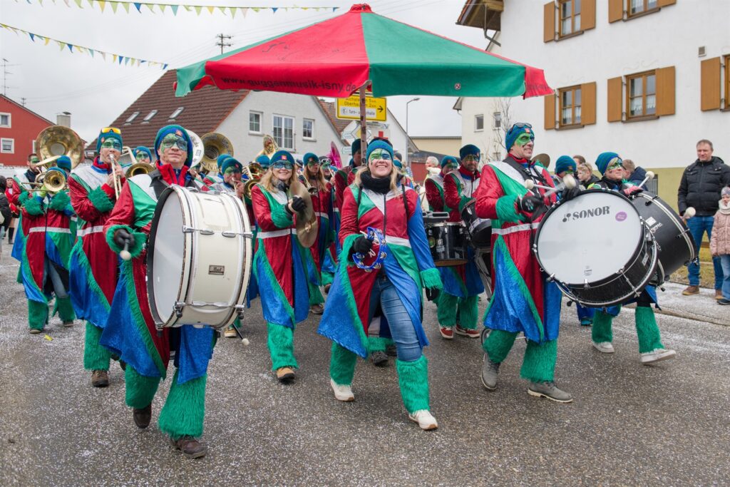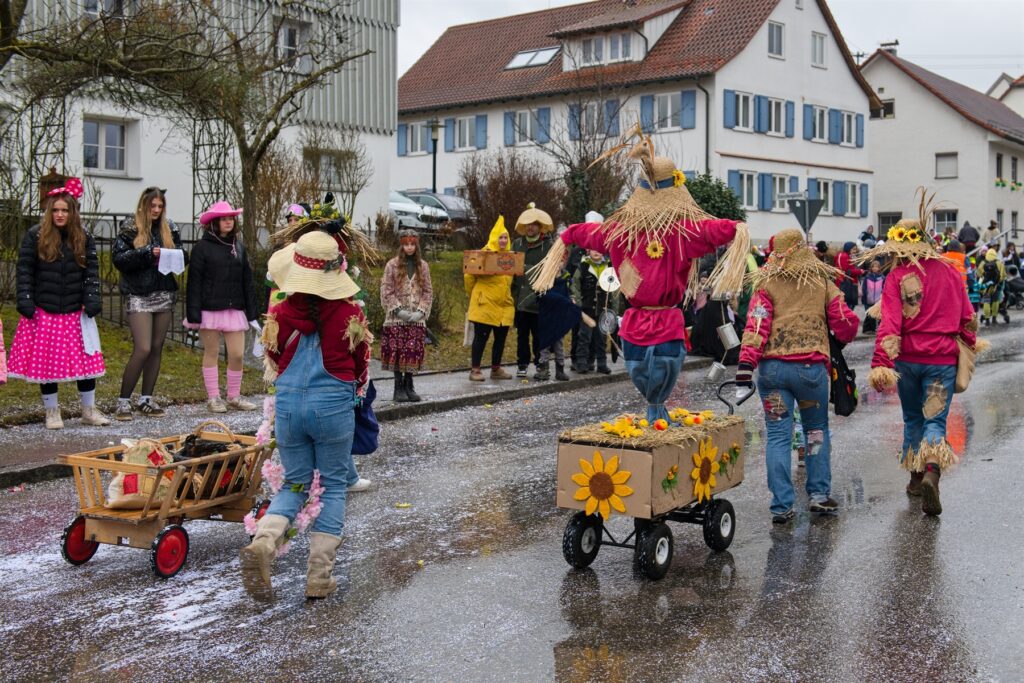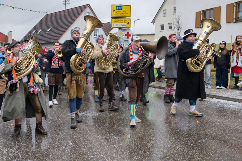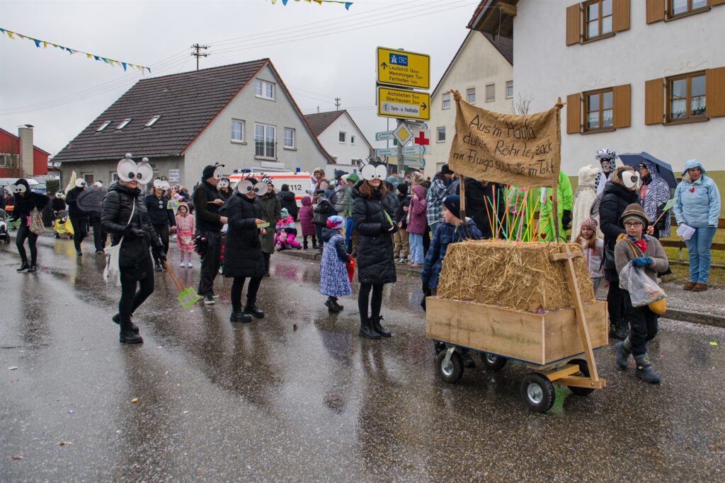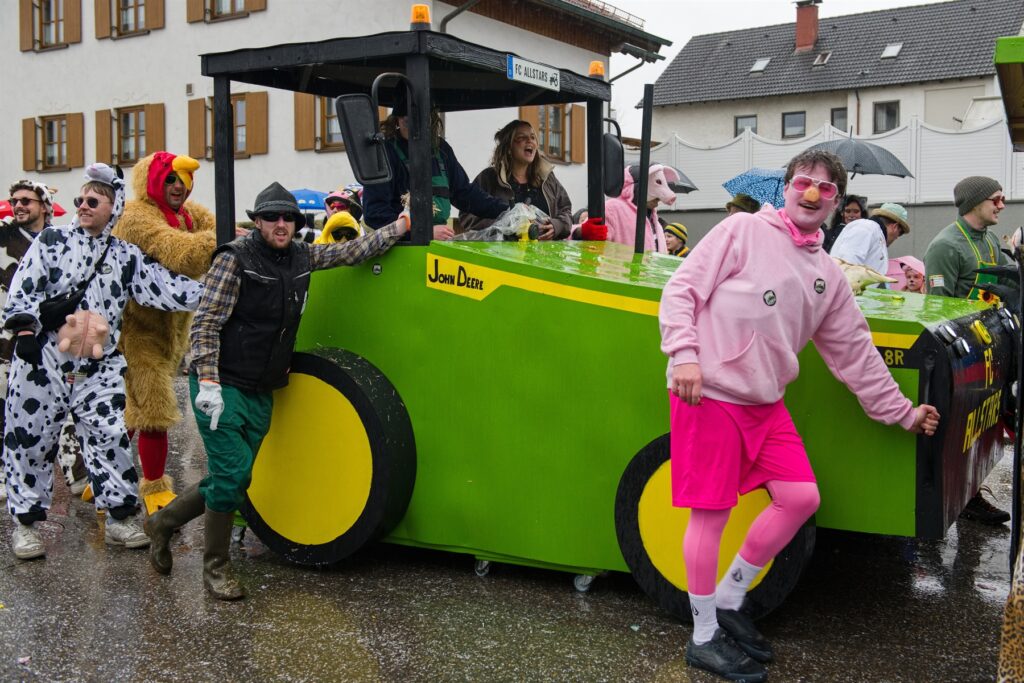 „Gruber und Freunde“ erinnerten auf dem Bauernhof, was macht Spaß: „Schaun das Schaf“. Die Bannwald Narren Vogelscheuchen, Stroh im Kopf, der „Royale Freundeskreis “Steck da Kopf it en da Sand – d`Straußa send omanand“. Der „Förderverein der glückseligen Fasnet“ bedauerte Löwen ade – Hirsch Juhee. Die Aitracher Fußballer als FC Allstars „Ackerbau und Viehzucht und Biogasanlage. MV Aitrach und Freunde – Aitracher Stallfliegen „Fluiga Dätschr“.
