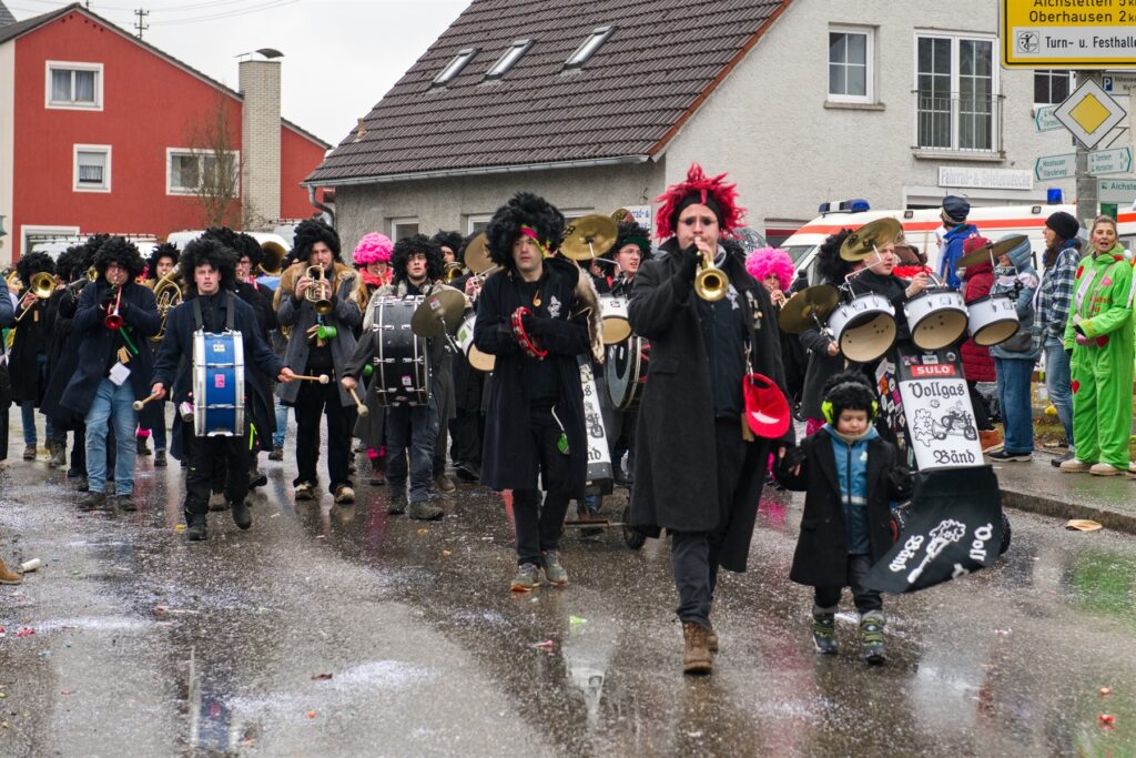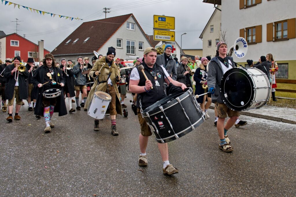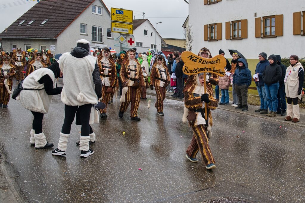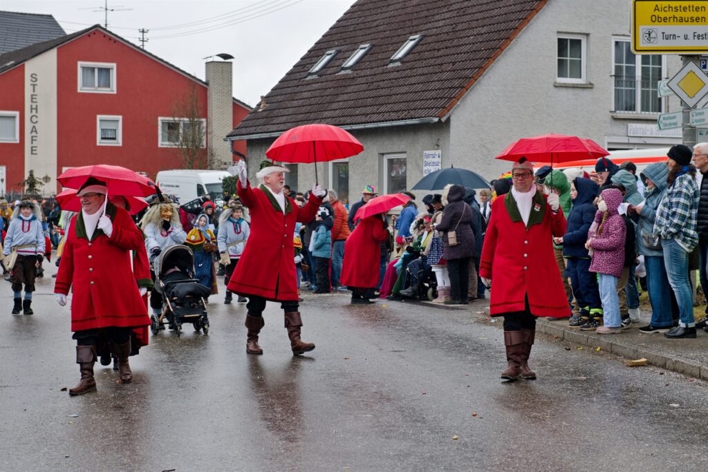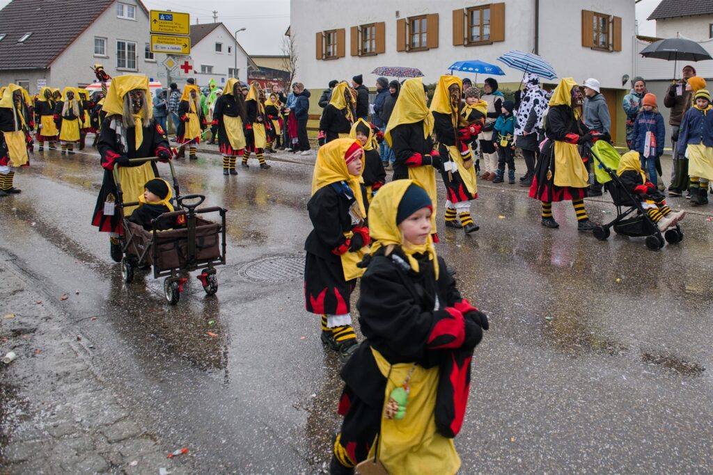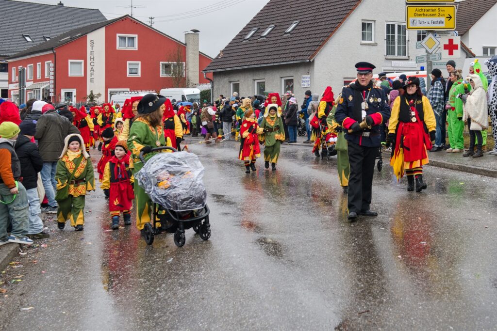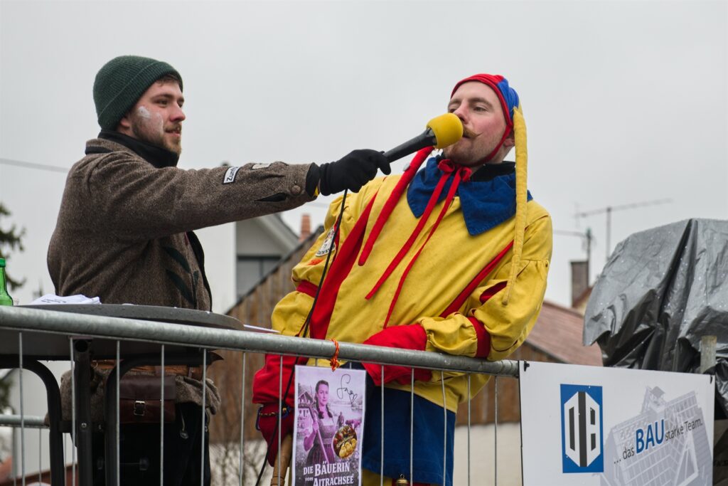 Der heimische Fanfarenzug führte den Gaudiwurm an, gefolgt von den Aitracher Narrenzunftgruppen den Roi- und Kellaweible, den Prinzenpaaren Prinzessin Sophia und Prinz Mexx I und Martha und Lian sowie den Gardemädchen. Mit dabei auch der Kindergarten Arche Noah. In bunter Folge bewegte sich der Narrenzug auf der Ortsdurchfahrt und präsentierte sich in ausgelassener Stimmung trotz des Regenwetters dem begeistert mitgehenden Publikum. Abwechslungsreiche, spektakuläre und sportliche Darbietungen der Maskenträger, der insgesamt 14 Musikgruppen und nicht zuletzt von den fantasievollen Fußgruppen wurden geboten, und für die kleinen Besucher gab es vielfältige Süßigkeiten zum Aufsammeln. Bei der typischen Aitracher Dorffasnet finden Fasnet, Fasching und Karneval aus Württemberg und Bayern zusammen. Es wurden Pyramiden gebaut und Kunstspringen gezeigt.