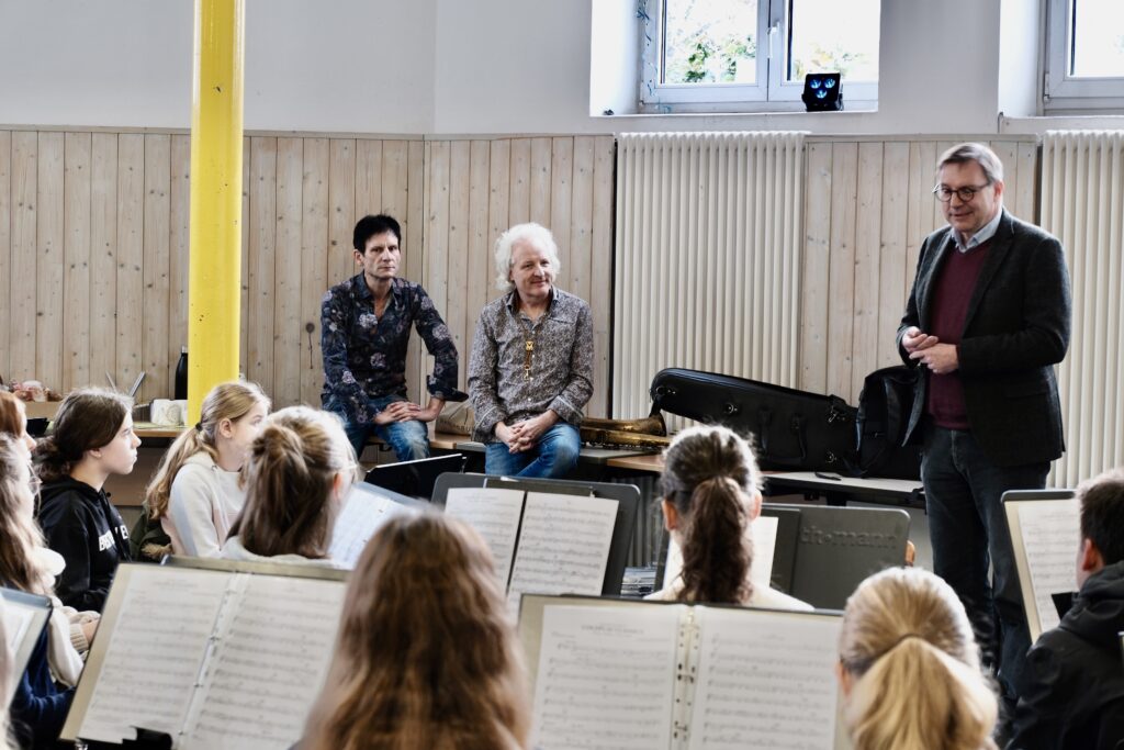 Blönried – Wenn der Chefdirigent des Landespolizeiorchesters Baden-Württemberg und ein renommierter Jazzsaxophonist gemeinsam in der Aula des Studienkollegs St. Johann stehen, dann liegt etwas Besonderes in der Luft. Am Montag, den 19. Januar, erlebte die schuleigene Big Band einen Workshop-Tag, der weit über die gewöhnliche Probenarbeit hinausging und die jungen Talente nachhaltig inspirierte.