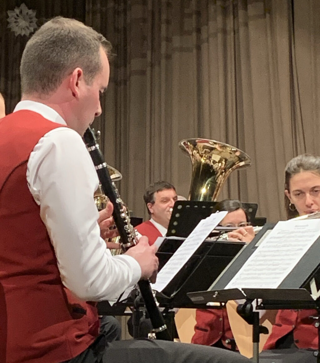 „Klezmer Karnival“ (Philip Sparke) beendete Teil I des Neujahrskonzerts. Martin Gallasch führte in diese besondere und leider selten gewordene Musikrichtung ein. Es handelt sich um eine Musiktradition des osteuropäischen Judentums. Sie vermittle zugleich Lachen, Weinen oder Melancholie. Typisch dabei sind wechselnde Rhythmen. Klezmer vermittelt auch Spiritualität oder begleitet Feste und andere Anlässe im Lebenslauf. Klezmer wird eigentlich nur instrumental in kleinen Besetzungen gespielt, heute aber auch in großen orchestralen Ensembles. Die Stadtkapelle arbeitete die erforderliche Instrumentalisierung bzw. den „Gesang der Instrumente“ gekonnt heraus. Sogar der typische Schluchzer am Schluss eines Stückes, diesmal mit menschlichen Stimmen, durfte nicht fehlen.