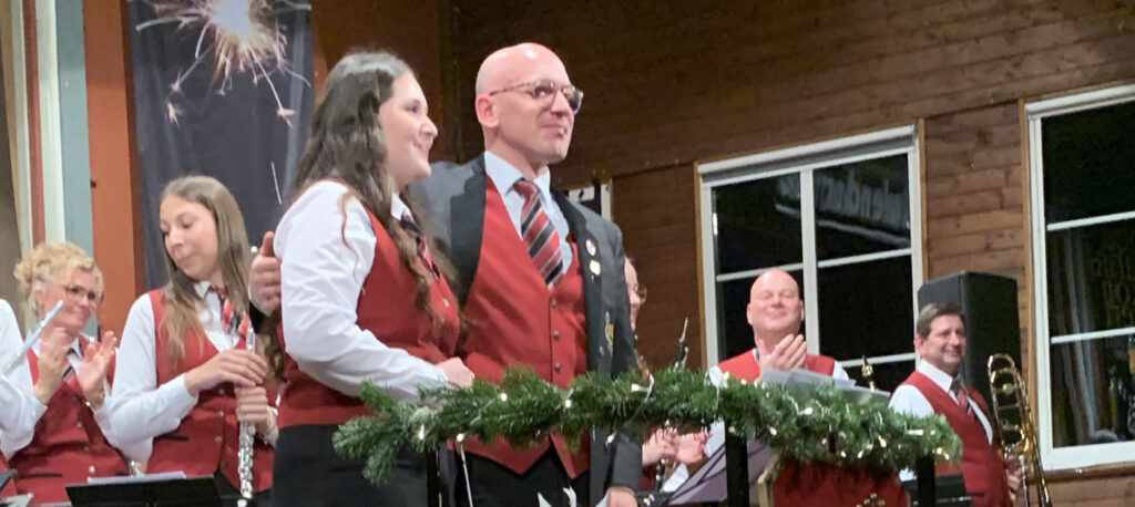 In einem kurzen Rückblick ging Matthias Dorner auf die prägenden Stationen des zurückliegenden Jahres ein, nämlich den Verlust „unseres“ Dirigenten Martin Rebmann sowie den Einzug ins neue Probelokal im Grundschulgebäude. Für Martin gab es in der Reutener Durlesbachhalle im Oktober ein großes Doppelkonzert mit dem Musikverein Reute-Gaisbeuren, an dem 110 Musiker mitwirkten. Und ganz im Sinne Martins habe man für die Tübinger Knochenmarkspendertdatei 6000 Euro an Spenden eingesammelt!