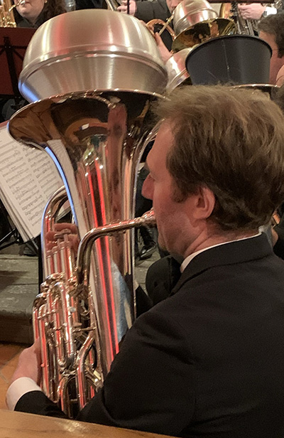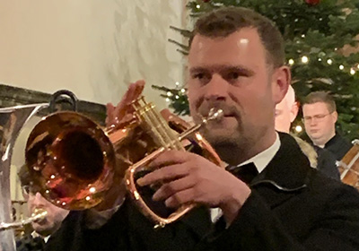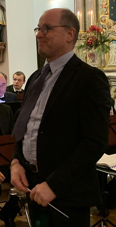 Harald Stumpp (Bild), Cornet und Sprecher, begrüßte die Gäste und stellte die Neuen vor. Er dankte Pfarrer Werner für die freundliche Unterstützung und freute sich auf die Einladung der Musiker zum Christbaumloben im Pfarrhaus nach Ende des Konzerts.