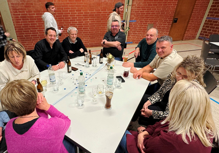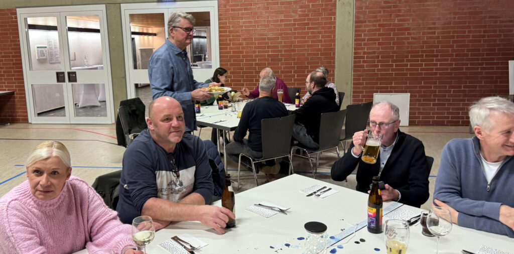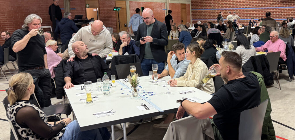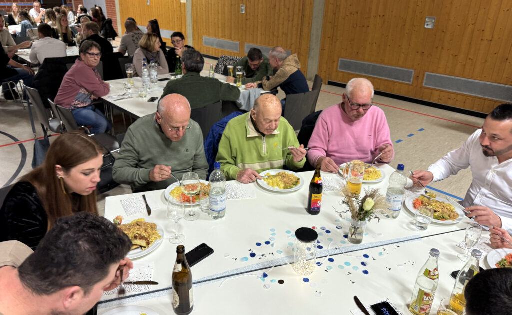 Diese Neujahrsfeier war erneut ein deutlicher Beleg dafür, dass so ein so großer Verein mit über 800 Mitgliedern nur dank des ehrenamtlichen Engagements vieler Mithelfender gut funktionieren kann. Alle Gäste waren zu einem Festmahl eingeladen worden. Eine lange Tafel mit herzhaften, schwäbischen Gerichten hatte schon traditionsgemäß Andreas Welte vom Vorstandsteam bestellt und zusammengestellt. Die Essensausgabe verlief aufgrund des erfahrenen Teams wieder recht flott. Auch an der Getränketheke wurde man schnell und freundlich bedient.
