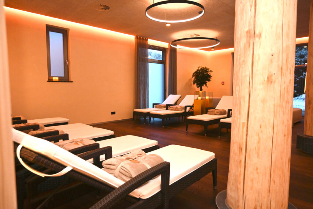 Herzstücke sind das WaldHaus, das SeeHaus und das gemütliche WaldHäusle – Rückzugsorte, die zum Abschalten und Auftanken einladen. Aus den früheren Medical-Wellness-Räumen entstand die großzügige WaldLounge, ein neuer zentraler Ruheraum mit viel Platz für Erholung.