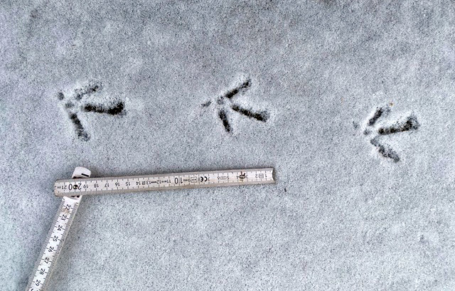 Diese Spuren im Schnee stammen von Daibers Buntfasan. Foto: Hans Daiber