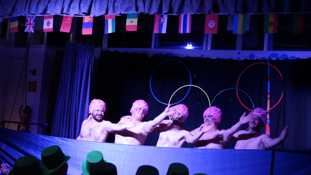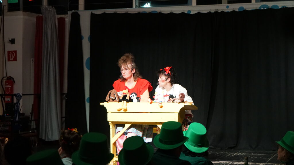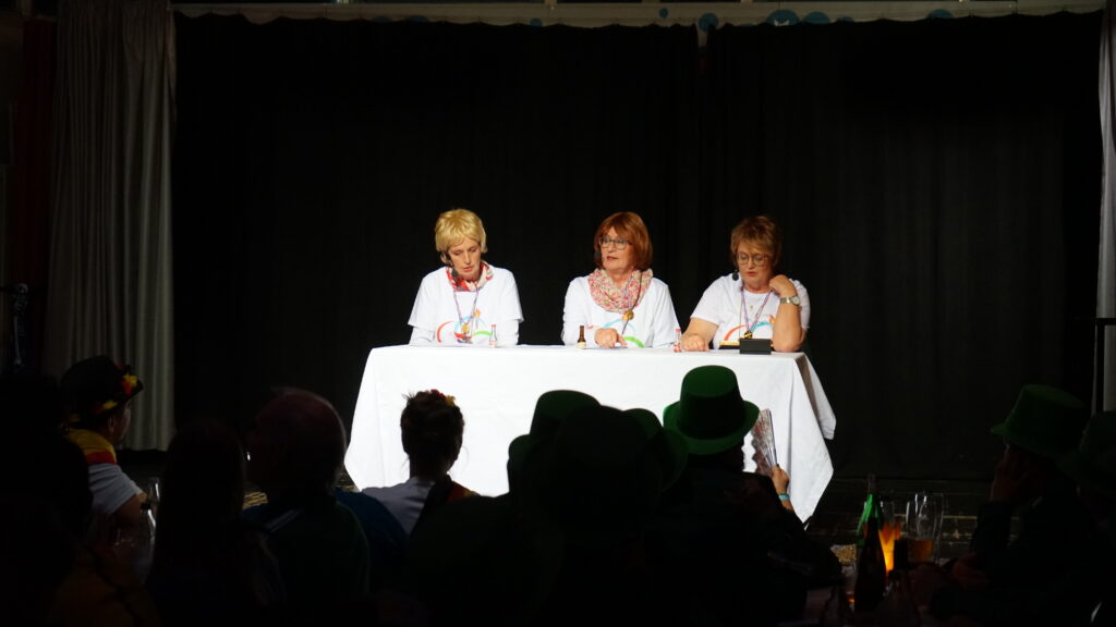 Es folgte ein Sketch im Stil der bekannten Fernsehsendung „Dingsda“: Moni und Ingrid, als Kinder verkleidet, erklärten auf humorvolle Weise olympische Begriffe – ein Programmpunkt, der für viele Lacher sorgte.