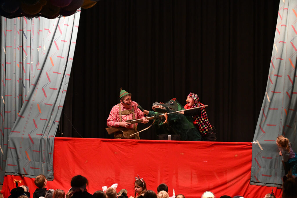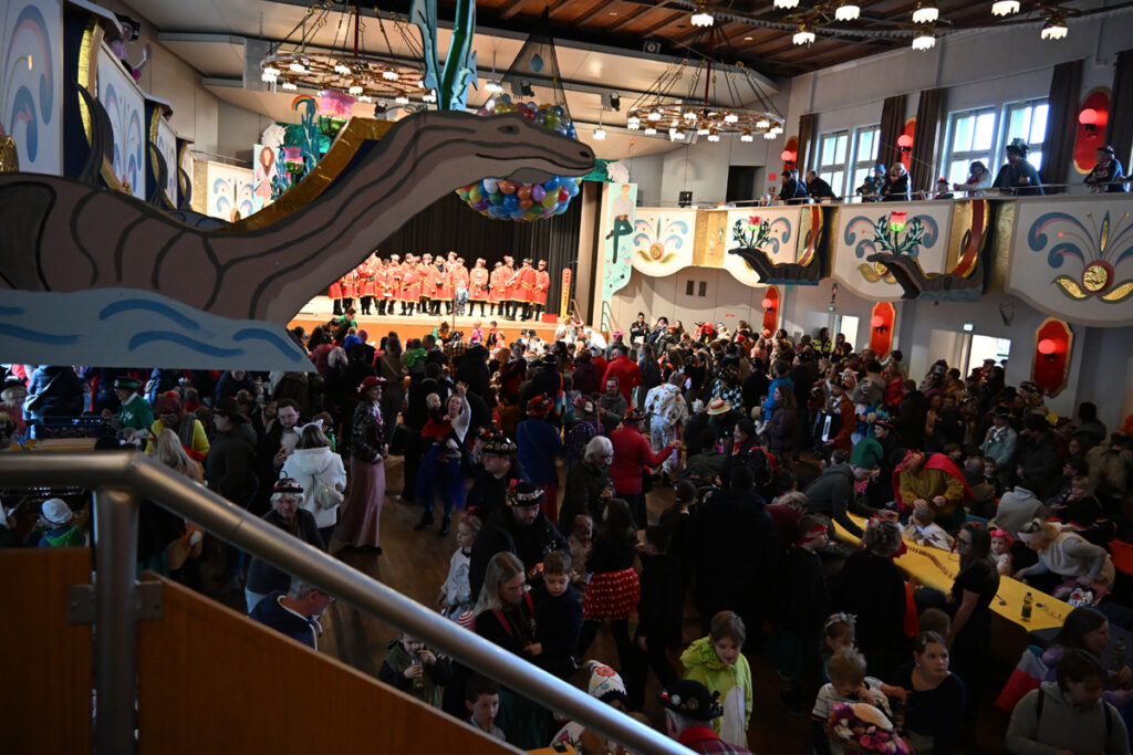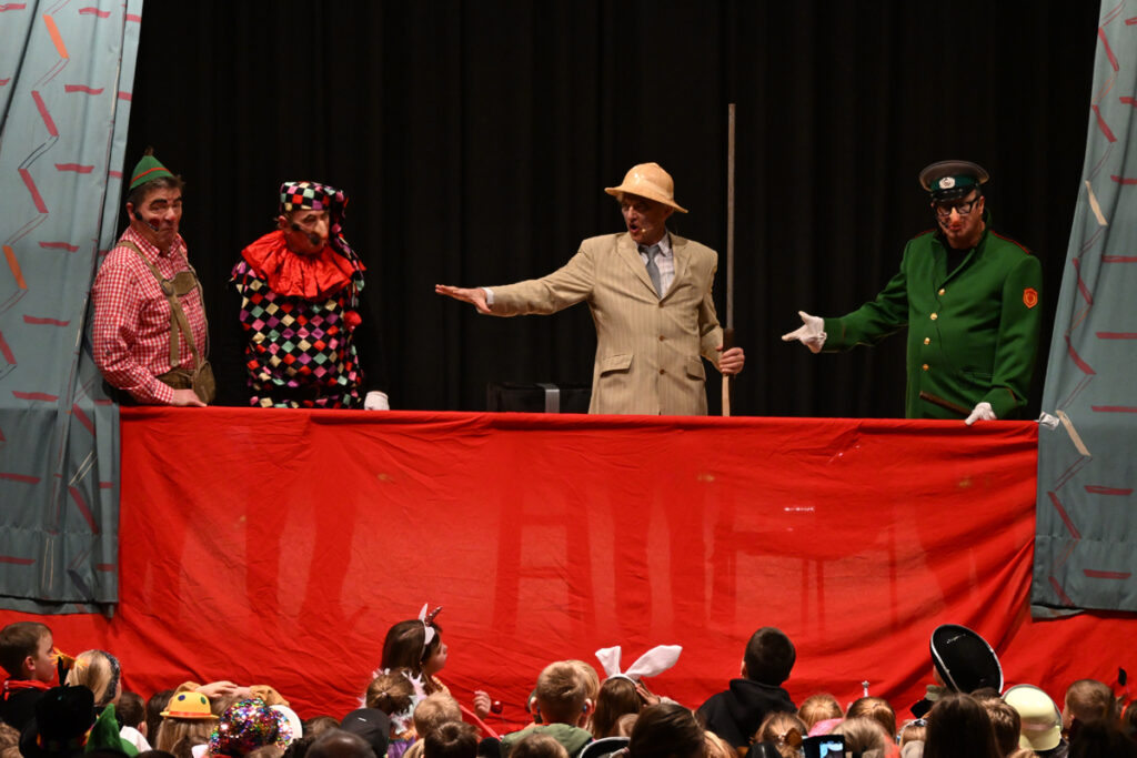 Höhepunkt des Kinderballs war einmal mehr das Kasperletheater. Stückeschreiber, Regisseur und Kasperledarsteller Roland Umbrecht hatte eine turbulente Großwildjagd auf ein entlaufenes Krokodil inszeniert. Das Krokodil (Martin Trautmann) stibitzte der Oma (Eva Heusohn-Linder) die Würstchen, ließ sie in Ohnmacht fallen und brachte den tollpatschigen Polizisten (Andy Hepp) sowie den Großwildjäger (Hans Ehinger) in der Falle selbst zu Fall. Am Ende fingen Kasper und Seppl (Bertram Hochdorfer) das Tier mit einem Netz – sehr zur Freude des jungen Publikums, das bis zum Schluss begeistert mitging.