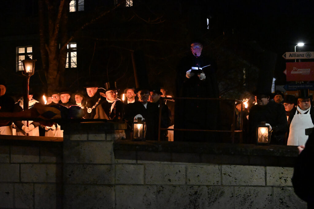 Bad Waldsee – Fasnetsdienstag am Abend. Waldsees Narren haben den Aschermittwoch vor Augen. Das Ende der Fasnet. Ein frühes, ja vorzeitiges, ein schmerzliches Ende. Punkt 19.00 Uhr setzt sich der Trauerzug für die verblichene Fasnet in Bewegung. Schmerzvoll bläst die Posaune ihr „O jerum“, während der Trommler den langsamen Takt vorgibt. Bei den obligatorischen Halten vor aktuellen und ehemaligen Wirtshäusern erklingt die traditionelle Frage: „Sind’r au scho im Dreikönig gwäa?“ – „Überall, bloß do noit“, antwortete die Trauergemeinde – wie es Brauch und Sitte vorgeben.