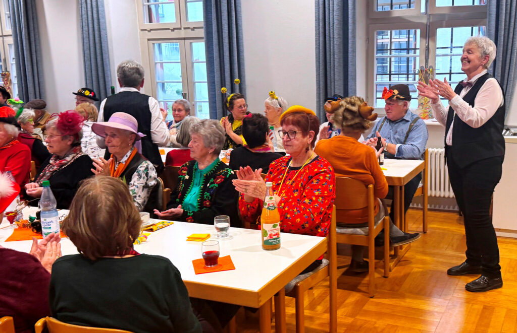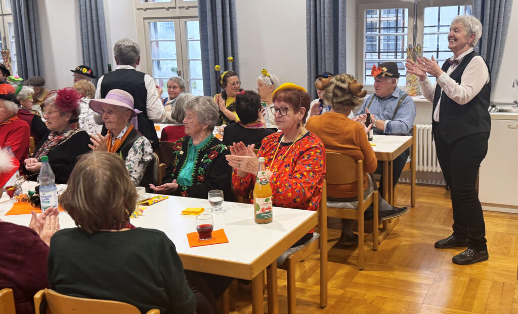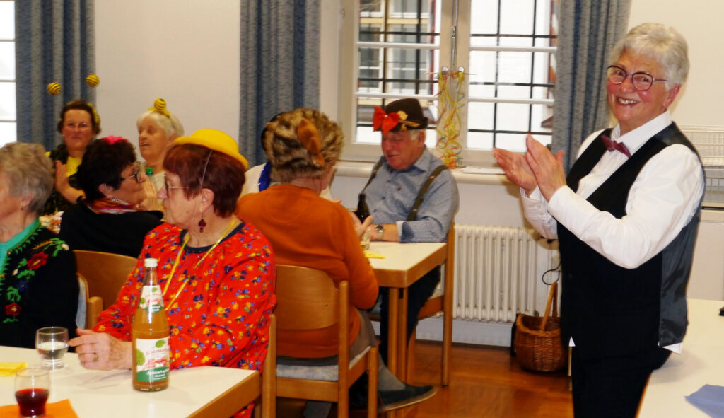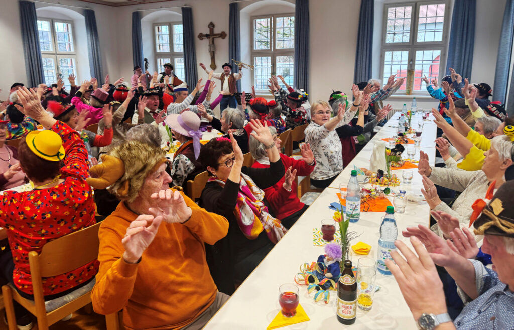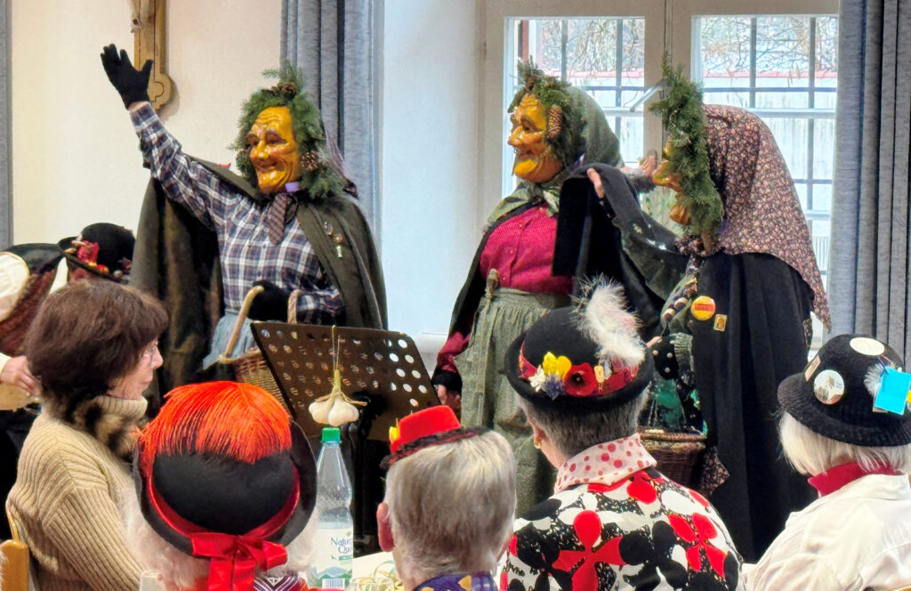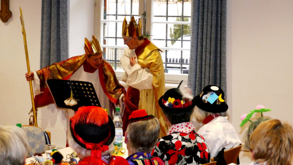 Haistergau – Am Mittwochnachmittag vor dem Gumpigen wird traditionell für eine große Seniorenschar aus dem Haistergau und auch aus der Kernstadt ein tolles, närrisches Unterhaltungsprogramm im Pfarrgemeindesaal des Klosterhofs geboten. Das ehrenamtlich engagierte Service-Team der Kirchengemeinde Haisterkirch mit Gertrud Härle-Ruther, Camilla Maucher, Marianne Ploil, Irmgard Ott und Christa Schmid hatte den Pfarrgemeindesaal wunderschön geschmückt. Das Team hatte wieder ein treffendes, närrisches Programm zusammengestellt zur Freude der anwesenden über 80 Seniorinnen und Senioren.