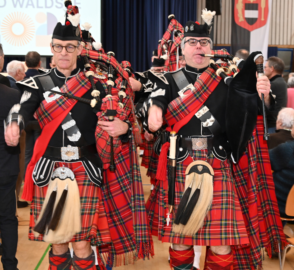 Den musikalischen Ton gab die Stadtkapelle unter der Leitung ihres Dirigenten Joachim Weiß vor. Den Anfang des Empfangs machten die Highland-Pipes and Drums mit ihrem martialischen Einmarsch und prägnanter schottischer Dudelsack-Musik.