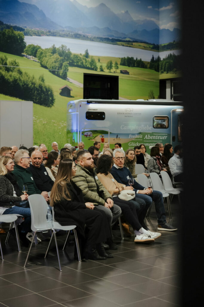 Highlight des Abends war die eindrucksvolle Präsentation des zukunftsweisenden Projekts „EHC goes forward“ durch den Gastgeber, Heiko Tichanow vom Erwin Hymer Center.