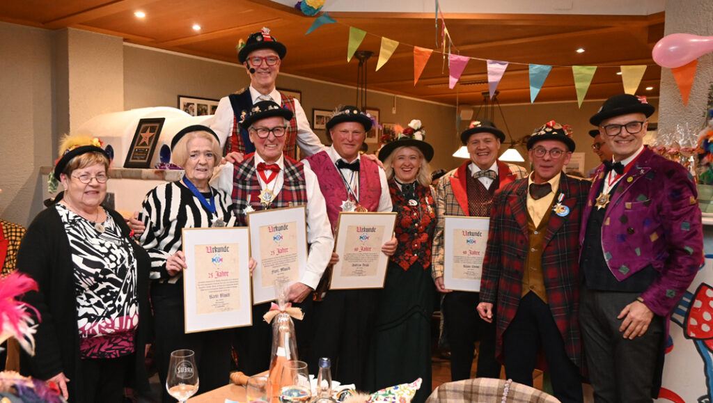 Weitere Auszeichnungen für langjährige Treue zum Völkle erhielten Hansjörg Jedelhauser für 50 Jahre, Ehrenzunftmeister Franz Mosch, Klaus „Vetter“ Christ, Vizekönig Andreas Hepp, Michael „Mülli“ Müller und Susanne Wirth für 40 Jahre. Bianca Reuter-Fischer erhielt für ihre Verdienste den Sammlerorden in Silber, Jürgen Heiss in Gold.