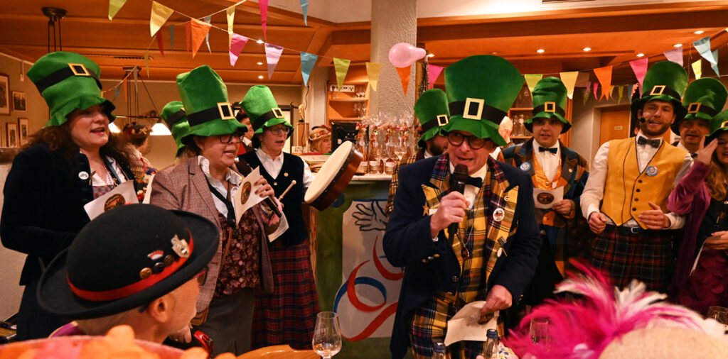 Die Aufgenommenen – Liane Becker, Bernadette Behr, Lisa Fähndrich, Andreas Fussenegger, Susanne Hoffmann, Nikolai Kibler, Stefan Kopf, Philipp Kronen, Markus Nold und Silke Straßner – dankten mit einem flotten Lied. Auch die Probesammler des Jahrgangs 2026, Yvonne Bachhofer und Mario Albersmeier, stellten ihr Gesangstalent unter Beweis. Stimmkräftig gecoacht und unterstützt von Siggi Schmidinger in der Sammler-Singgruppe.