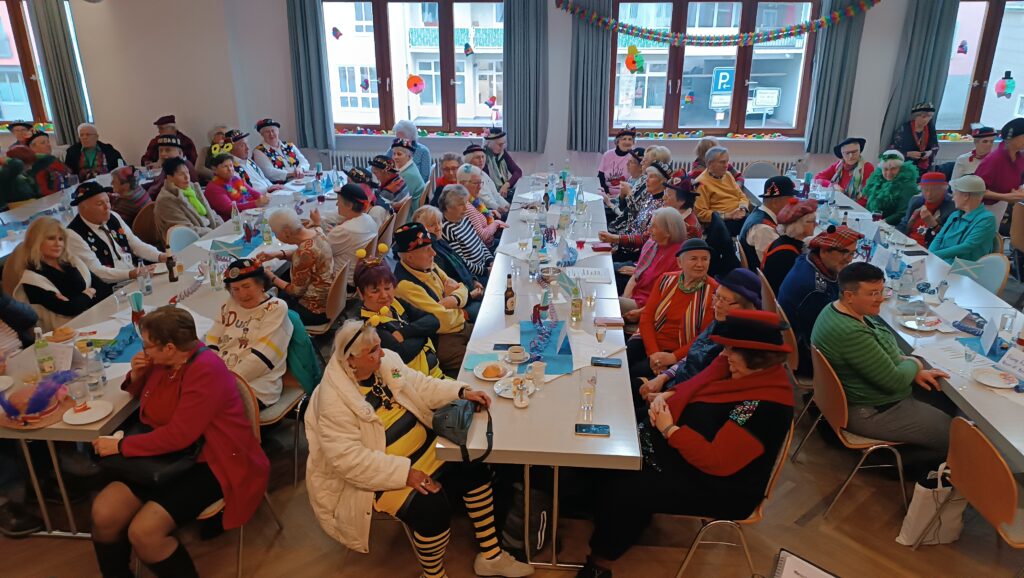Pünktlich zum Einlass um 13.00 Uhr war der Ansturm auf die guten Plätze schon groß. Herzlich begrüßt wurden die Seniorinnen und Senioren von der Seniorentreffleitung Ursula Hirsch und Claudia Frick sowie ihren Mitstreiterinnen. Für die vielen Ü-60 Gäste und Vertreter von Kirche, Gemeinde und den sozialen Einrichtungen gab es ein Programm voll mit Musik, Witz und Parodien. Während Olaf Kraus die Gäste mit seiner Drehorgel auf den Nachmittag einstimmte, begann um 14.00 Uhr das Programm.