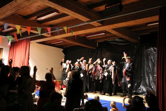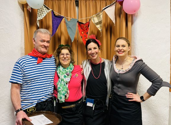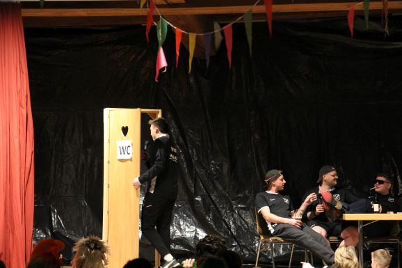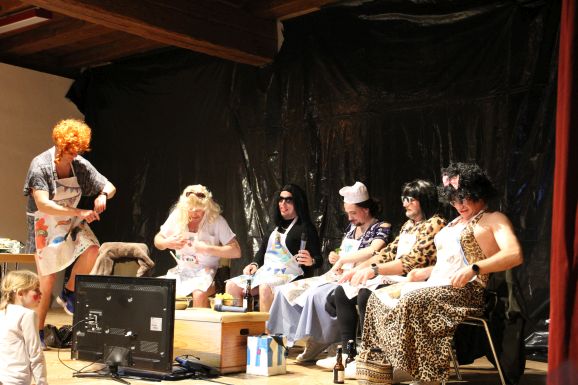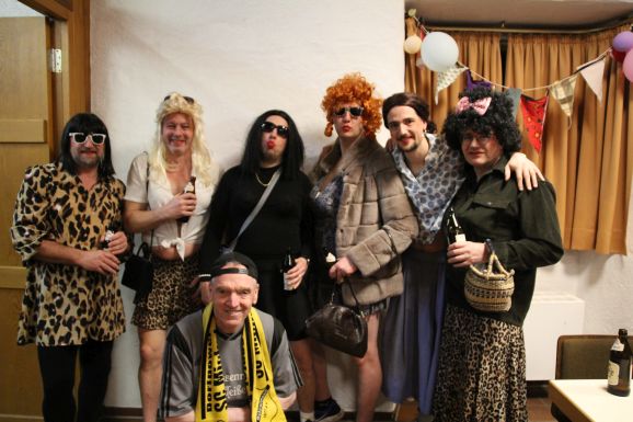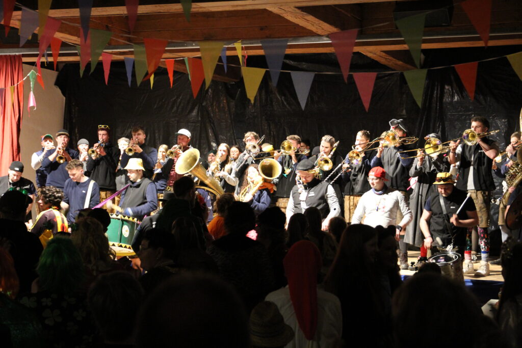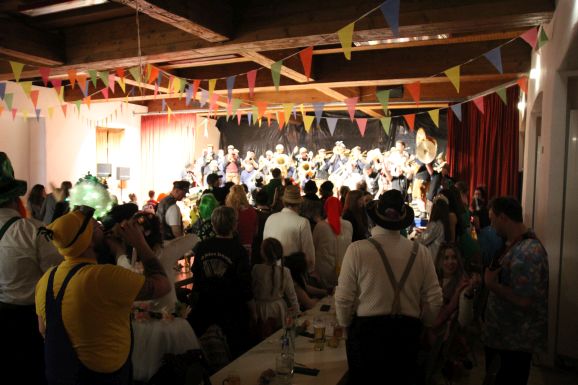 Nach der Pause, in der die Gäste bestens versorgt wurden, heizte die Lumpenkapelle Leupolz die Stimmung erneut kräftig an und überreichte anlässlich ihres 40-jährigen Jubiläums ein Geschenk. Mit einer sportlichen Choreografie setzte „Fit for Fun“ ein weiteres Highlight. Anschließend zeigte die AH in ihrem Sketch ihre weibliche Seite und veranstaltete einen humorvollen Mädelsabend.