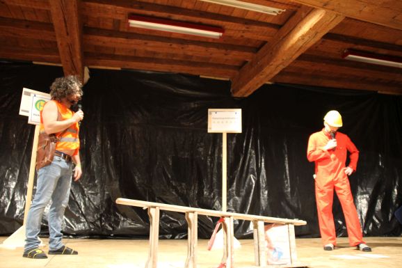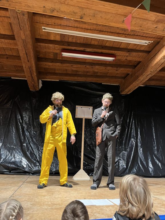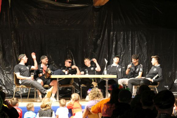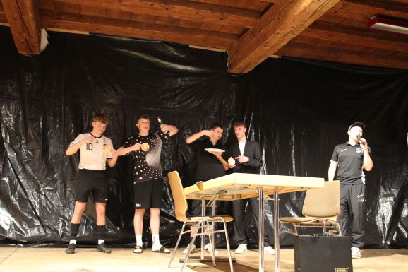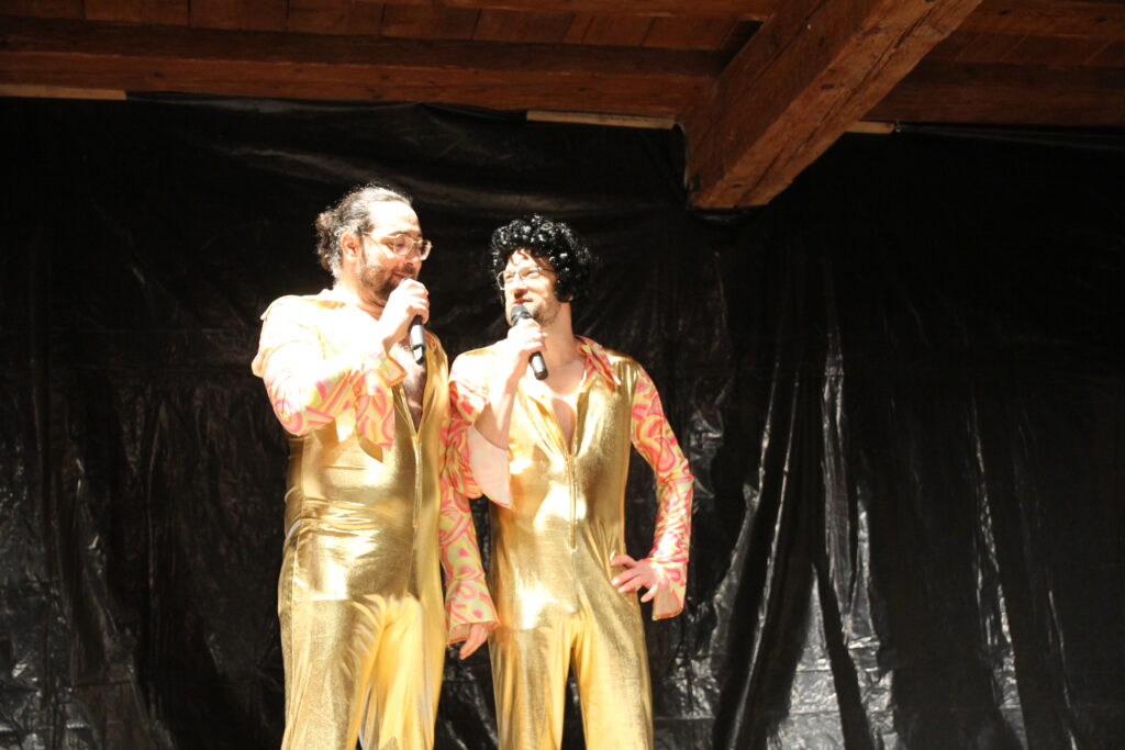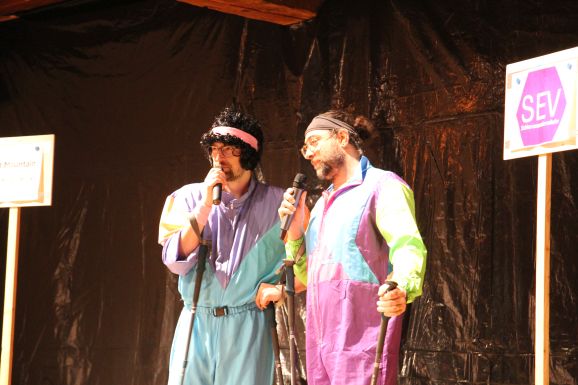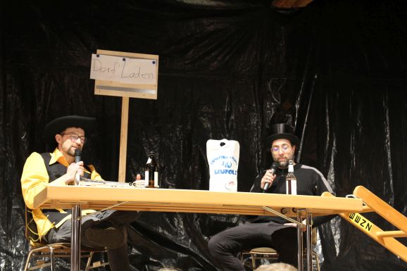 Bereits zum vierten Mal führten die beiden Moderatoren Alexander „Wiese“ Wiest und Michael „Mike“ Romer mit viel Witz und Charme durch das abwechslungsreiche Programm. In unterschiedlichen Rollen und als dorfbekannte Charaktere berichteten sie humorvoll über das Vereins- und Dorfgeschehen des vergangenen Jahres.