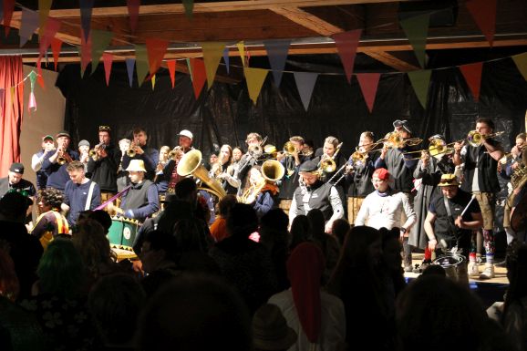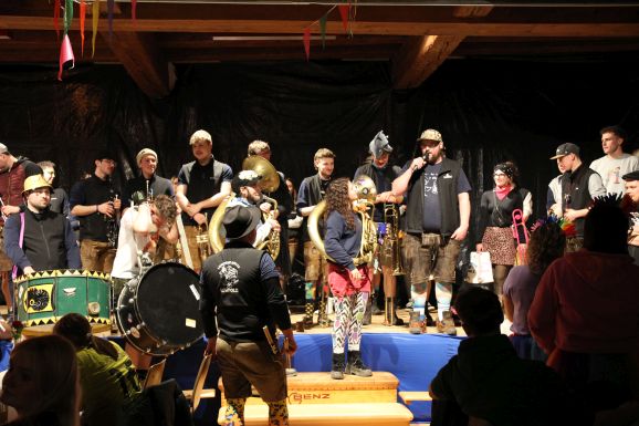 Traditionell wurde der Abend lautstark von der Lumpenkapelle Leupolz eröffnet. Spätestens nach den bekannten Narrenrufen war das Publikum bestens auf den bevorstehenden Abend eingestimmt.