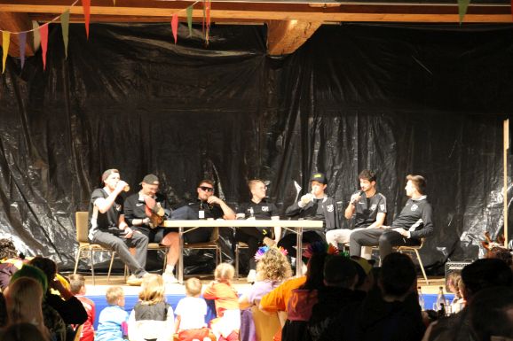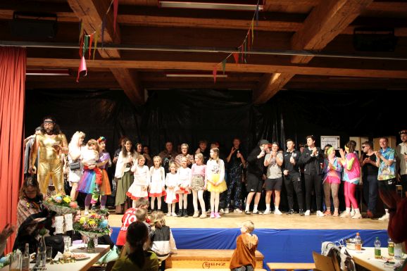 Die Garde, mit 19 Kindern die größte Gruppe des Abends und unter der Leitung von Miriam Kügele, Melanie Romer und Anja Braig, wusste das Publikum zu begeistern. Auch die Jugendabteilung sorgte mit ihrer Spielersuche für zahlreiche Lacher. Beim Programmpunkt der aktiven Mannschaft wurde das Publikum aktiv eingebunden: Angelehnt an die Fernsehsendung „X-Factor“ musste nach einzelnen Szenen entschieden werden, ob diese real oder erfunden waren.