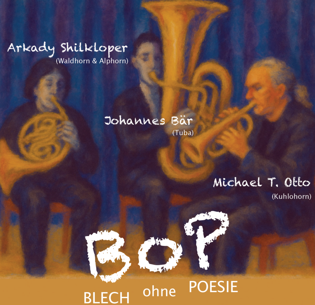 BOP – das ist Blech Ohne Poesie. HIer haben sich drei außergewöhnliche Blechbläser zu einem neuen Klangabenteuer zusammengefunden: Arkady Shilkloper, Michael T. Otto und Johannes Bär. Alle drei sind international renommierte Jazzmusiker und vielseitige Multiinstrumentalisten, die sich zwischen Jazz, Volksmusik und freier Improvisation bewegen. Das Trio spielt überwiegend Eigenkompositionen, ergänzt durch eigenwillige Bearbeitungen traditioneller Volkslieder. Dabei entsteht Musik, die virtuos und humorvoll zugleich ist. BLECH ohne POESIE ist ein Trio, frei von Genregrenzen, getragen von Spiellust, Neugier und tiefer musikalischer Verbundenheit.