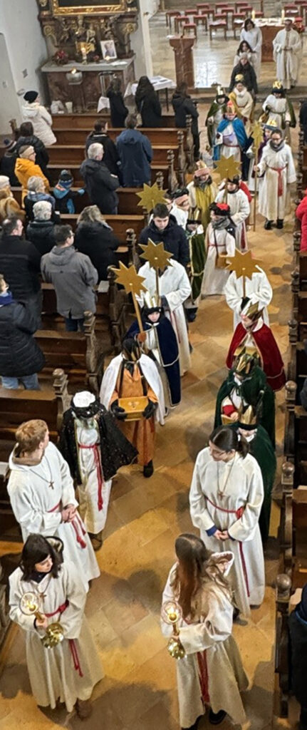 Die Sternsingergruppen machten sich gleich nach dem Gottesdienst auf den Weg, um in all den Weilern und Ortschaften hier den Segen zu den Menschen zu bringen. Bei den frostigen Temperaturen war es dieses Jahr eine besondere Herausforderung, die aber tapfer bewältigt wurde.