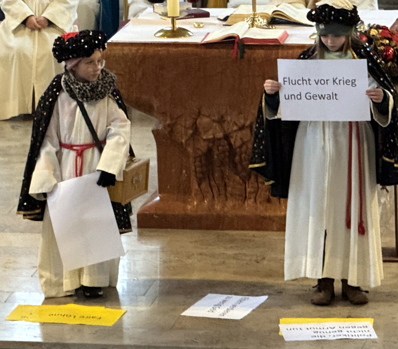 Sternsinger tragen die Fürbitten vor.
