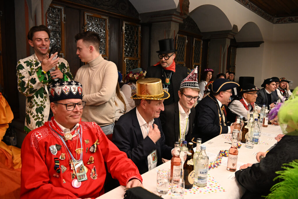 Bad Waldsee – Das Narrenrechtabholen im altehrwürdigen Ratssaal zu Waldsee hat schon viele Großkopferte gesehen. Aber an eine derartige Promi-Dichte wie gestern Abend (11.2.) können sich selbst Alteingesessene nicht erinnern: dass die beiden MP-Aspiranten am „Mittwoch vor d’r Fasnet“ nach Bad Waldsee eilen würden, davon gingen die politischen Kaffeesatzleser aus. Aber dass es einen linkssozialistischen Preußen ins Hochamt der oberschwäbischen Fasnet verschlagen würde, damit hatte keiner gerechnet: Ja, er war da, der rote Gregor, der Gysi aus dem Osten. Weiter wurden gesehen: Raimund Haser MdL, Agnieszka Brugger MdB, Petra Krebs MdL, Regierungspräsident Klaus Tappeser, Alt-MP und Ex-EU-Kommissar Günther Oettinger, ein ganz treuer Anhänger des Waldseer Brauchtums, FDP-Mann Dr. Hans-Ulrich Rülke und Dr. Danyal Bayaz, grüner Hüter der Landesfinanzen. Von der heimischen Prominenz seien genannt: Roland Haag, seines Zeichens VSAN-Präsident (der in dieser Funktion am Morgen in Stuttgart dem noch amtierenden MP seine Aufwartung gemacht hatte), Prof. Rudolf Forcher, 32 Jahre lang Herrscher gewesen im historischen Waldseer Rathaus, Gerda Hymer, Polizeipräsident Uwe Stürmer … Die Aufzählung erhebt nicht den Anspruch auf Vollzähligkeit. Unser Reporter „Erre“ Linder war mitten unter ihnen. Er hat schöne Bilder heimgebracht und diese Worte:
