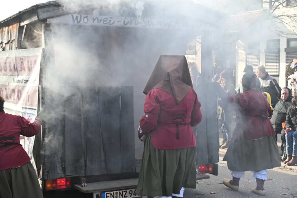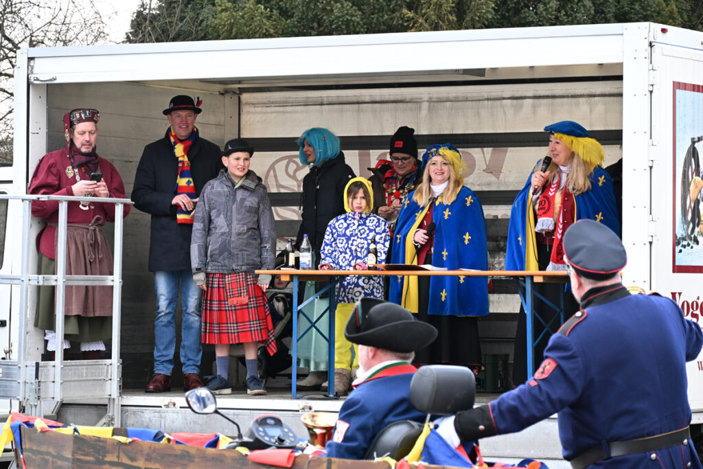Währenddessen genossen Oberbürgermeister Henne samt Familie, Gildemeisterin Claudia Schmidt und Präsidentin Julia Schuster den Umzug auf dem Tribünenwagen aus. Lautstark wurden alle Narrenrufe skandiert und viel Beifall erhielten die Darbietungen der Gruppen. Echte Narren lassen sich bekanntlich weder von Kälte noch von steifen Zehen die Laune verderben.