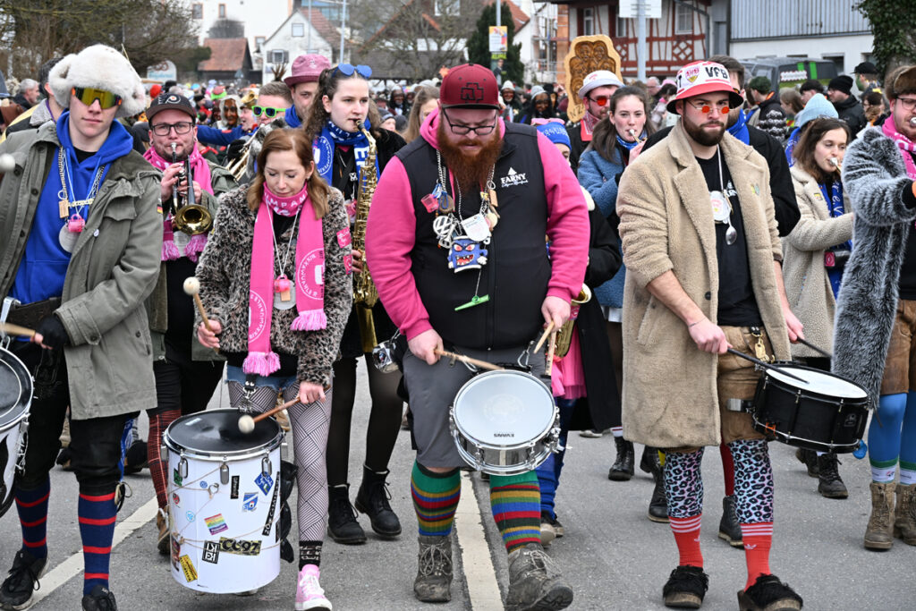 Nicht weniger als 70 Gruppen zogen durch die Straßen und präsentierten die beeindruckende Maskenvielfalt der Zünfte im ANR. Von furchterregend bis augenzwinkernd – die Larven hatten einiges zu erzählen, auch wenn sie selbst eisern schwiegen. Begleitet wurden sie von einer ganzen Armada an Musikgruppen, deren Klänge so kraftvoll durch Reute hallten, dass man kurz Sorge um den altehrwürdigen Kirchturm hatte. Augenzeugen berichten, er habe verdächtig mitgewackelt – vermutlich vor Begeisterung.