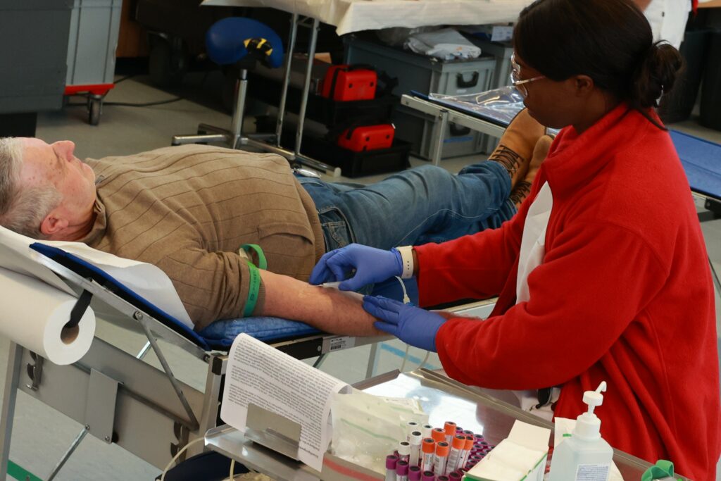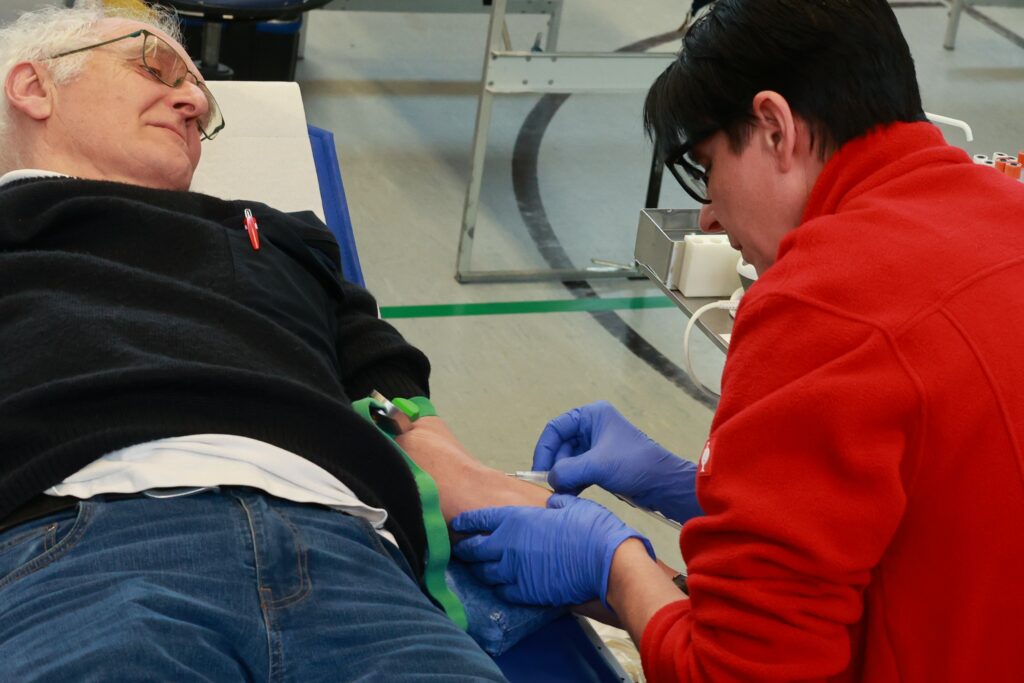 Vor der eigentlichen Spende standen wie gewohnt ein kurzes Arztgespräch und das Ausfüllen eines Gesundheitsfragebogens an. Das führte zu zwölf Rückstellungen. Im Vorraum sorgte das eingespielte Registrierungsteam für einen reibungslosen Ablauf, so dass die Wartezeiten kurz blieben. Für die Blutabnahme selbst war das erfahrene Team des Blutspendedienstes Ulm im Einsatz, das mit ruhiger Hand und viel Routine für Sicherheit und Vertrauen sorgte.