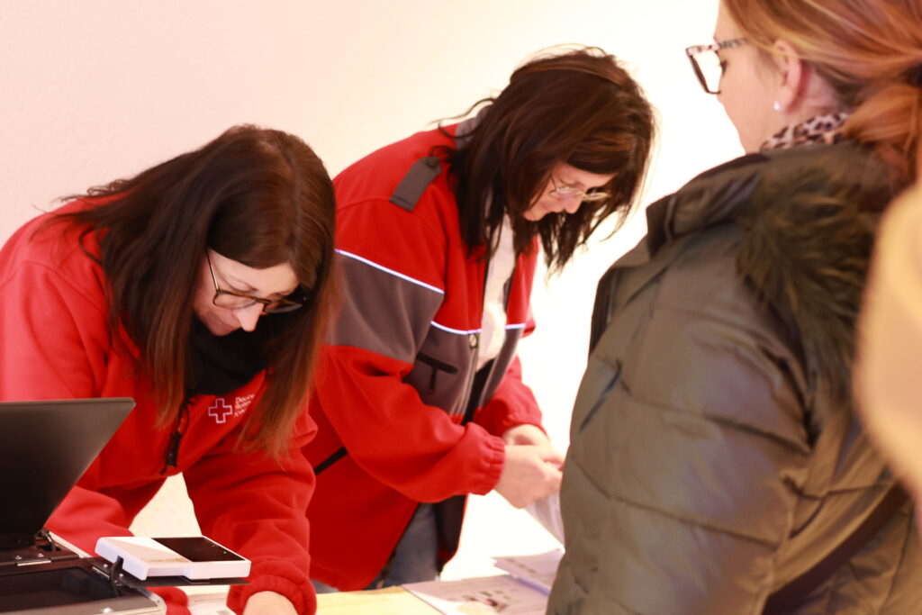 Da die Seibranzer Halle derzeit renoviert wird, wich das Deutsche Rote Kreuz (DRK) Seibranz für seine jüngste Blutspendenaktion am Freitagmittag (6.2.) in die Halle nach Hauerz aus. Eingeladen hatte Christa Müller-Angele vom DRK-Ortsverband Seibranz. Schon gleich zu Beginn um 14.30 Uhr war der Parkplatz gut gefüllt – viele Spenderinnen und Spender kommen seit Jahren routinemäßig und tragen so regelmäßig zum wichtigen Blutvorrat bei.