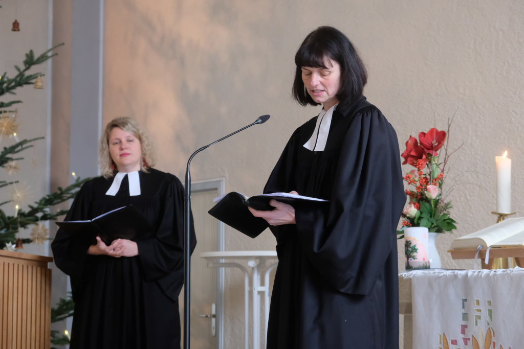 Nach dem Einzug der alten und neuen Kirchengemeinderätinnen gemeinsam mit den beiden Pfarrerinnen sagte Silke Kuczera in ihrer Begrüßung der Gemeinde: „Unsere Kirchengemeinde ist lebendig, weil unterschiedliche Menschen auf so vielfältige Weise ihre Gaben einbringen und so die gute Nachricht – dass Gott Licht und Liebe ist – weitergeben. Dazu gehört auch die Aufgabe, die Gemeinde zu leiten, Verantwortung zu übernehmen. Zwei Kirchengemeinderätinnen werden wir heute verabschieden müssen und neun Kirchengemeinderätinnen und Kirchengemeinderäte dürfen wir wieder und neu in ihr Amt einführen.“
