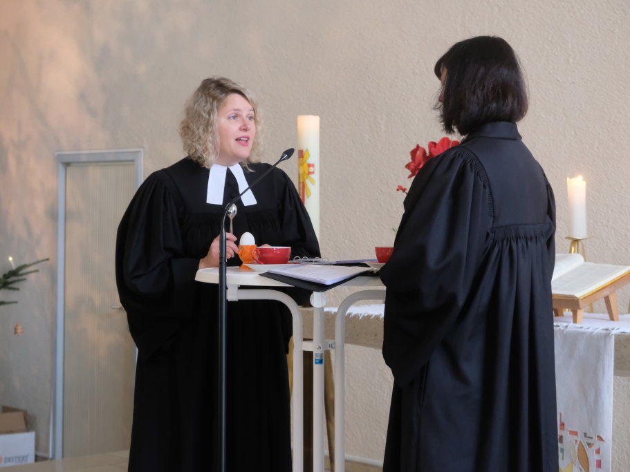 Pfarrerin Kuczera dankte den beiden ausscheidenden Räten Christine Heine und Franziska Nikolay. Bevor sie den beiden ihr Abschiedsgeschenk übergab, hob sie die herausragende Eigenschaften hervor, die beide eingebracht hatten: Die drei K´s – Kritisch-konstruktives Korrektiv – und das Erkennen der eigenen Grenzen. Dass diese Eigenschaften beim neuen KGR nicht verloren gehen mögen, darauf hoffen die beiden Pfarrerinnen.