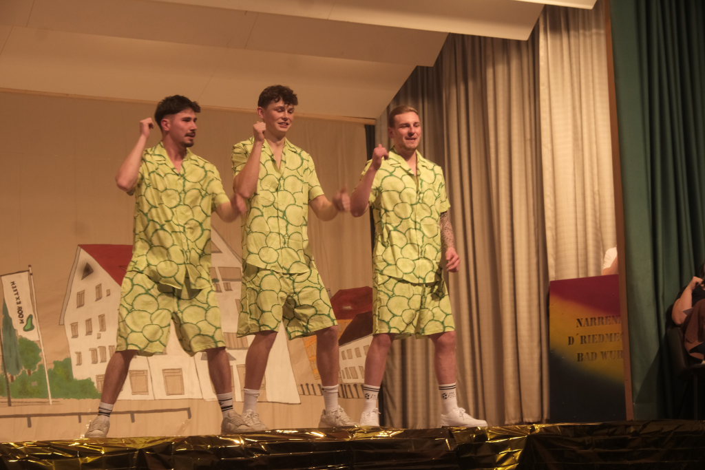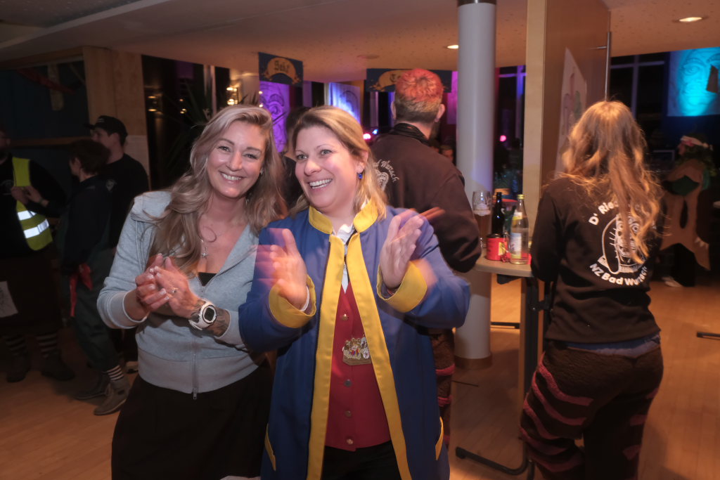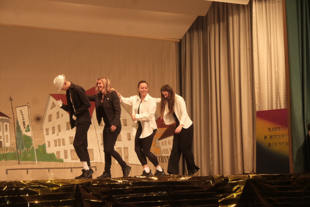 Mit den Zipfelklatschern servierte die Narrenzunft den Feierabend-Gaudi Besuchern noch einmal einen „Spezialtanz“, nachdem das Moderatoren-Duo und Zunftmeister Dominic Neher sich zunächst bei den Sponsoren bedankt hatte und noch einmal für die „Riedbeben“ getaufte Jubiläumsfeier am kommenden Sonntag die Werbetrommel gerührt hatten. Nach einem erneuten Auftritt der Vollgas-Bänd war es für die Besucher an der Zeit, selbst das Tanzbein zu schwingen und/oder die Angebote der Bar zu inspizieren.