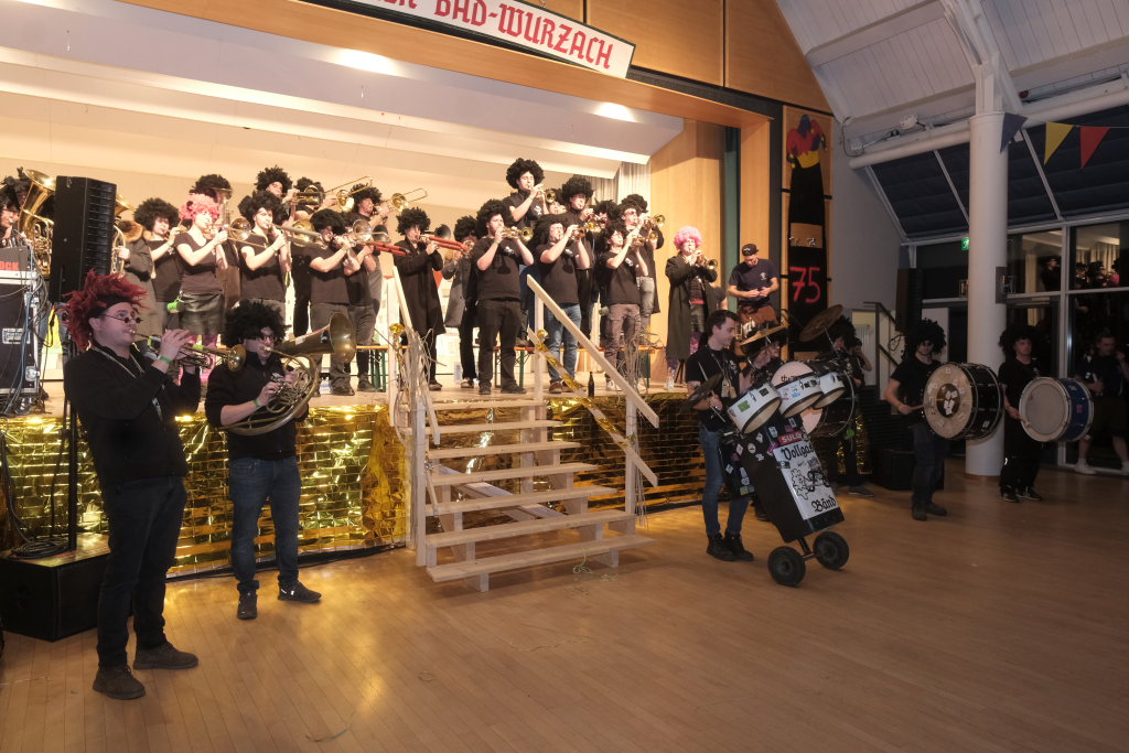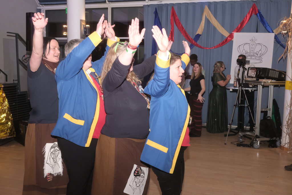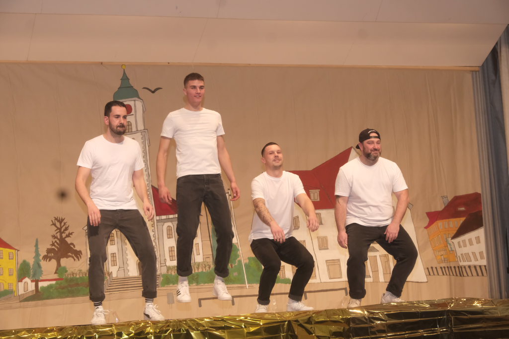 Den zweiten Teil nach einer gut genutzten Tanzpause eröffneten die Tänzerinnen und Tänzer der Zunft mit dem „Jahrzehnte-Tanz“, bei dem die einzelnen Gruppen aus jedem Jahrzehnt die damals aktuellen Tanzmoves präsentierten wie etwa den Disco der 70er oder etwa den von Michael Jackson erfundenen Moonwalk in den 80ern. Bis hin zu den Corona-Maskentragenden 2020ern. Zum großen Finale standen dann die Einzel-Gruppen gemeinsam auf der Bühne und boten dem begeisterten Publikum ein Finale á la Garde.
