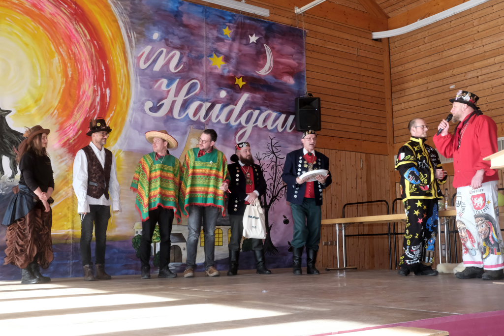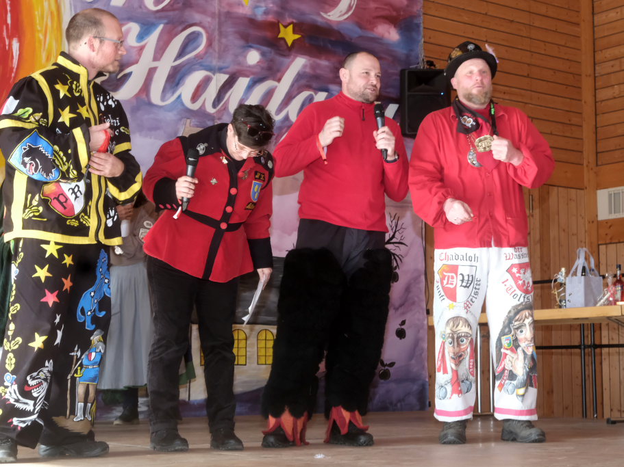 Haidgau – Die Haidgauer Chadalohs haben im vergangenen Jahr ihren 50er gefeiert. Deswegen fiel der diesjährige Narrensprung mit 48 Umzugspositionen kleiner aus als der des Vorjahres, weswegen es auch beim Zunftmeisterempfang – mit Ausnahme vielleicht bei den Ehrungen verdienter Hästräger durch das ANR-Präsidium – familiär und gemütlich zuging.