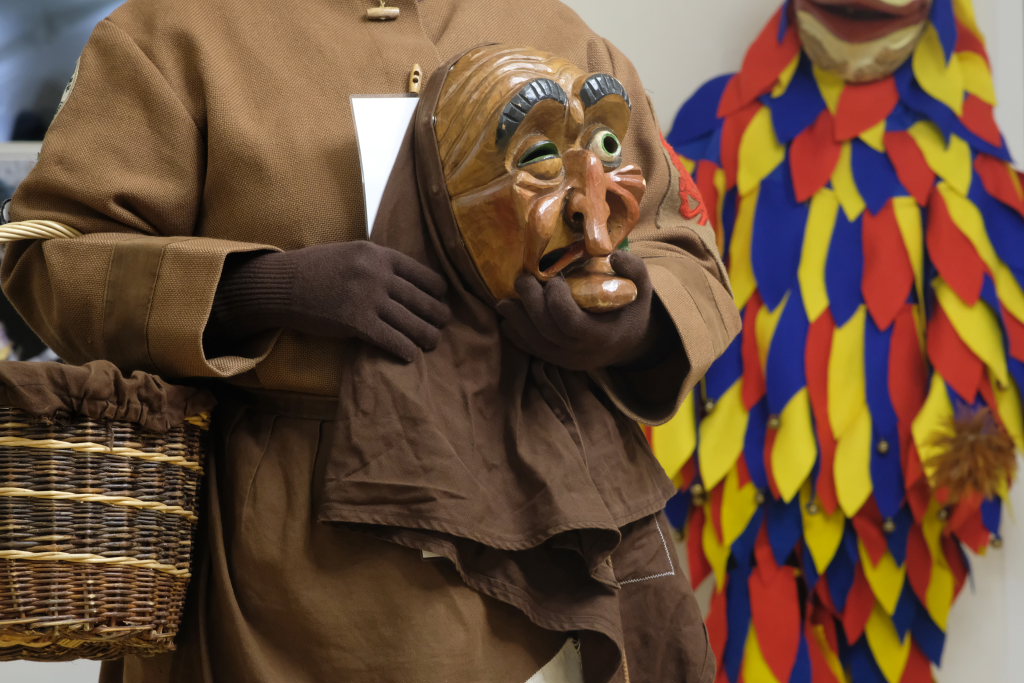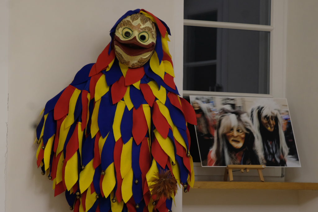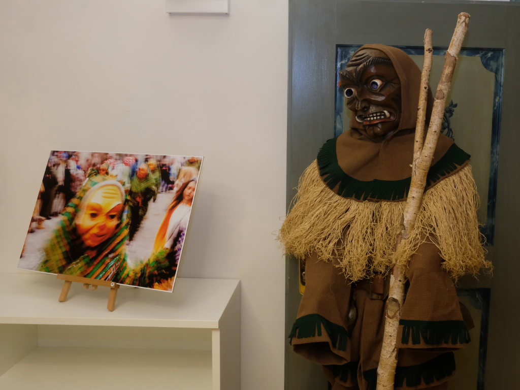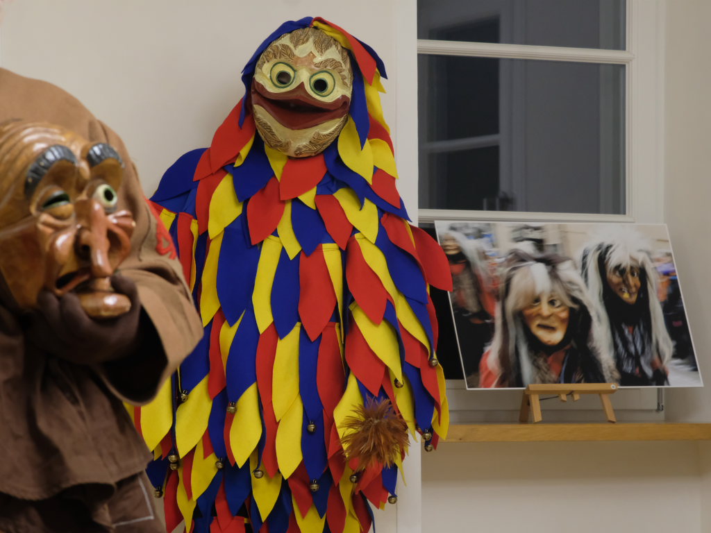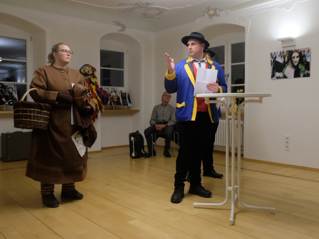 Viel Zeit investiert hatten auch die Mitglieder Kathrin Neher, Bastian Tetzlaff und Niki Riss des Zunftrates der Riedmeckeler, die der Ausstellungseröffnung mit einigen Originalhäsern, in denen Schaufensterpuppen steckten, ein besonderes Flair verlieh. Die Zunft feiert in diesem Jahr ihr 75-jähriges Jubiläum. Daher präsentierten die Zunftmitglieder als besondere Zugabe die Sagen, die hinter den einzelnen Figuren Riedmeckeler, Schnepfle, Moorweible, Muetes, der Einzelmaske der Burgfrau und dem Till Eulenspiegel ähnlichen Hoppeditz stecken, die alljährlich in der Fasnet unterwegs sind.