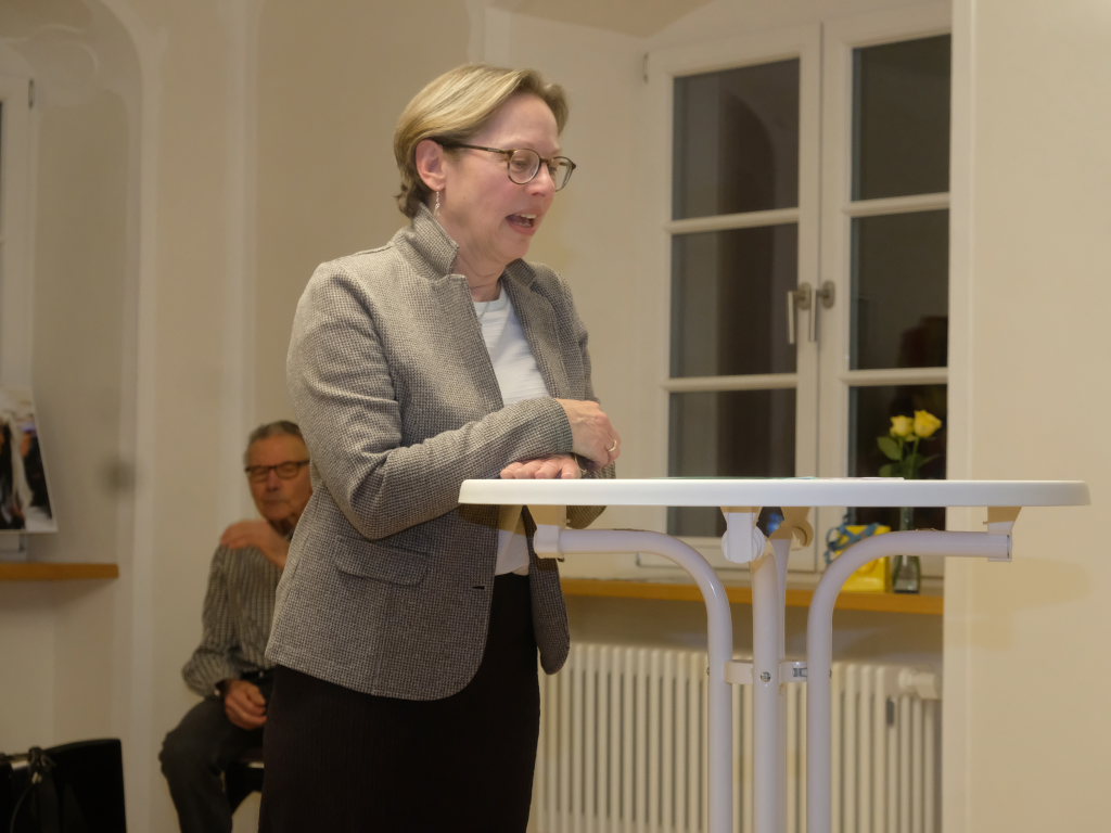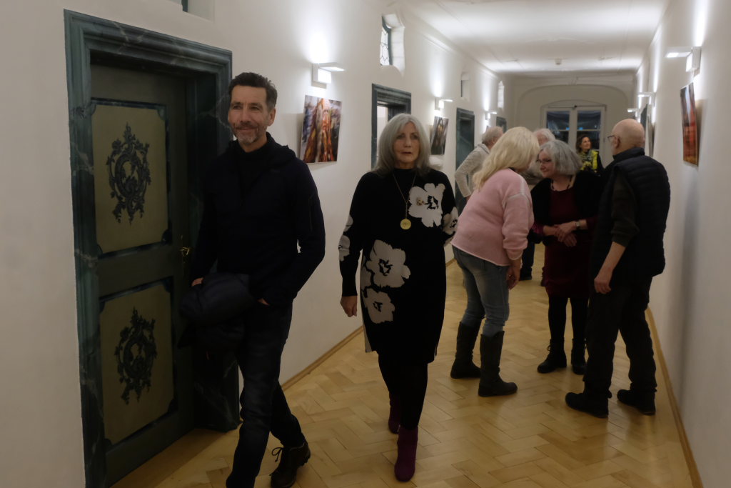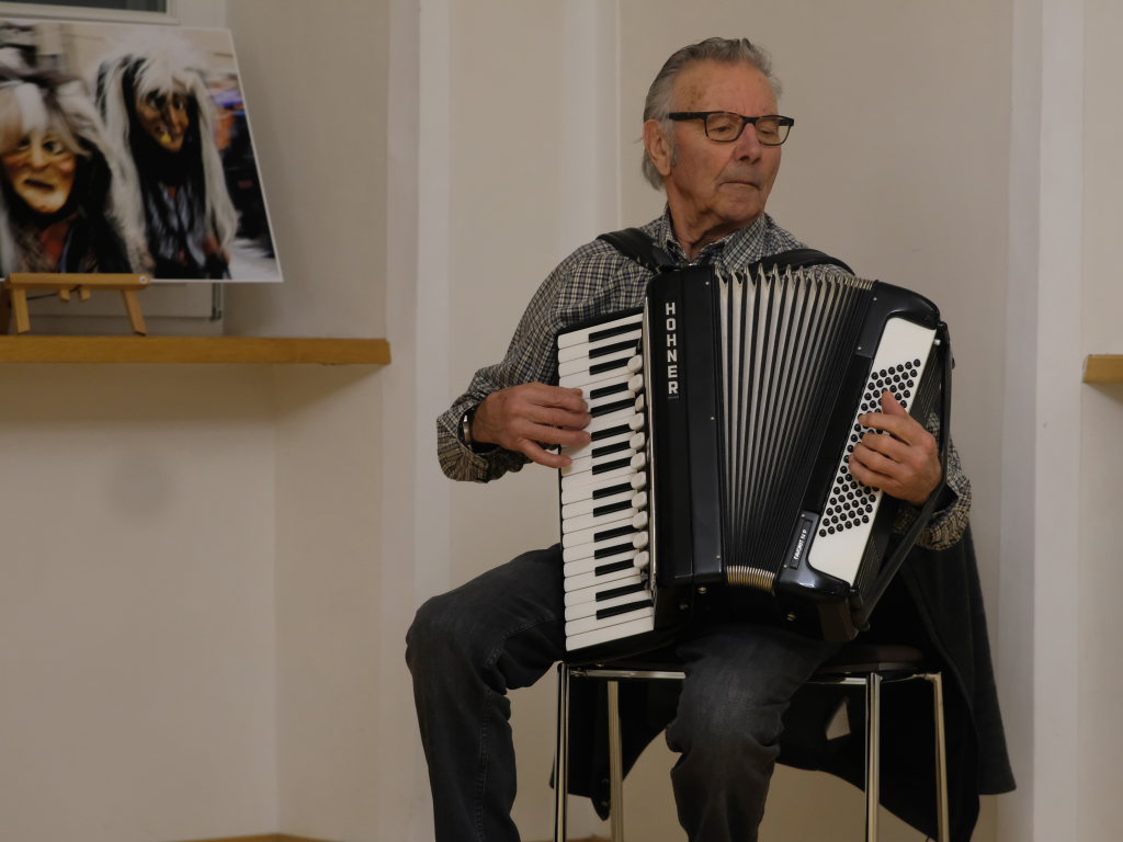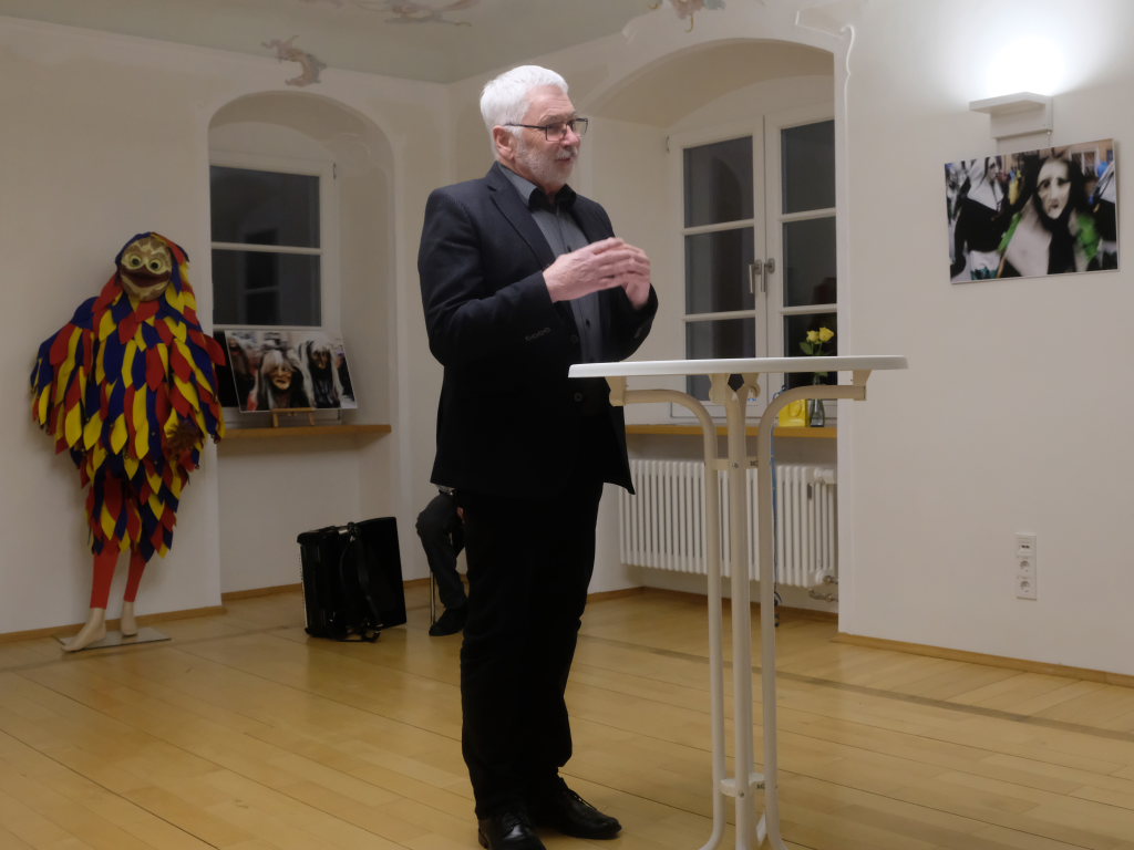 Doris Schäfer, die gemeinsam mit Christel Linge die Ausstellungen in der Stadtbücherei organisiert, begrüßte die Vernissage-Besucher im Namen der Galerie, während Klaus Schütt als Stellvertreter für Bürgermeisterin Alexandra Scherer im Namen der Stadt die „fünfte Jahreszeit“ einläutete. Philipp Kohler untermalte die Vernissage mit Stimmungsmusik auf seinem Akkordeon.