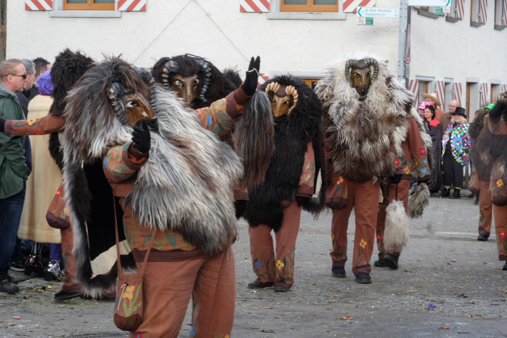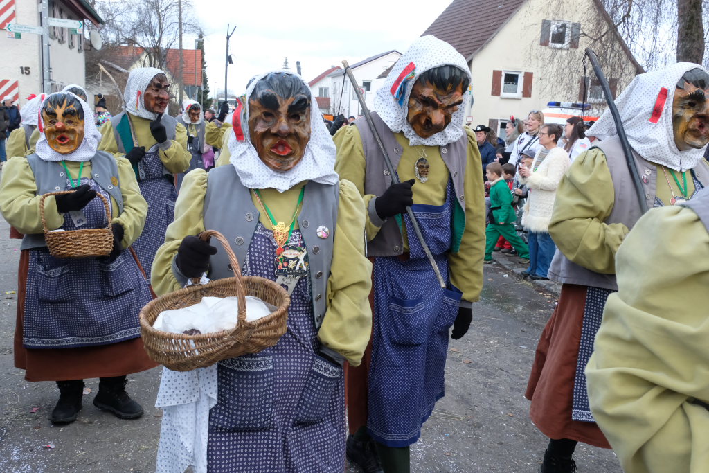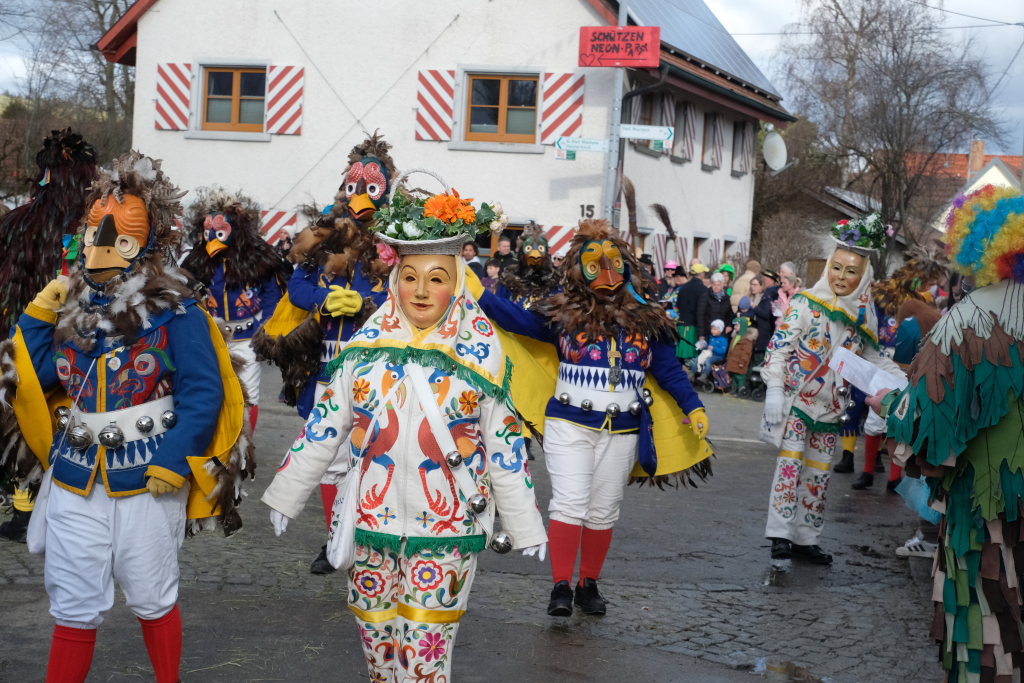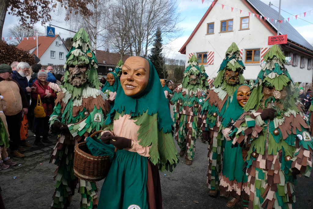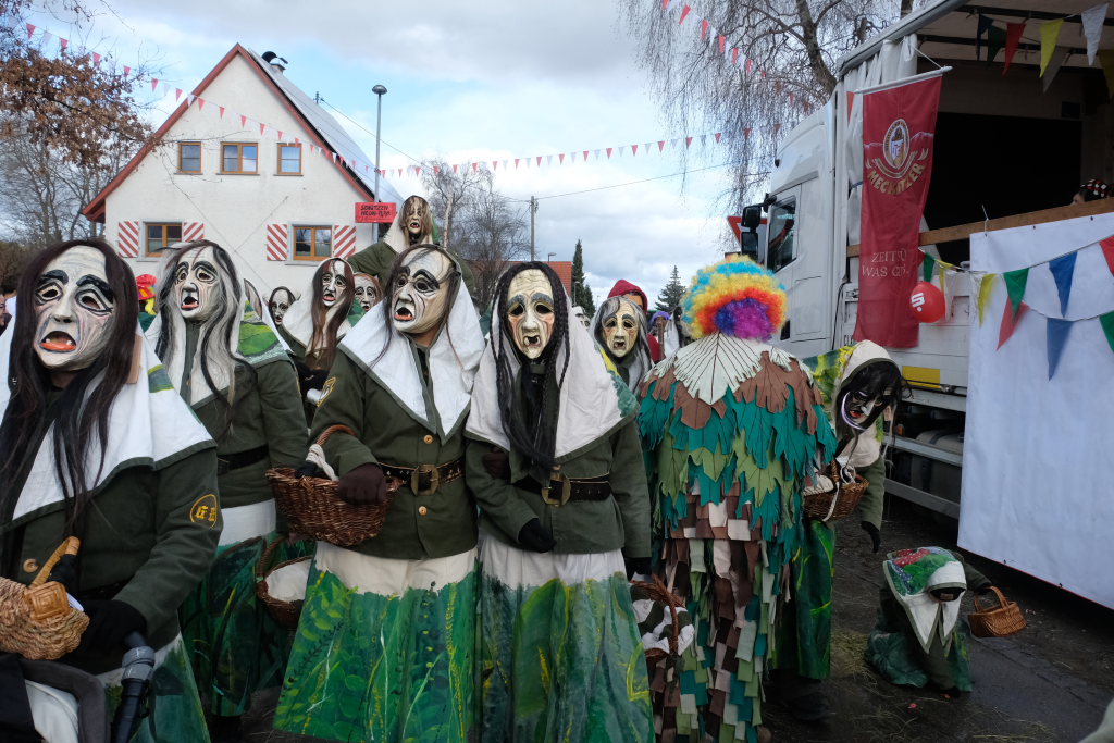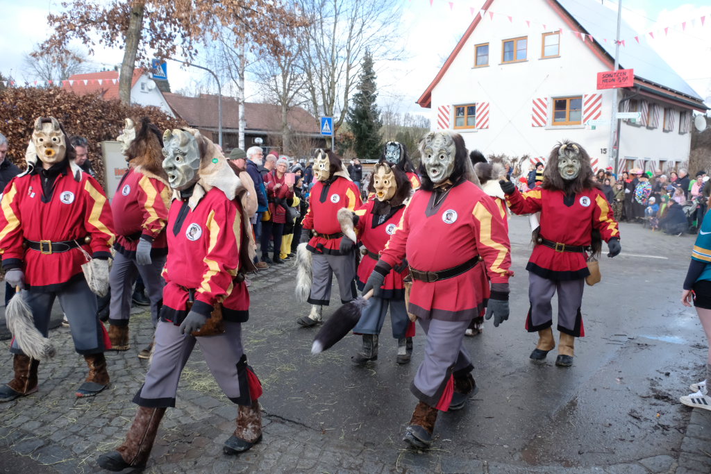 Mit den Unterschwarzachern Schwaaz´r Butz folgte eine weitere Zunft, bei denen die Chadalohs als Pate für die ANR-Aufnahme fungiert hatten. Alljährlich nicht fehlen durfte da natürlich nicht die Garde der LJG Unterschwarzach. Mit den reizenden Damen konnte auch Alex Wild wieder seine tänzerischen Fähigkeiten sowie seine Gelenkigkeit unter Beweis stellen. Ganz Bergatreute dürfte wieder einmal wie leergefegt gewesen sein, denn ein orange-grünes Jordanhexen-Meer flutete die Straßen des kleinen Ortes am nördlichen Riedrand. Auch die Baienfurter Henkerhaus Zunft und die Dora-Weibla aus Dornstadt sind Patenzünfte der Chadalohs. Natürlich nicht fehlen durfte die Haidgauer „Konkurrenz“, die Haidgauer (… )Sippe, die in der Vergangenheit im Zuge des Gender-Wahns einen Teil ihres Namens eingebüßt hat und der Vertreter beim Zunftmeisterempfang mit dem Singen des Volksliedes „Lustig ist das (Beep)-Leben“ ein kleines Statement abgaben.