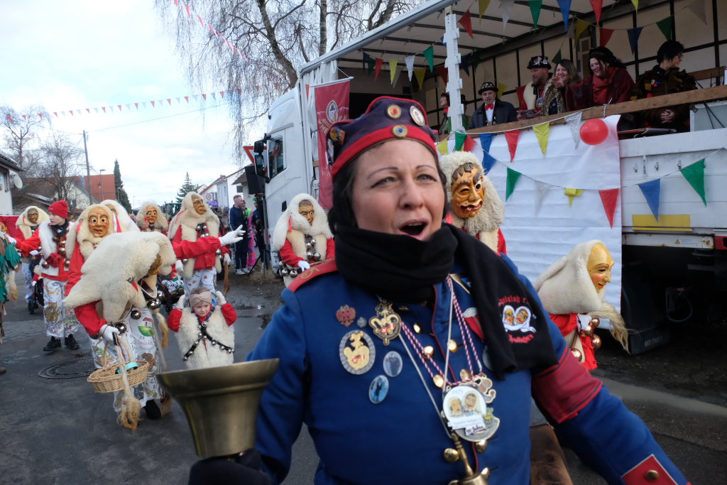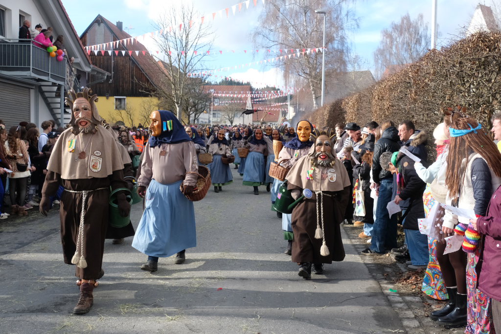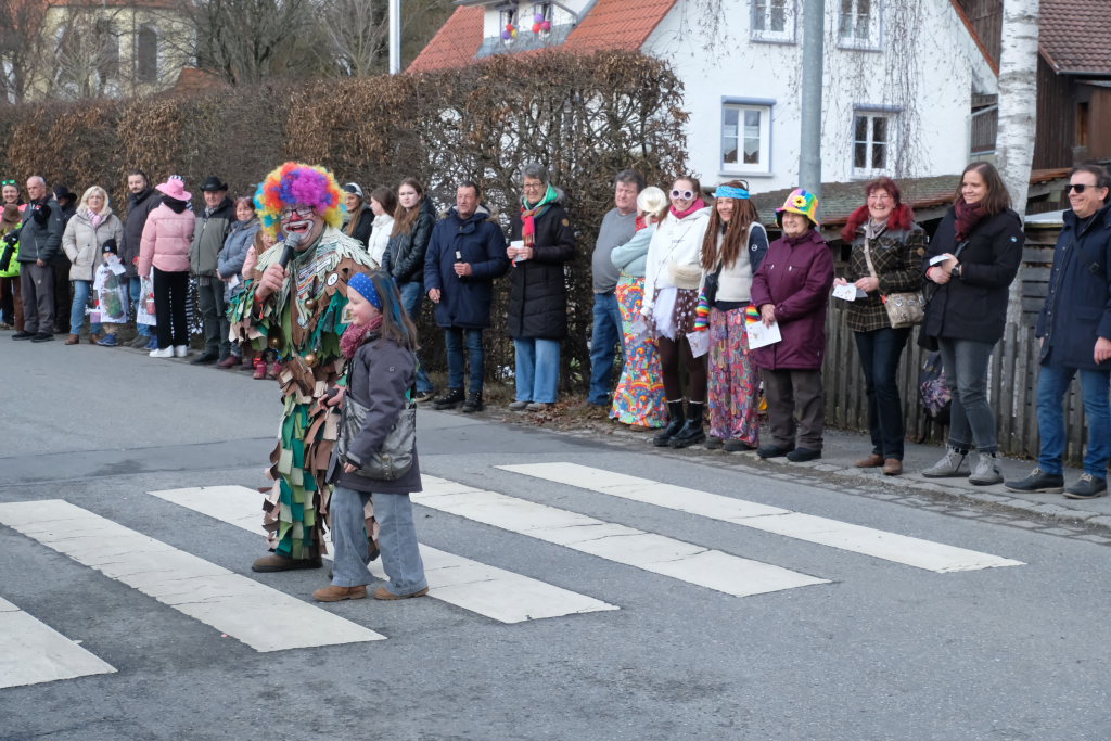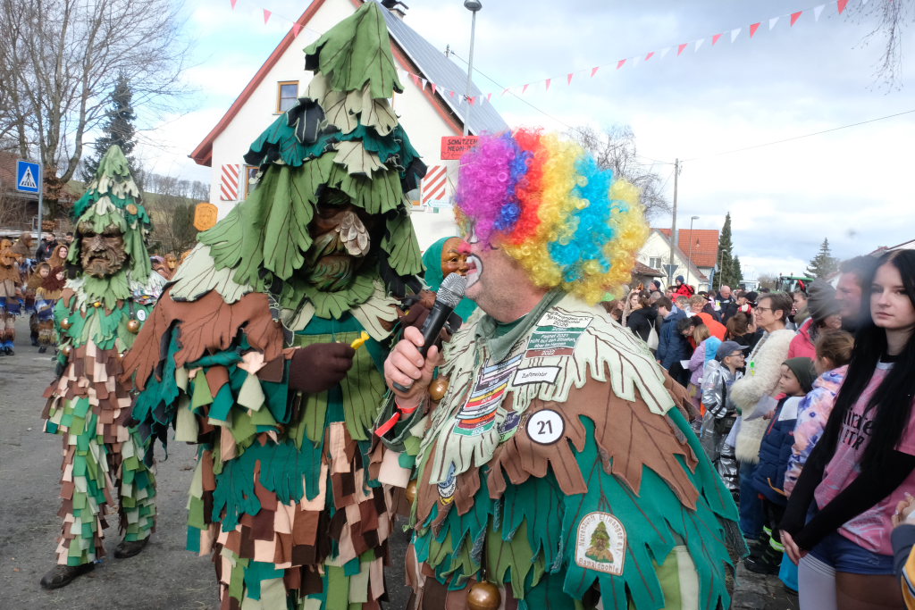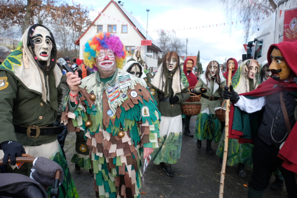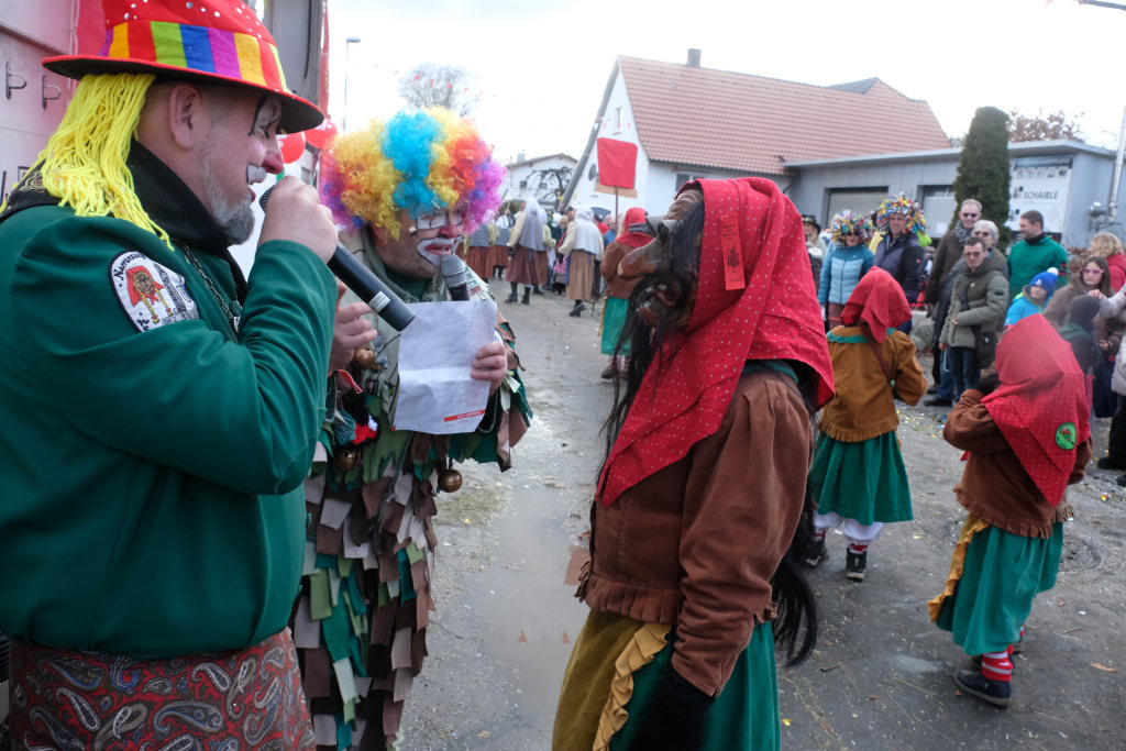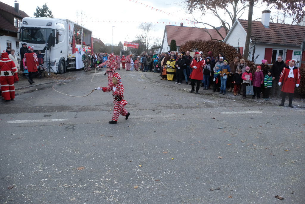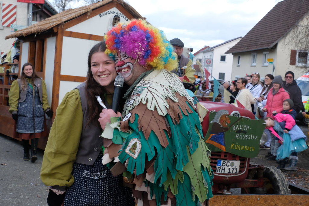 Haidgau – Beim diesjährigen Narrensprung haben die Verantwortlichen der Haidgauer Zunft bewusst die Bremse gezogen, nachdem beim Jubiläum im Vorjahr alle ANR-Zünfte eingeladen werden mussten. Mit 48 Umzugspositionen war er deutlich kürzer als im Vorjahr. Gleichgeblieben aber ist der hohe Unterhaltungswert, den Günther „Turbo“ Angele und Alex Wild – in diesem Jahr als Clowns getarnt – als Moderatoren und Ansagern den zahlreichen Besuchern und den Ehrengästen auf der zur Ehrentribüne umgestalteten LKW-Pritsche boten.